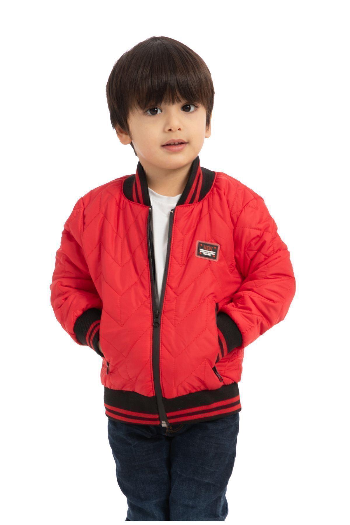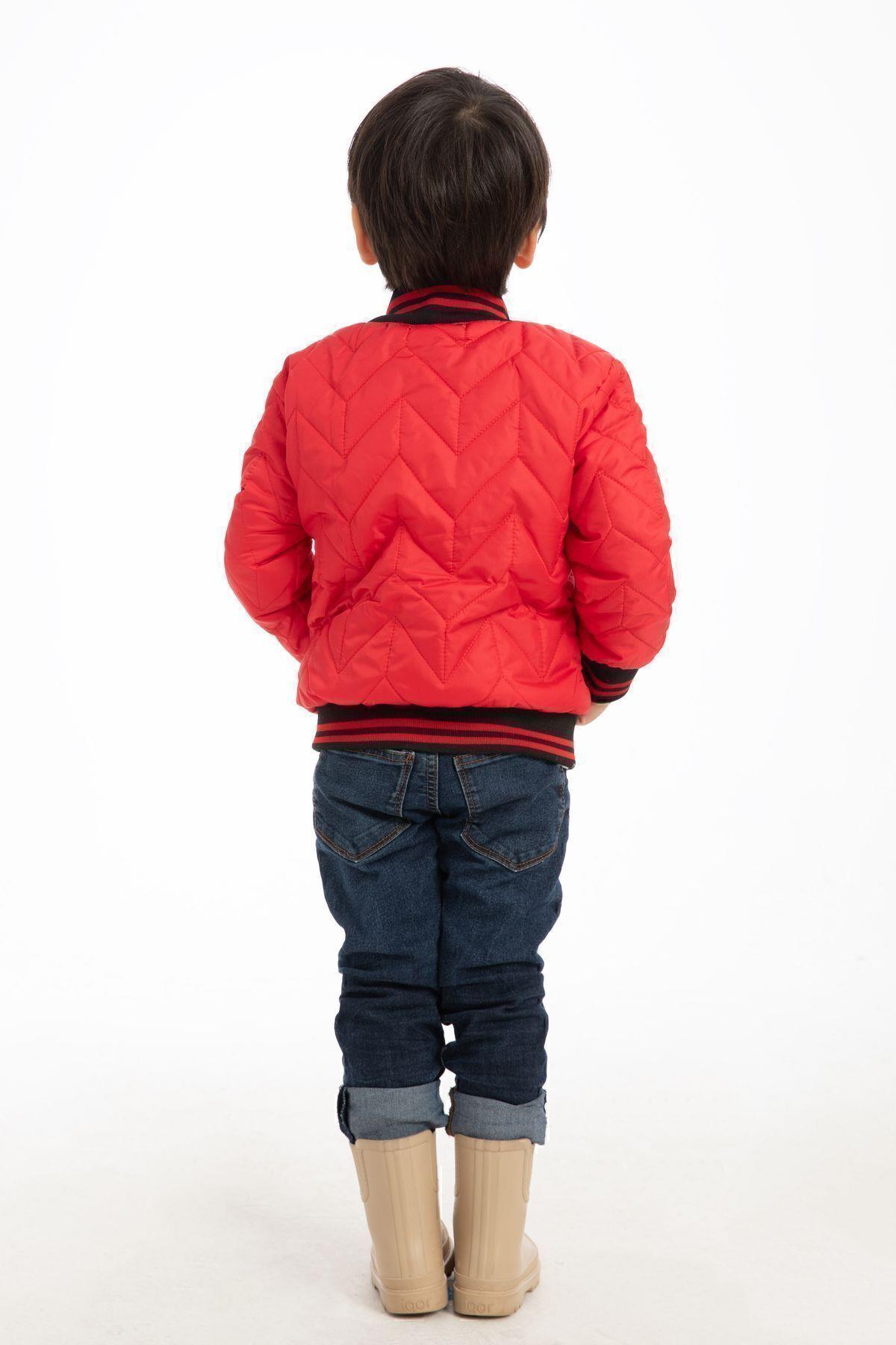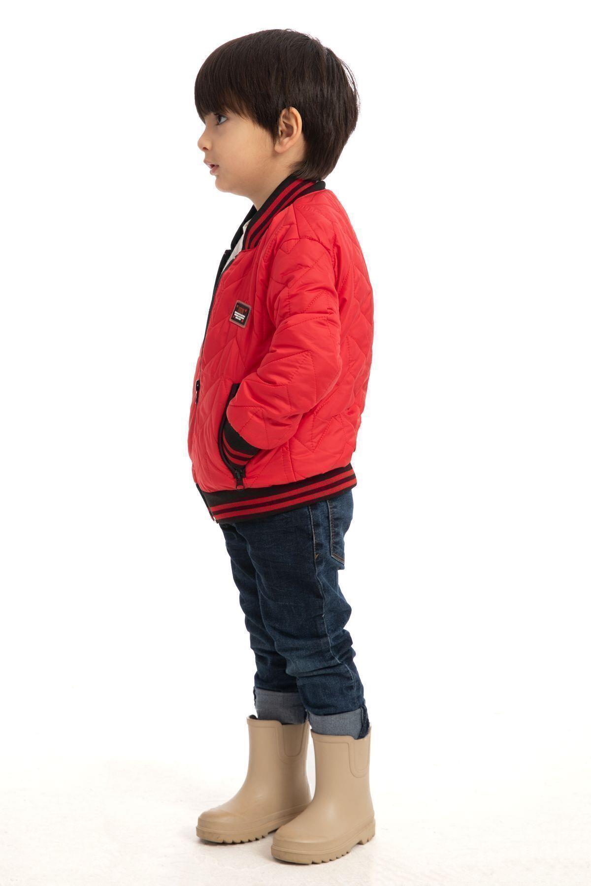 Erkek Çocuk Kolej Yaka Astarlı Su Ve Rüzgar Geçirmez Fermuarlı Mont Ceket (KLJ- Kırmızı)