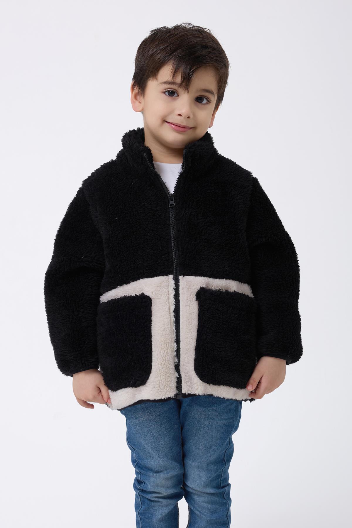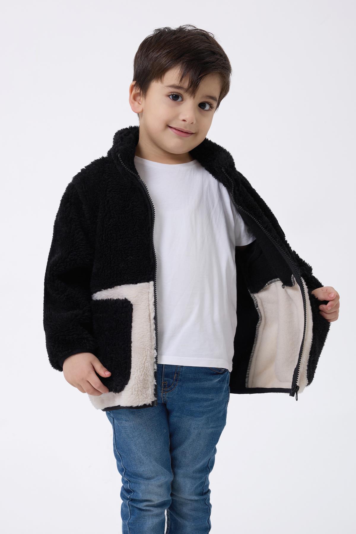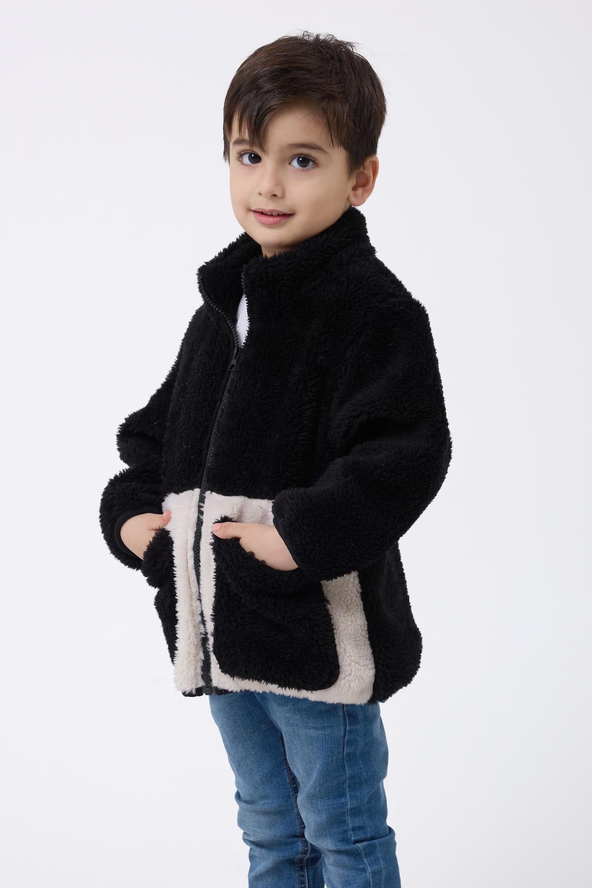 Erkek Çocuk Peluş Fermuarlı Welsoft Kışlık Mont (FMÇ-PELUŞ Siyah)
