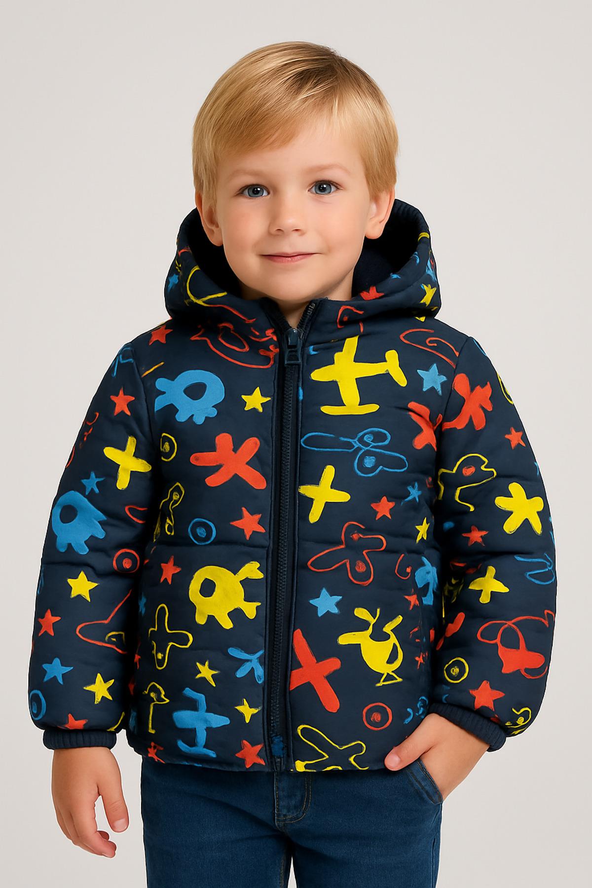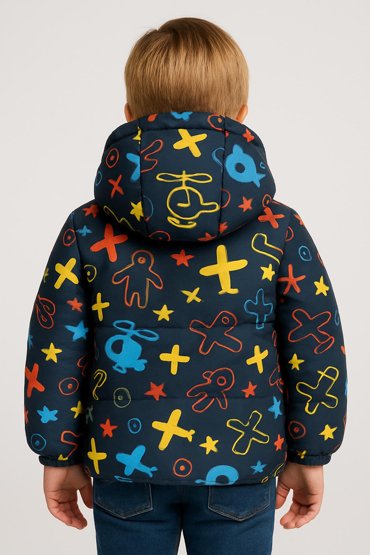 Erkek Çocuk Polarlı Kapüşonlu Helikopter Desenli Kışlık Şişme Mont & Kaban & Parka (DCM-111 Helikopter)
