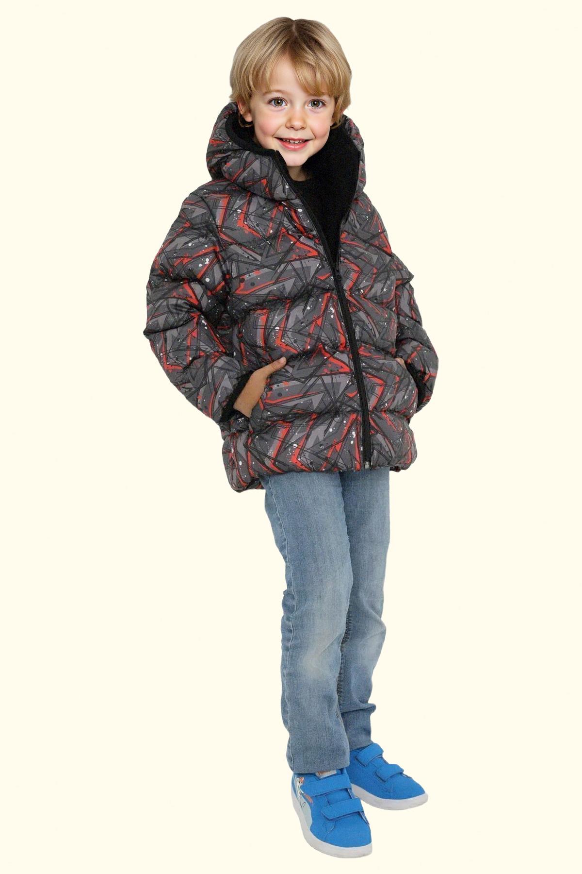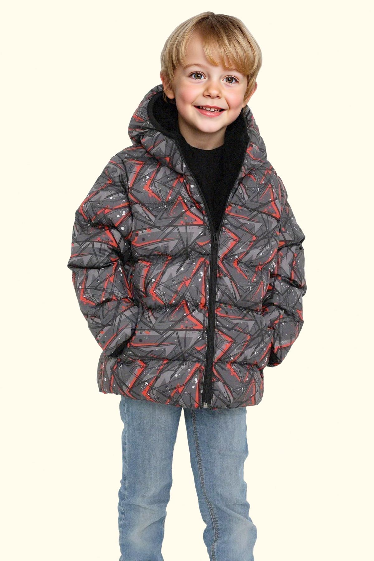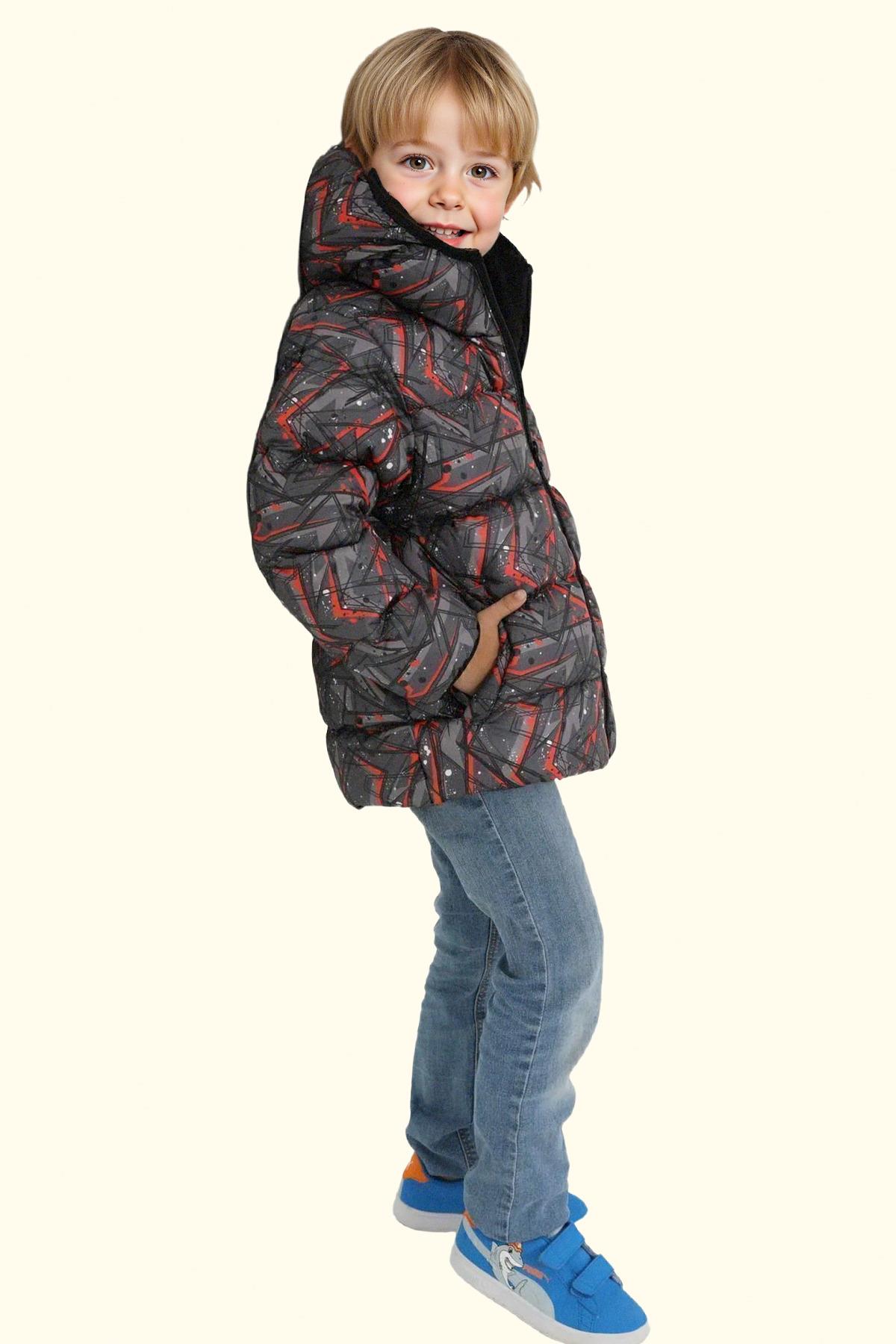 Erkek Çocuk Geometrik Desen Polar Su Ve Rüzgar Geçirmez Kapüşonlu Şişme Kışlık Mont, soğuk hava koşullarında bile maksimum konfor ve koruma sağlamak üzere tasarlanmış modern bir dış giyim parçasıdır. Yüksek kaliteli dolgu malzemesi ve rüzgar geçirmez yüzeyi sayesinde sıcak tutar, hafif yapısı ise gün boyu rahatlık sunar. Şık kesimi ve fonksiyonel cep tasarımları ile hem şehir hayatında hem de doğa aktivitelerinde ideal bir tercihtir.