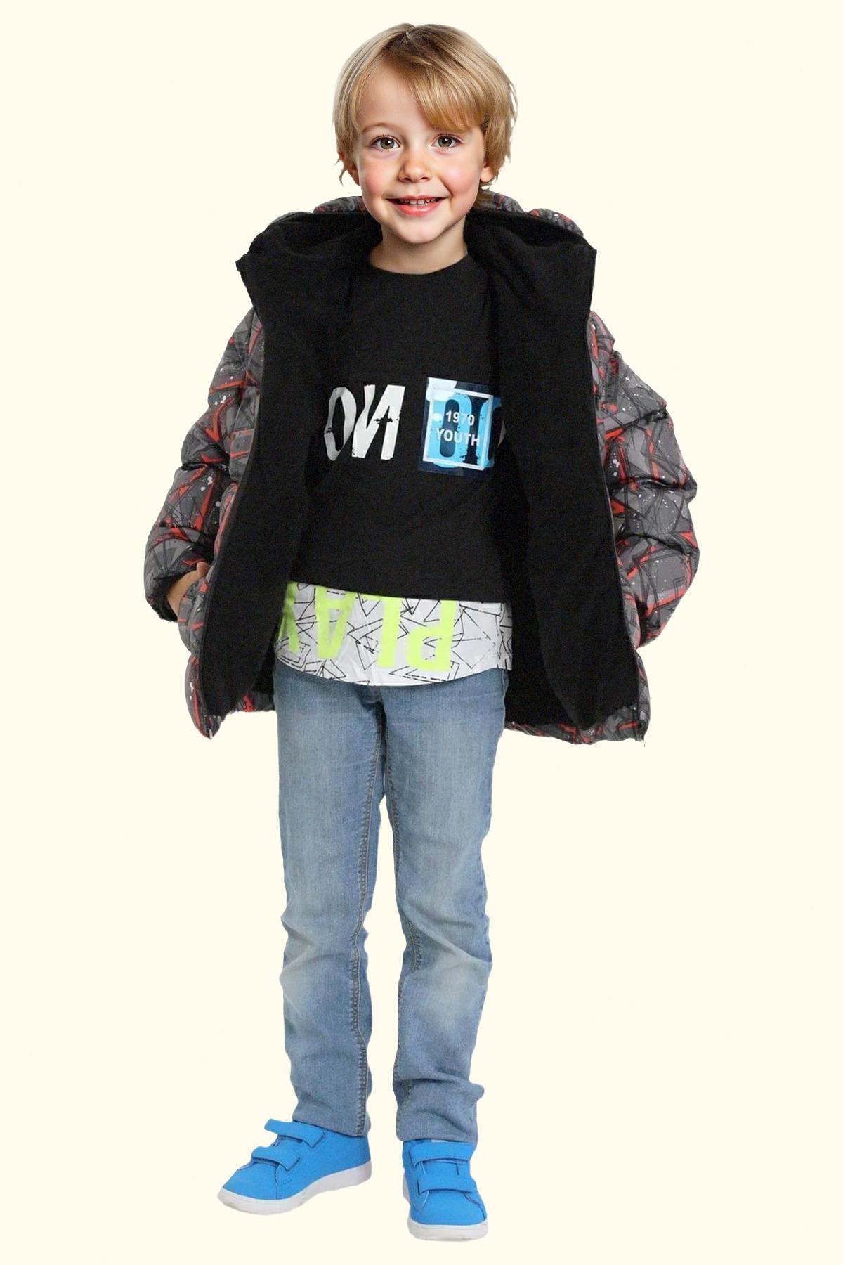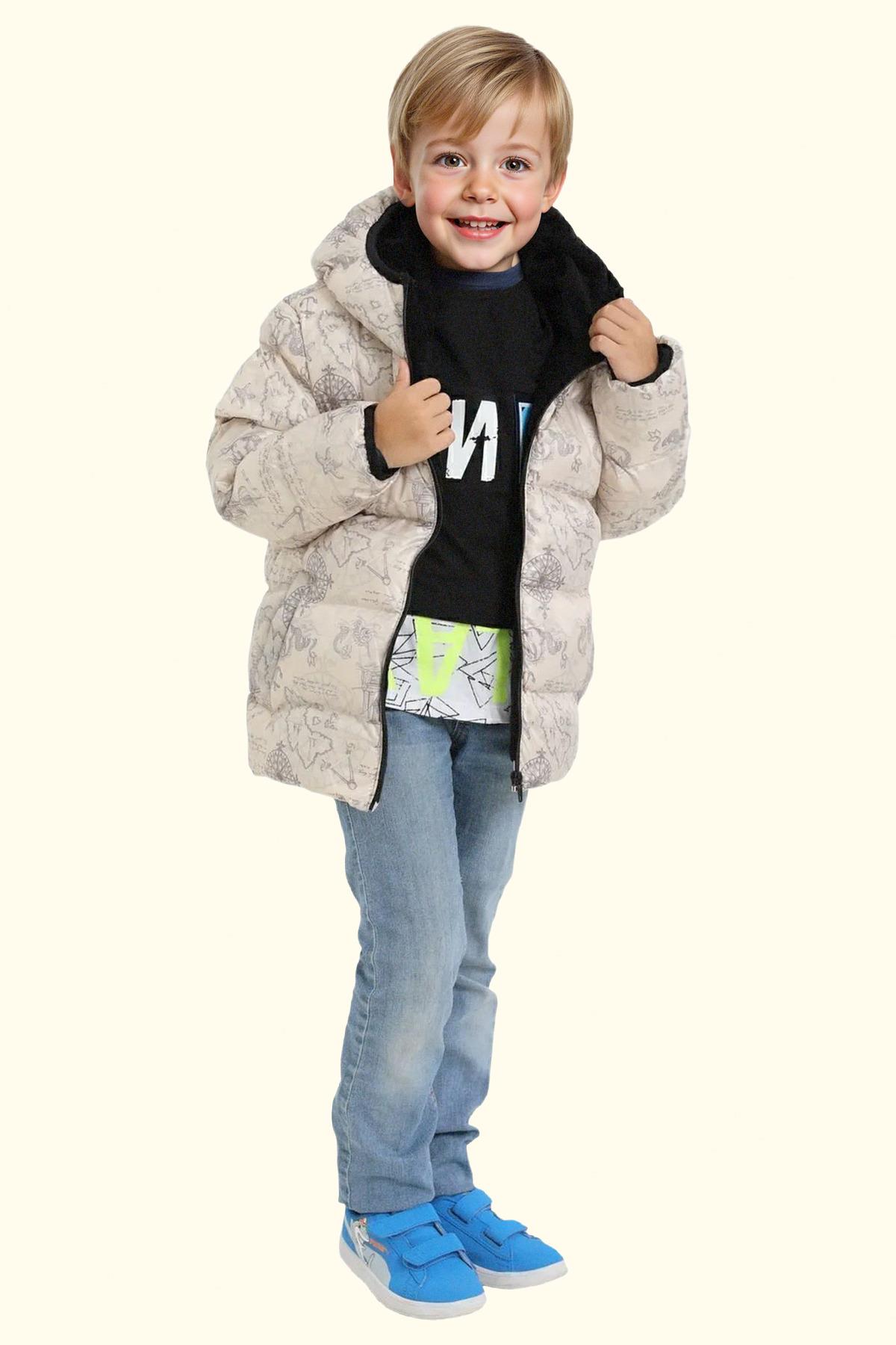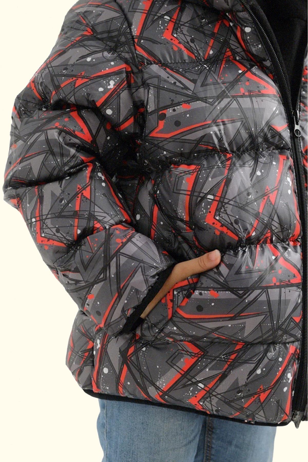 Erkek Çocuk Geometrik Desen Polar Su Ve Rüzgar Geçirmez Kapüşonlu Şişme Kışlık Mont, soğuk hava koşullarında bile maksimum konfor ve koruma sağlamak üzere tasarlanmış modern bir dış giyim parçasıdır. Yüksek kaliteli dolgu malzemesi ve rüzgar geçirmez yüzeyi sayesinde sıcak tutar, hafif yapısı ise gün boyu rahatlık sunar. Şık kesimi ve fonksiyonel cep tasarımları ile hem şehir hayatında hem de doğa aktivitelerinde ideal bir tercihtir.