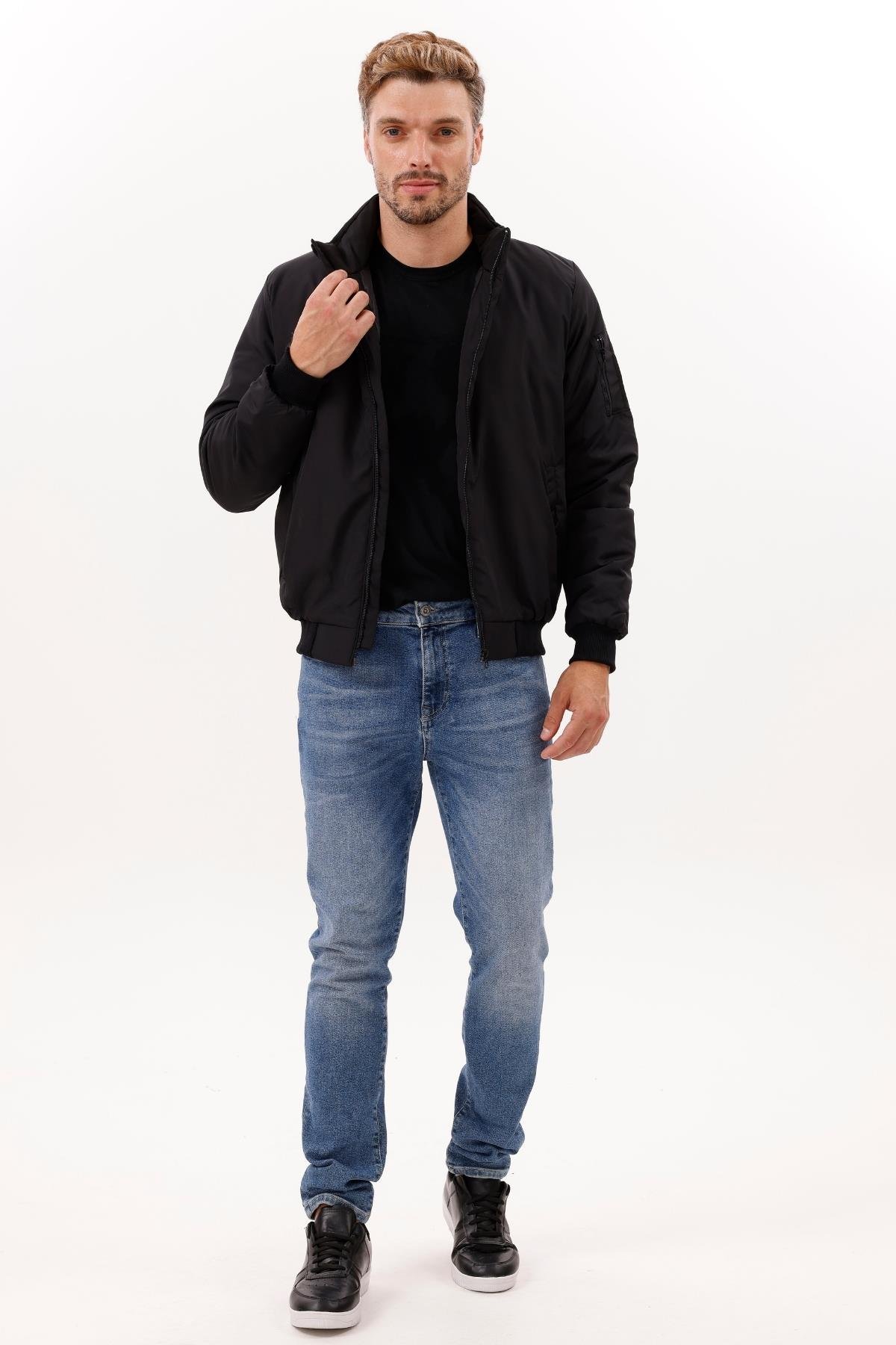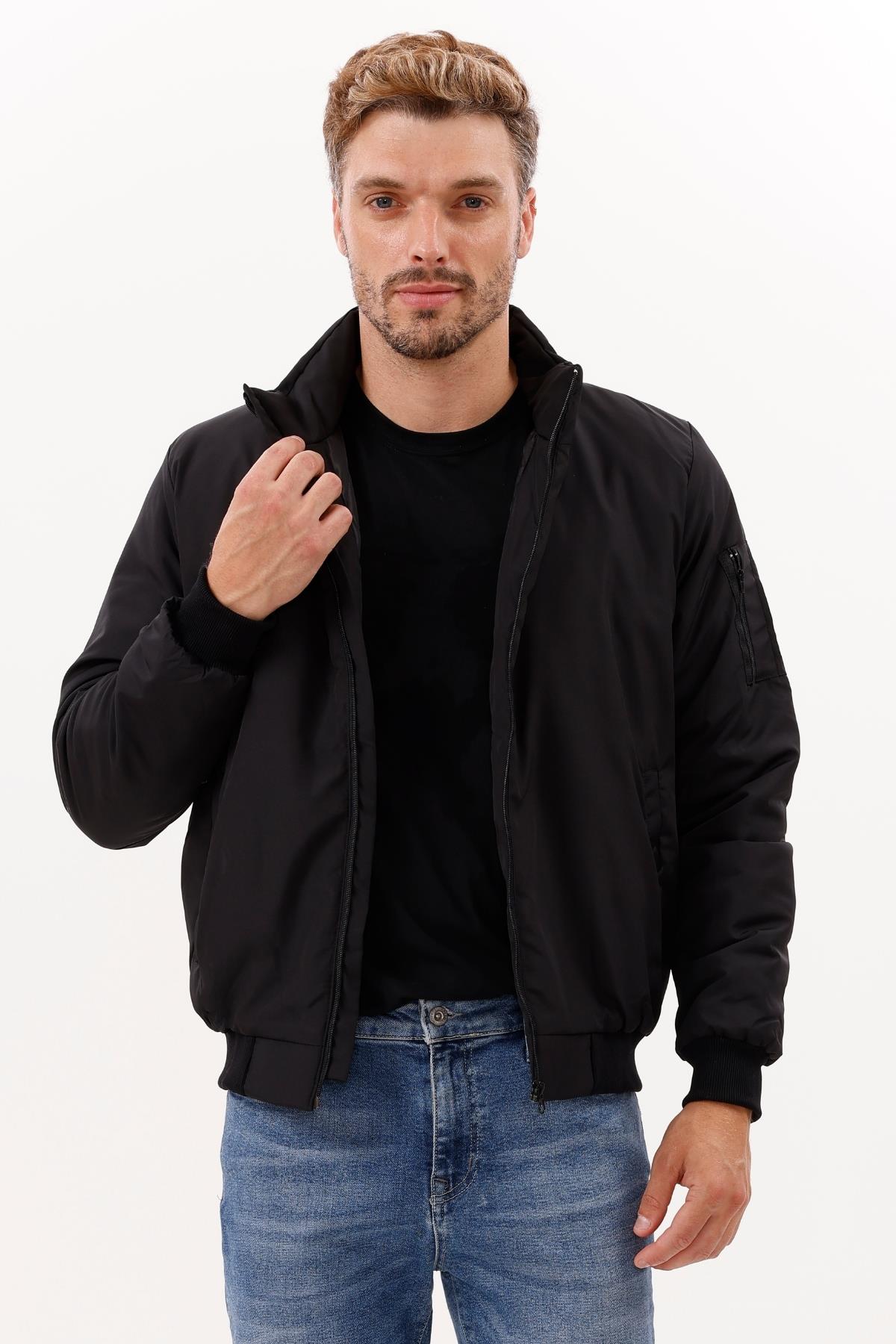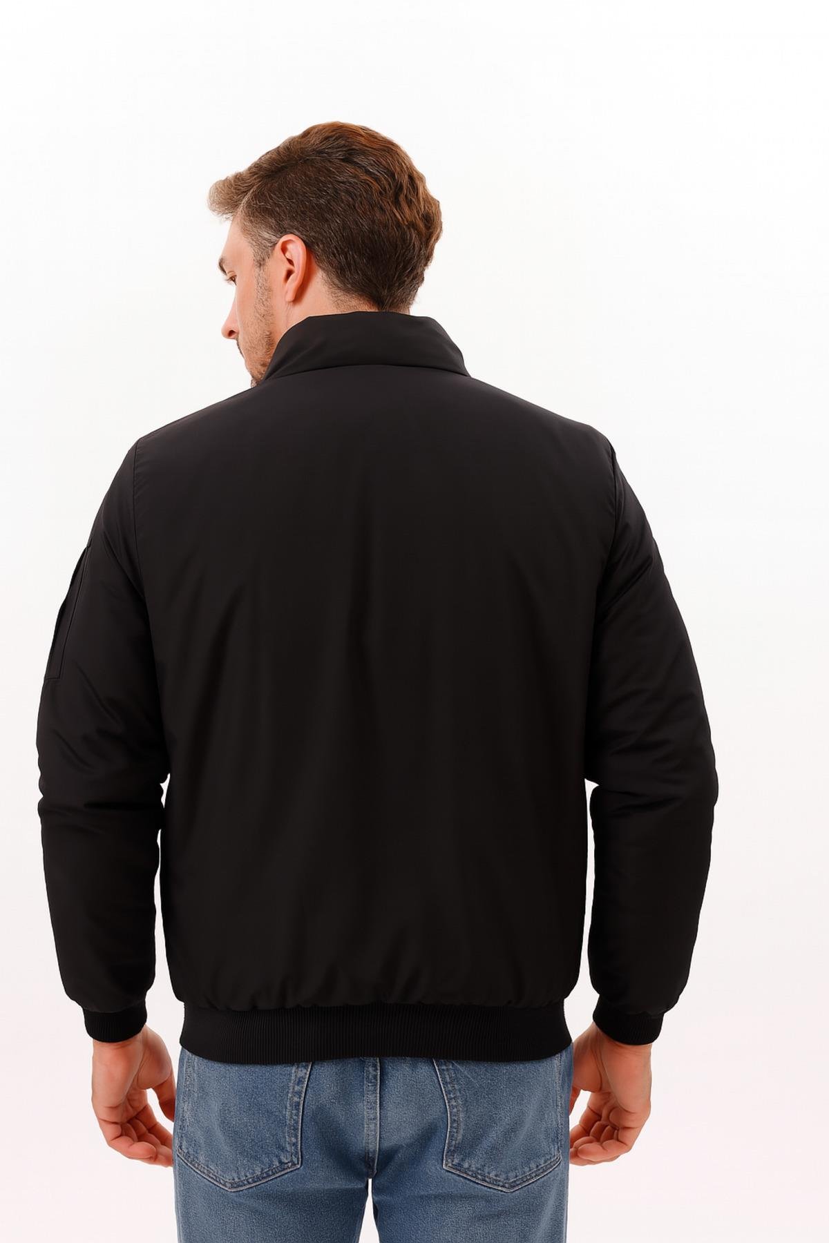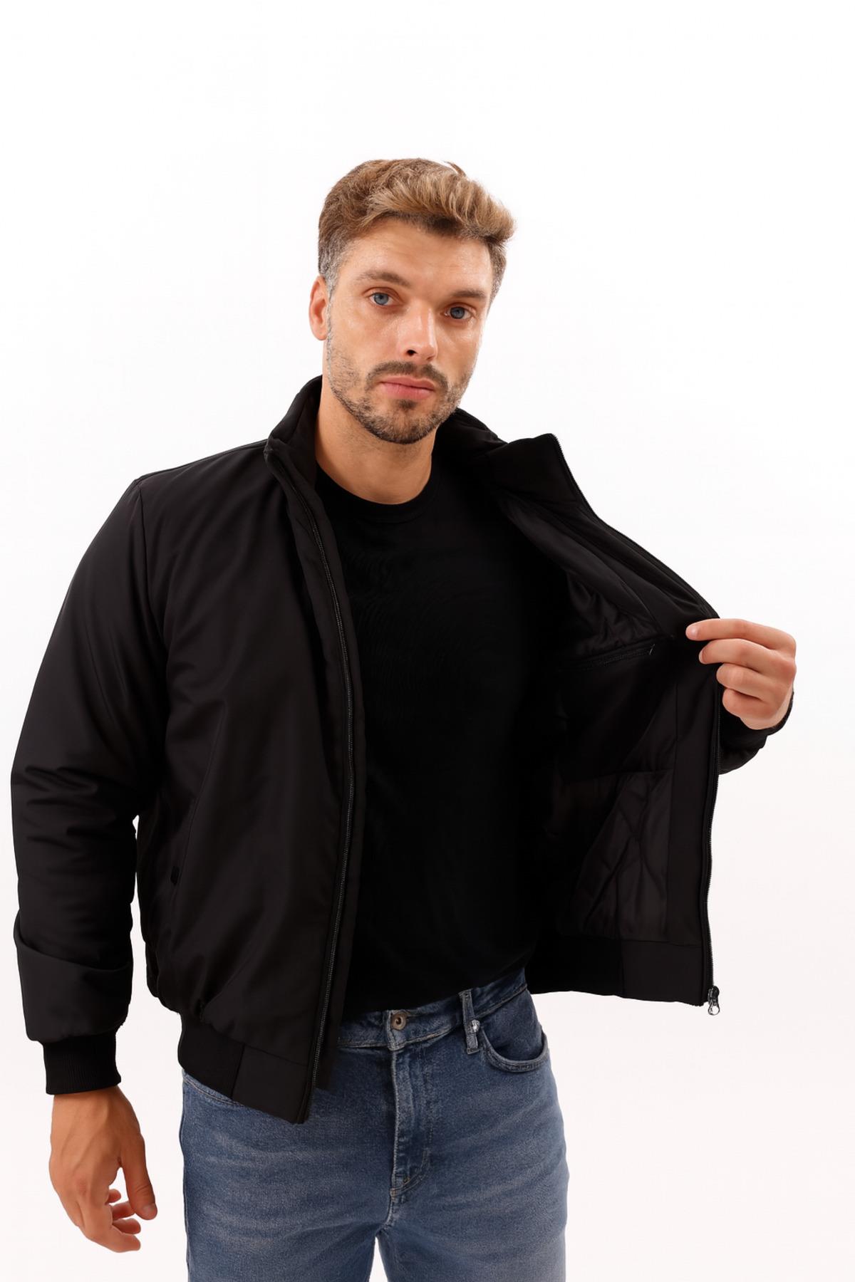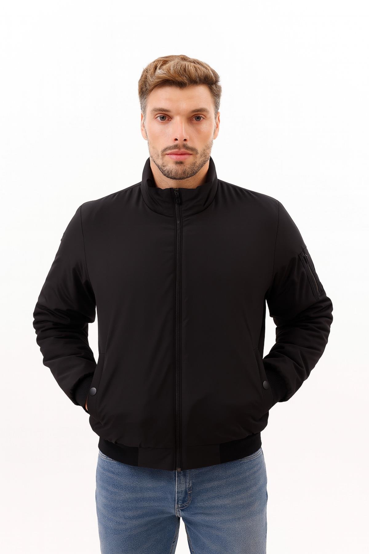 Erkek Astarlı Dik Yaka Mevsimlik Su Ve Rüzgar Geçirmez Mont (FM-505 Siyah)