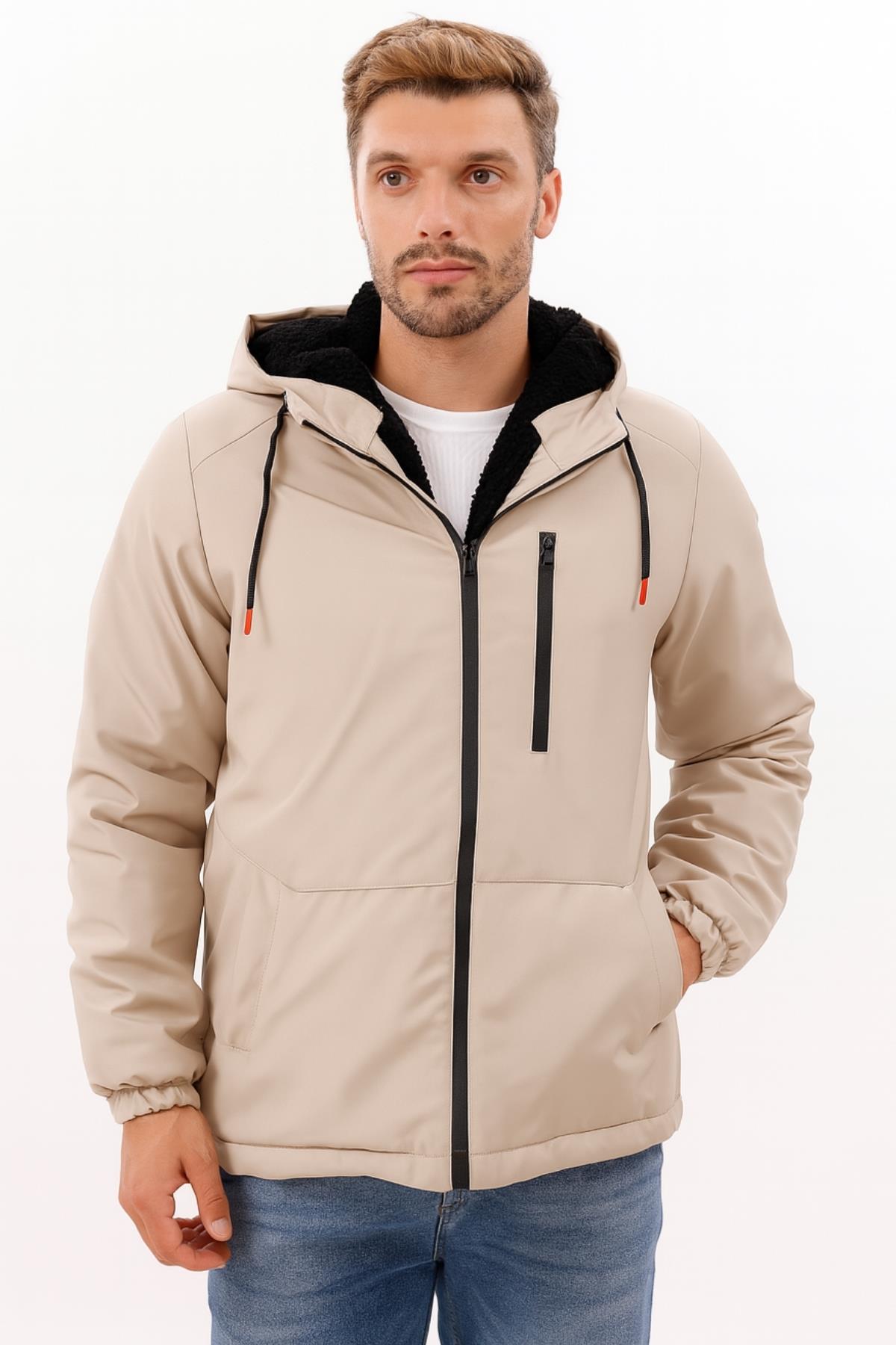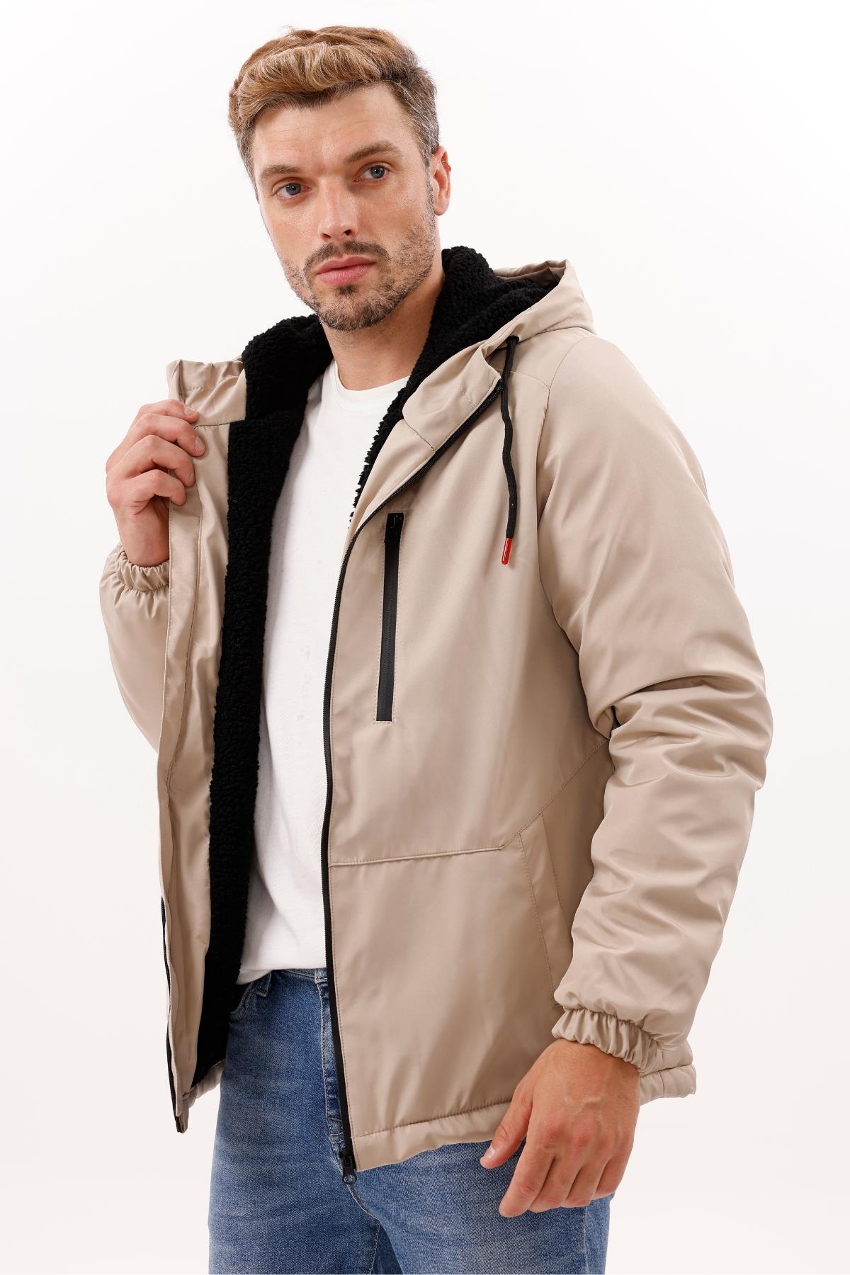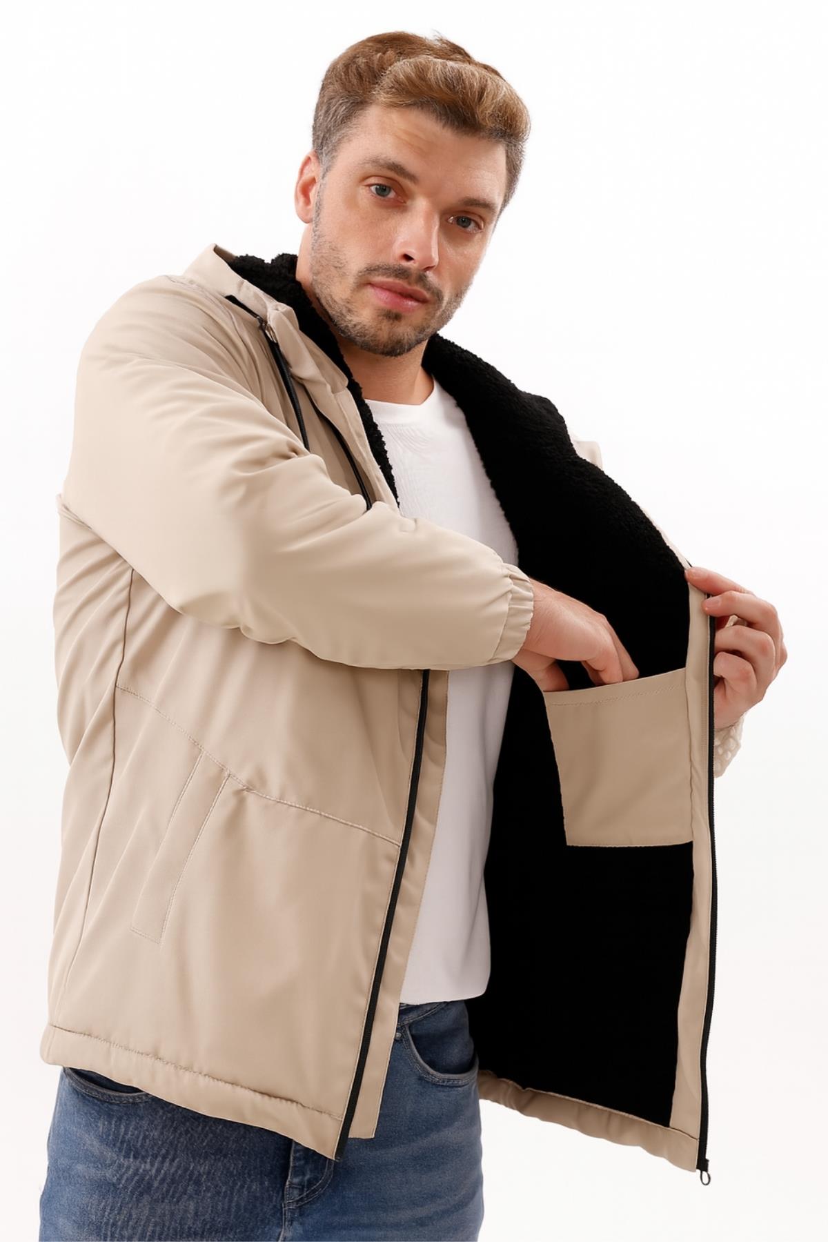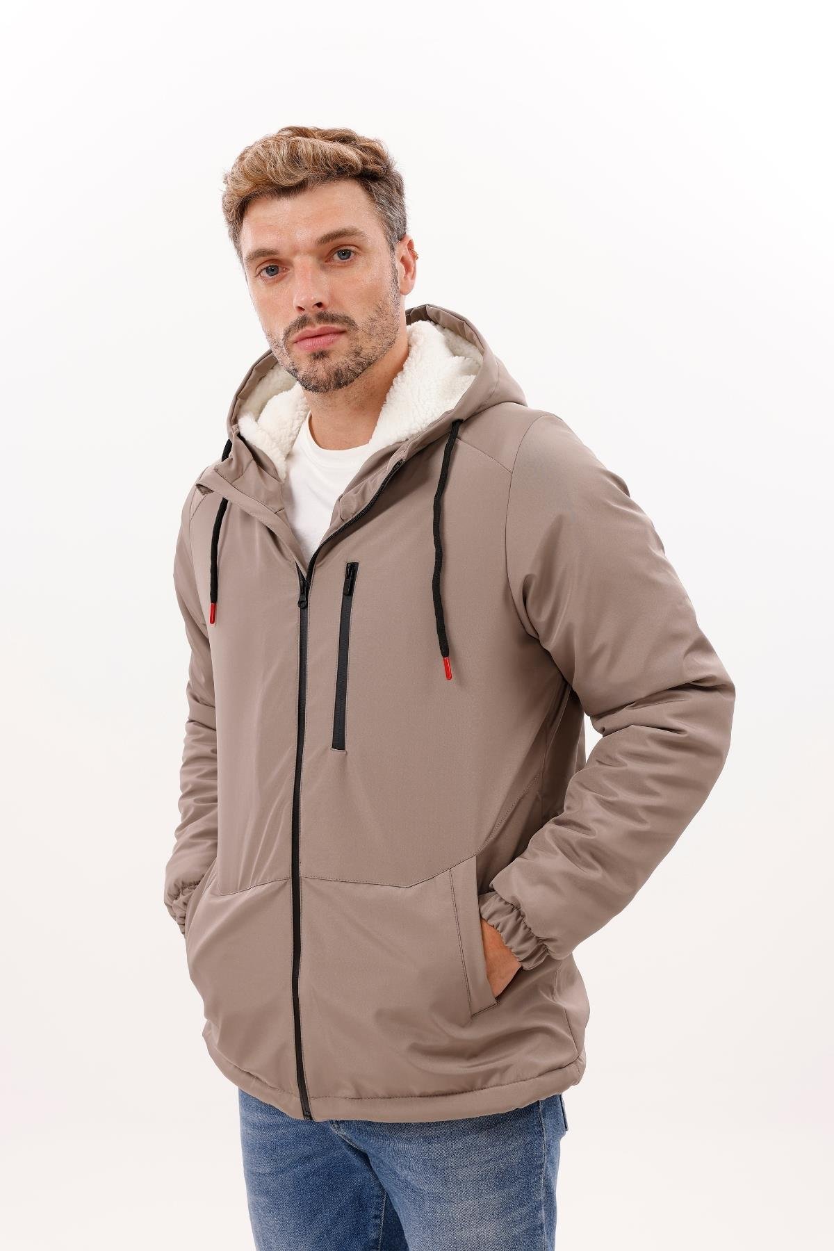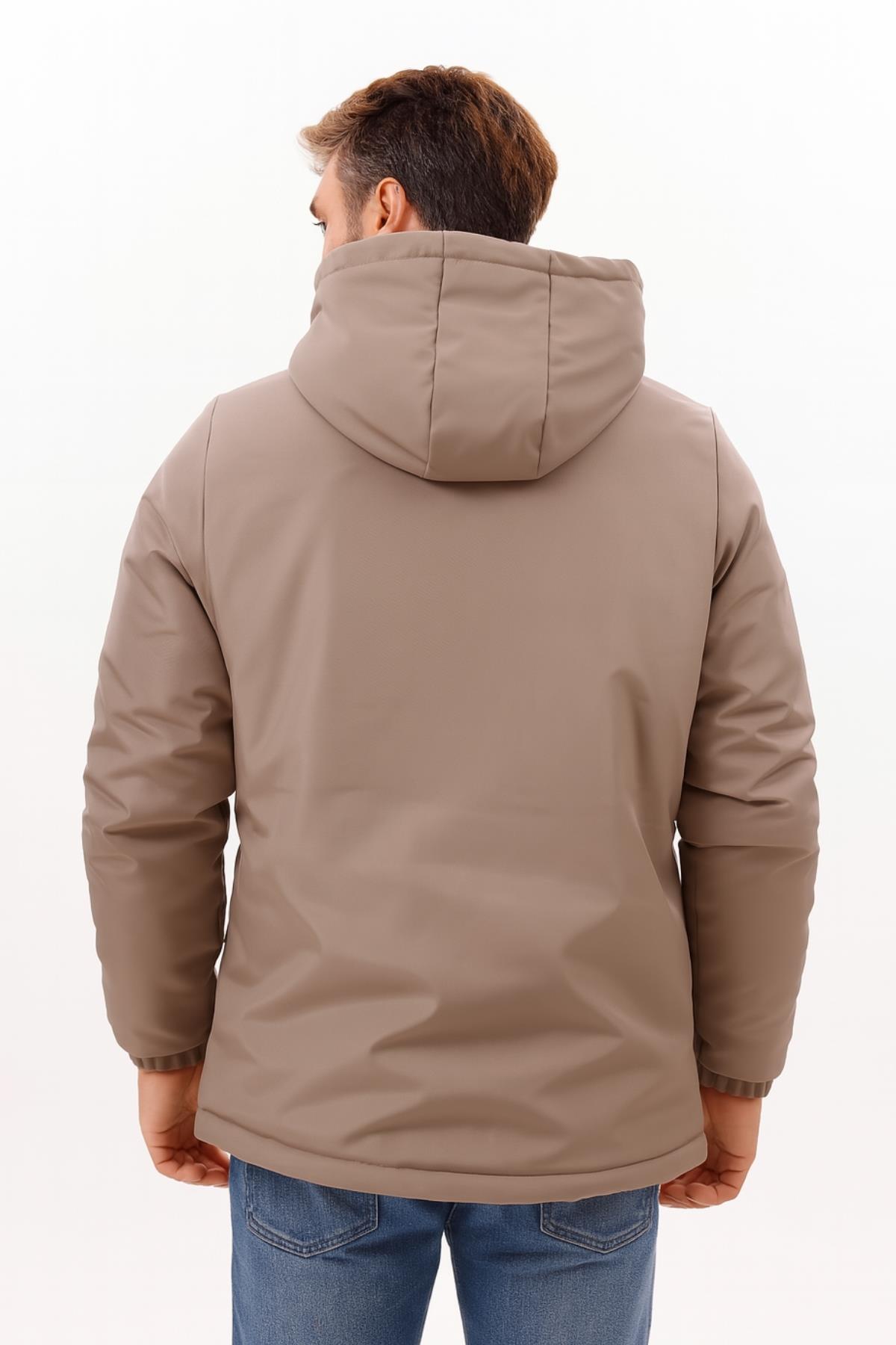 Erkek Kürklü Su Ve Rüzgar Geçirmez Kapüşonlu Kışlık Mont & Kaban & Parka (FMM-100 Vizon)
