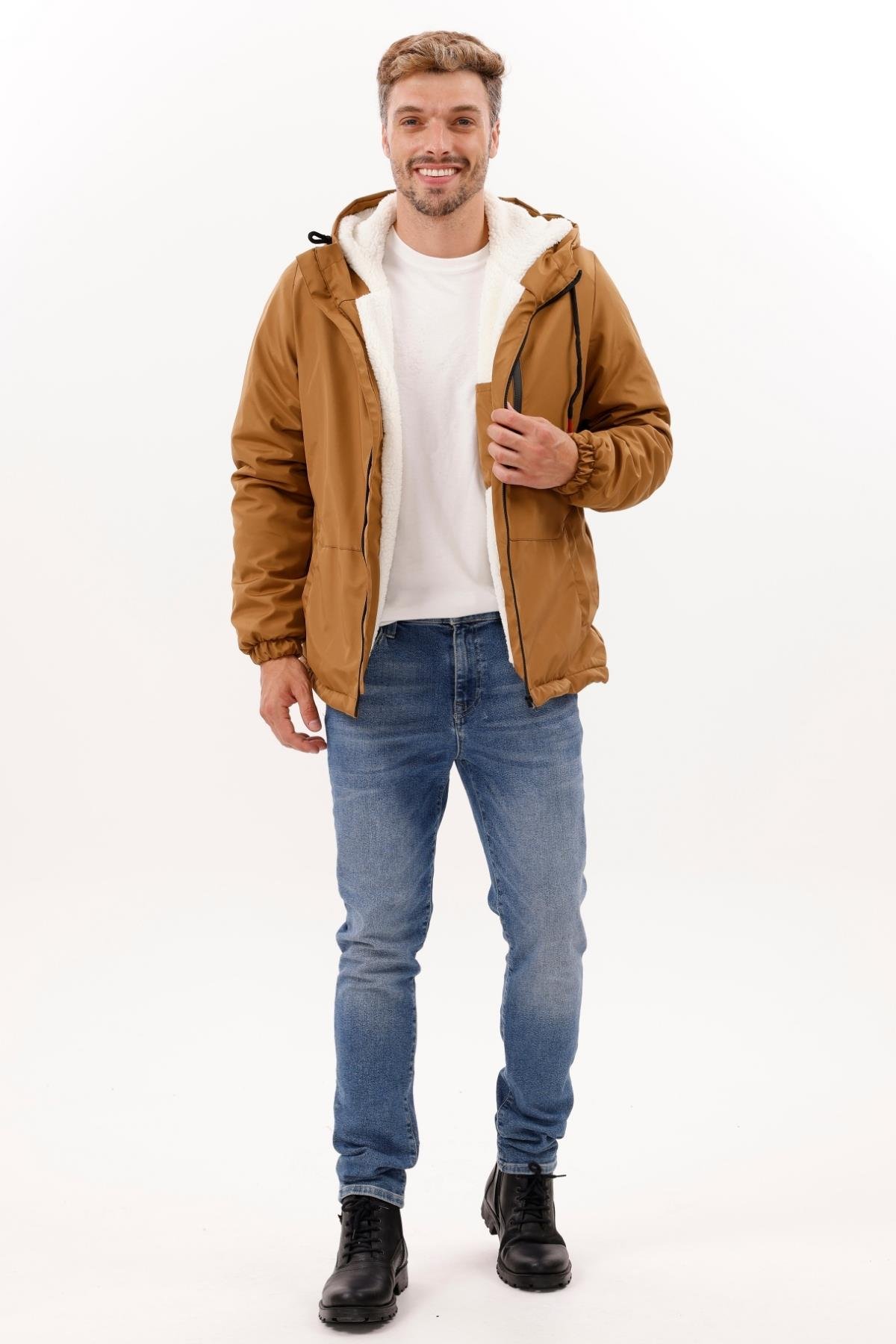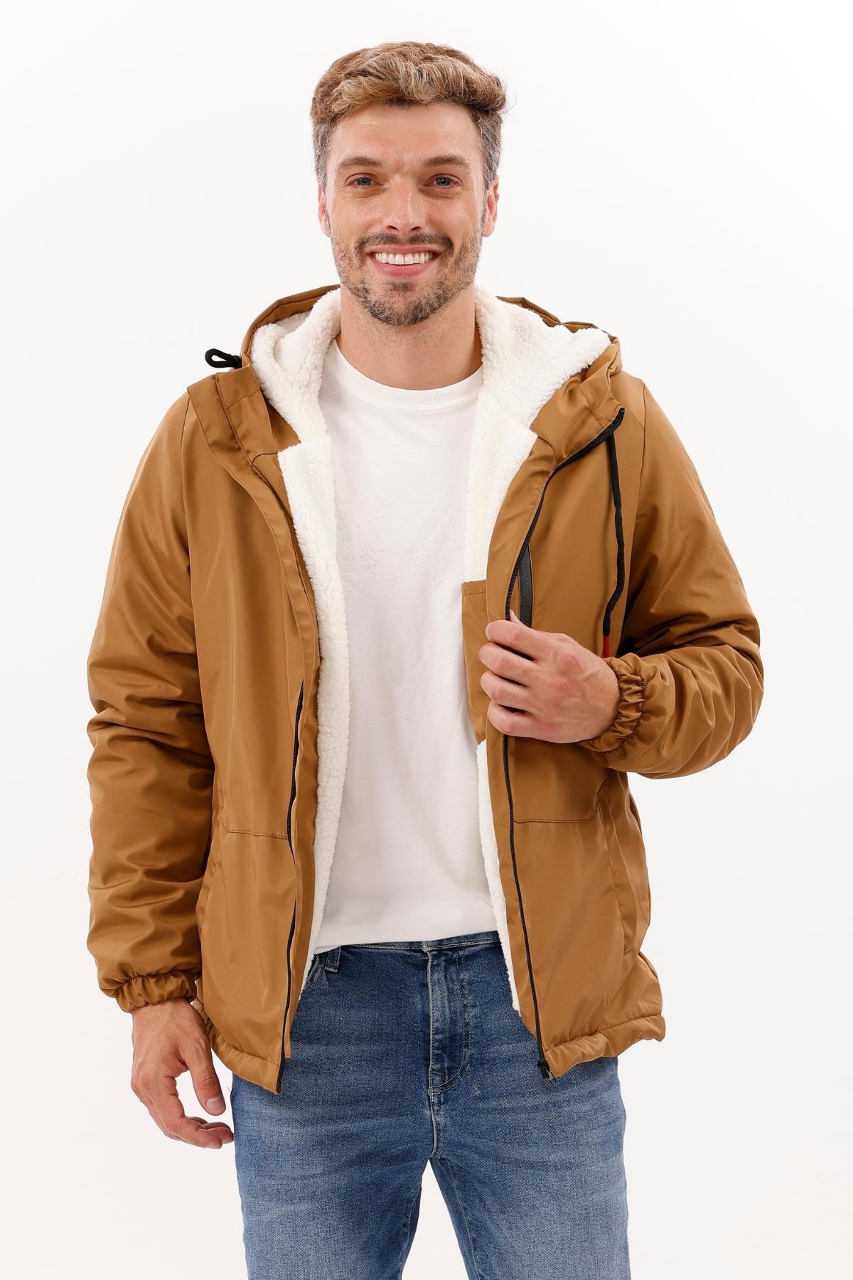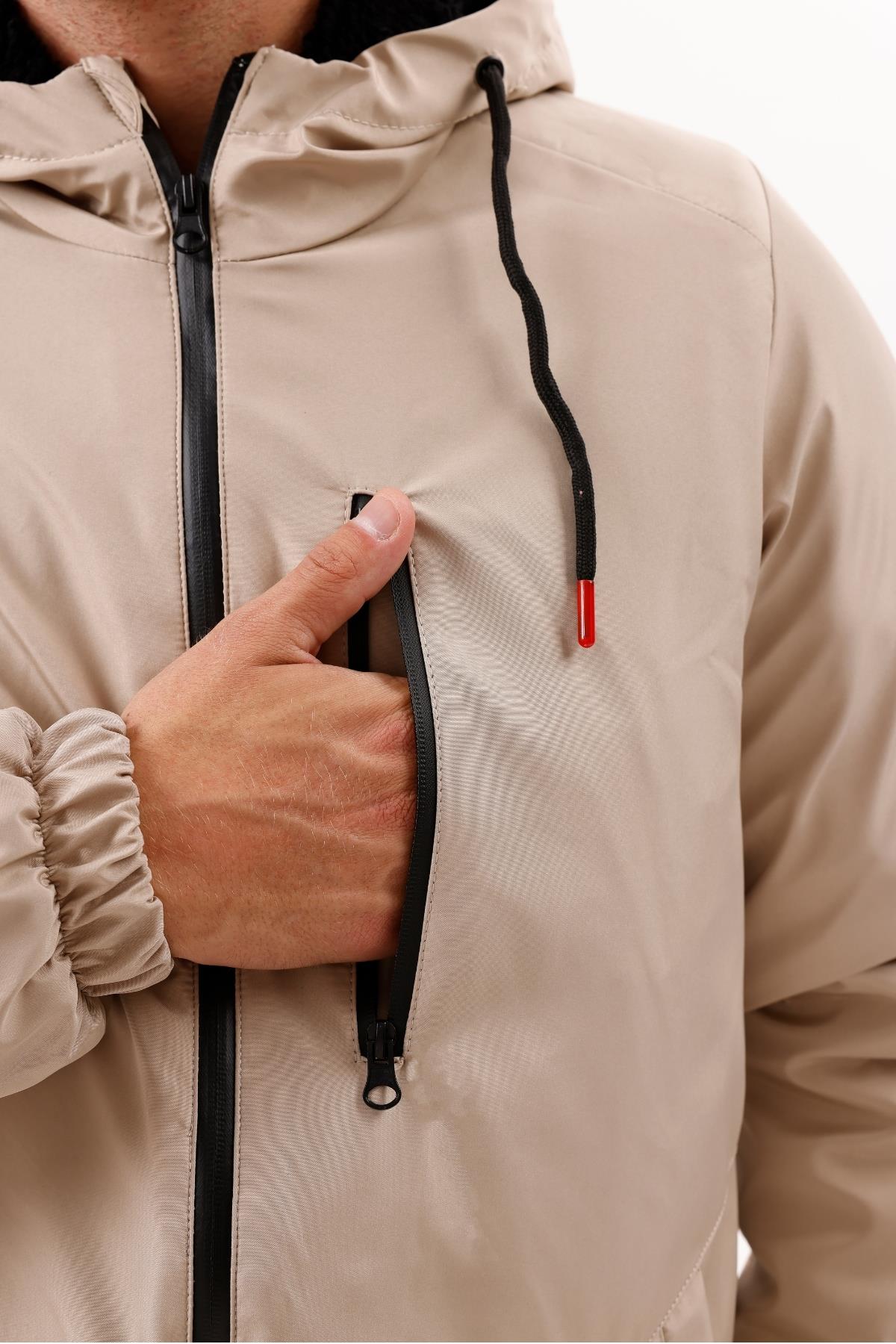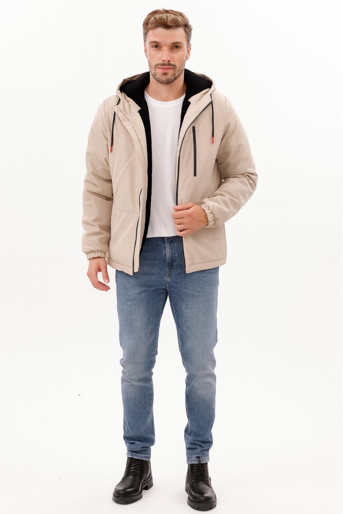 Erkek Kürklü Su Ve Rüzgar Geçirmez Kapüşonlu Kışlık Mont & Kaban & Parka (FMM-100 Vizon)