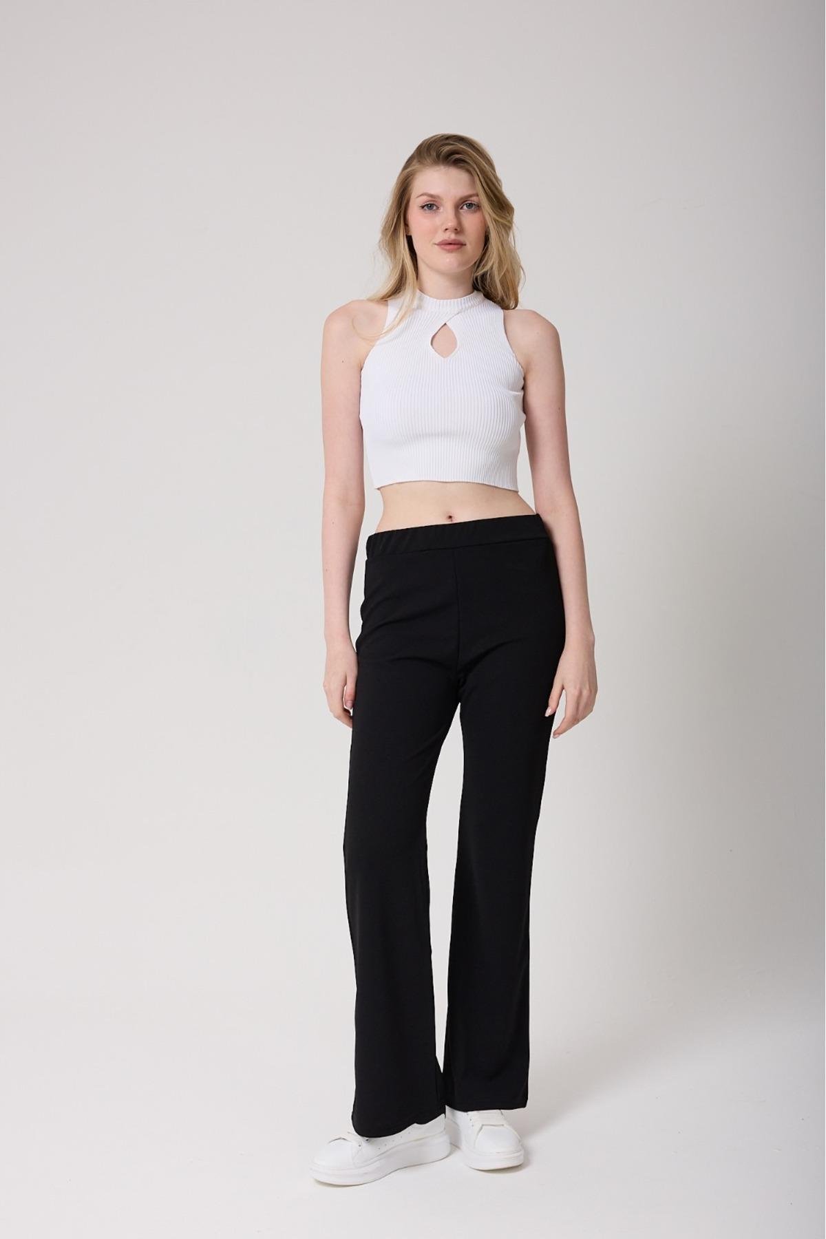 Kadın Likralı Beli Lastikli Ispanyol Paça Pantolon (PNT-BELİLASTİK-SİYAH)