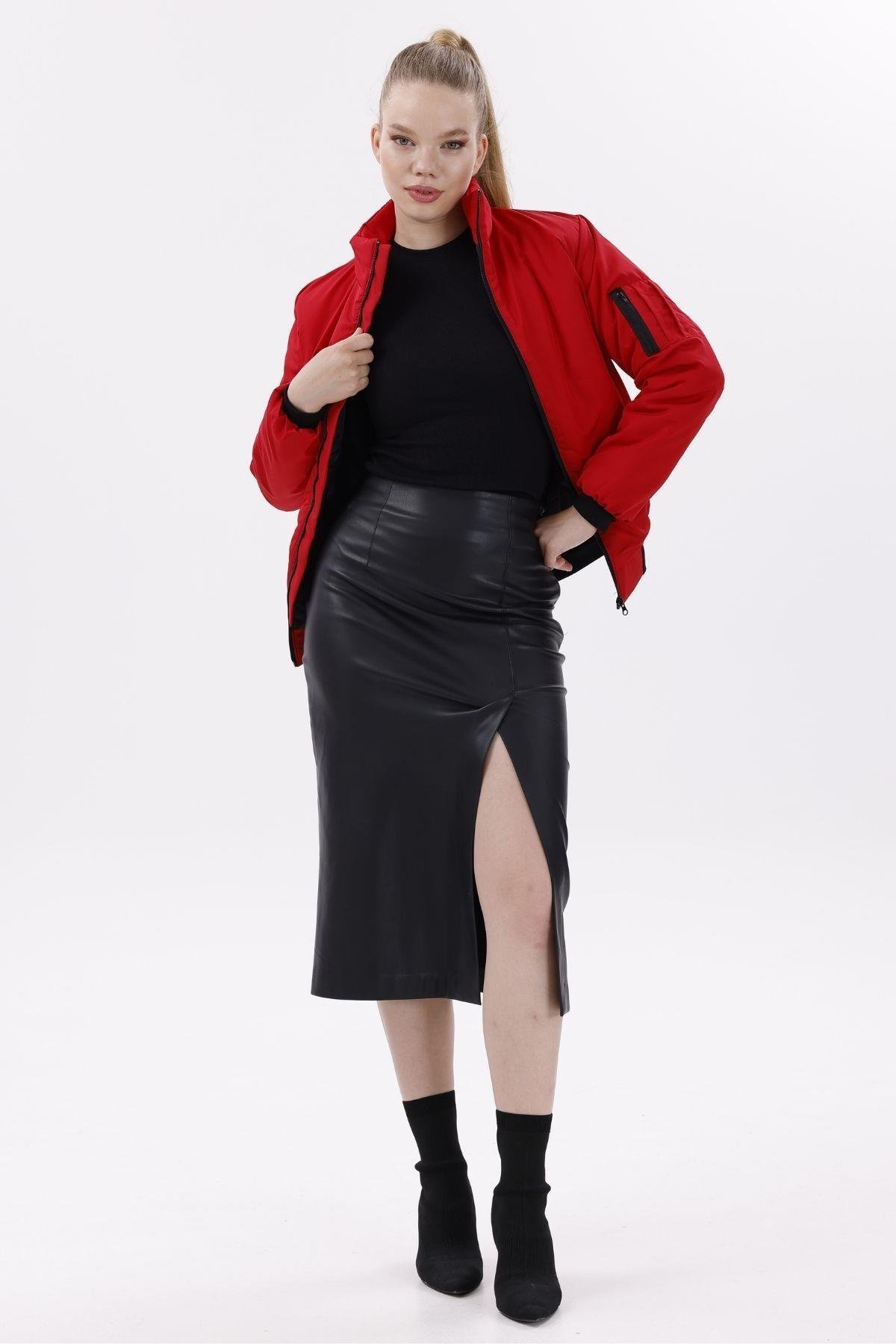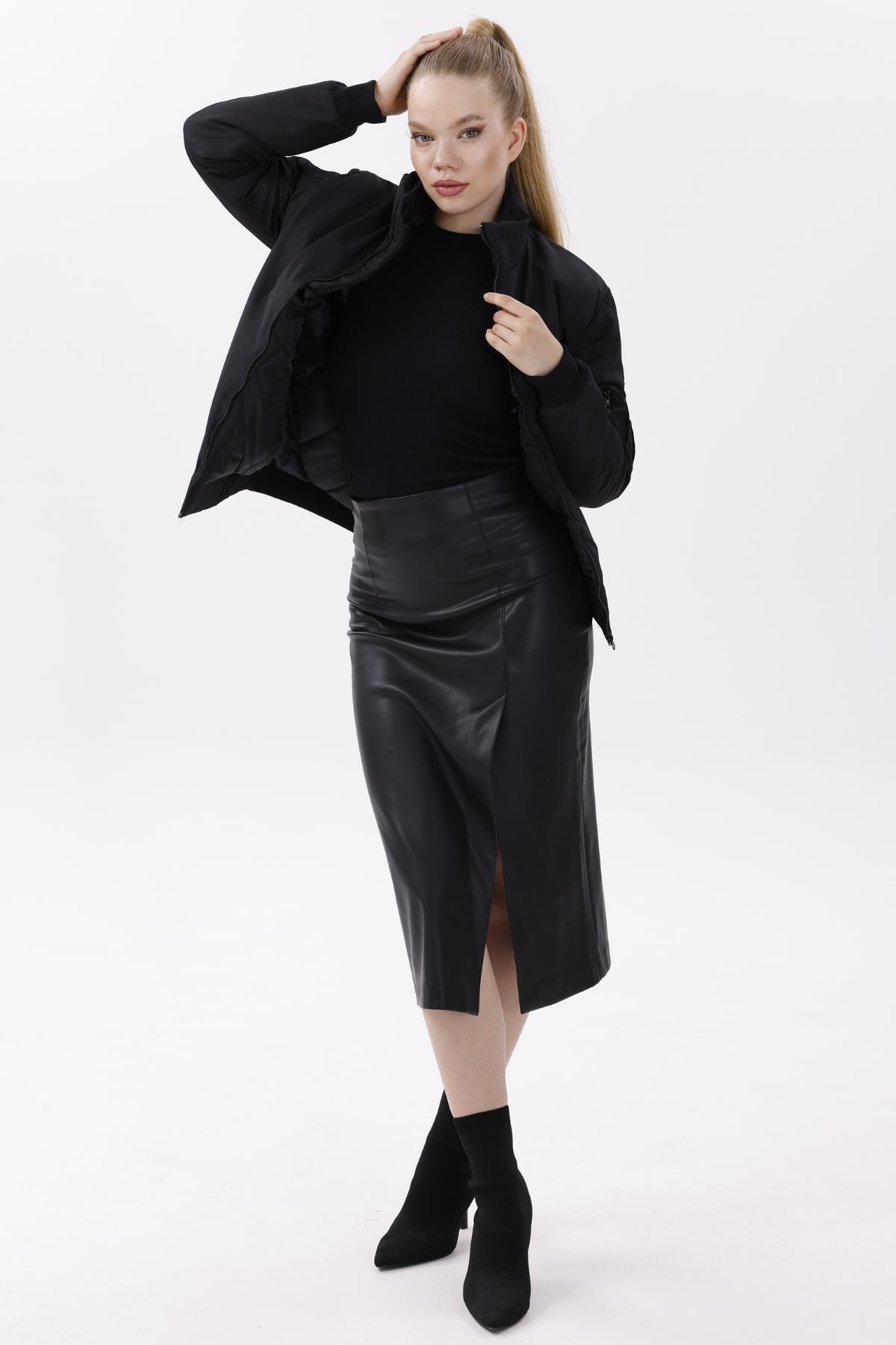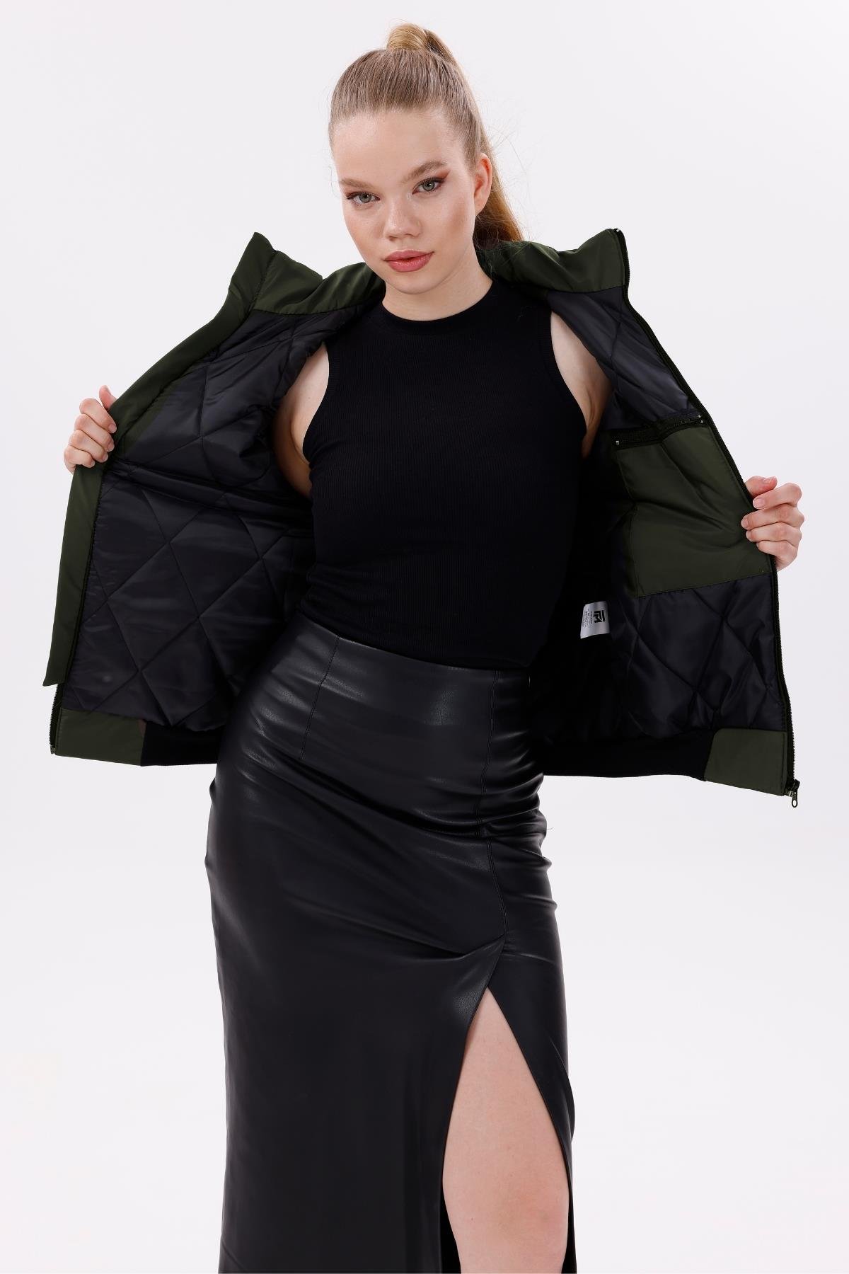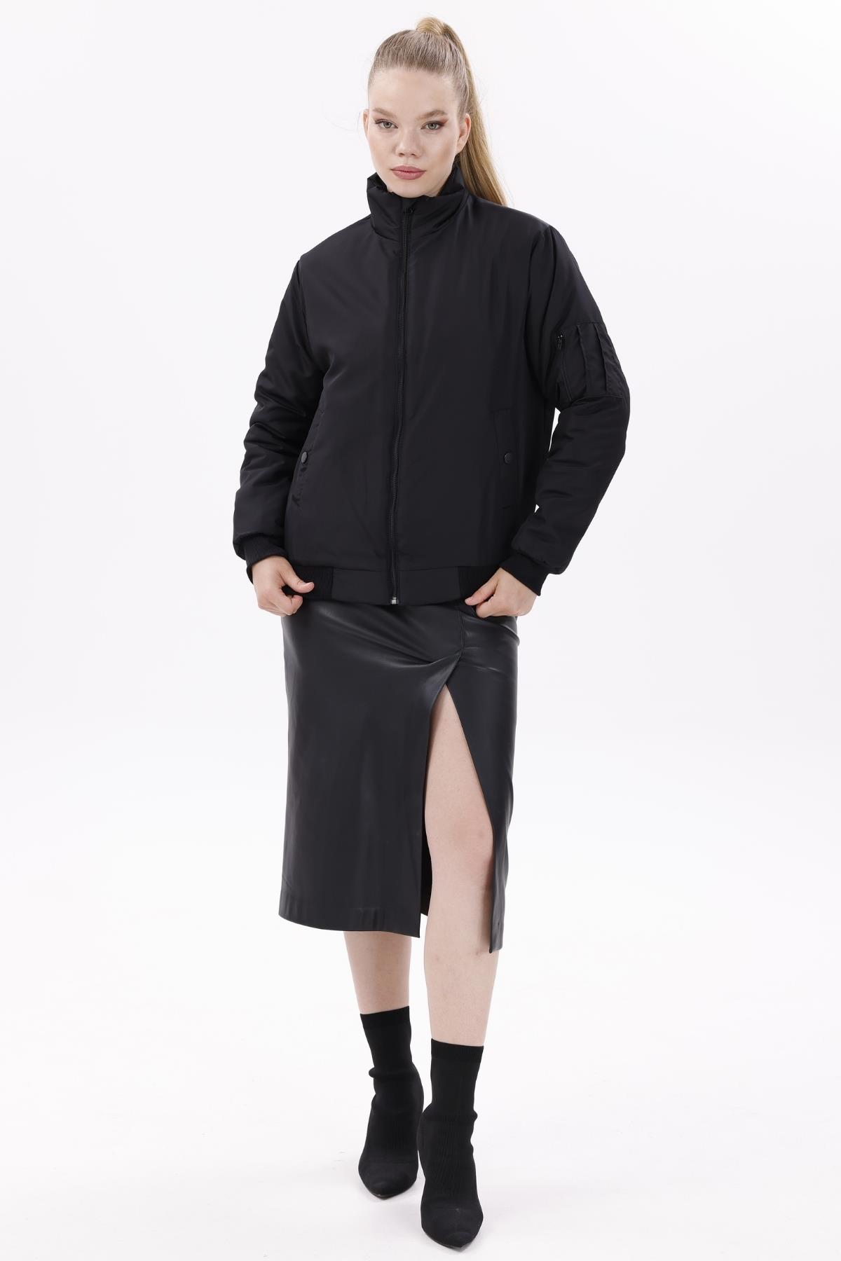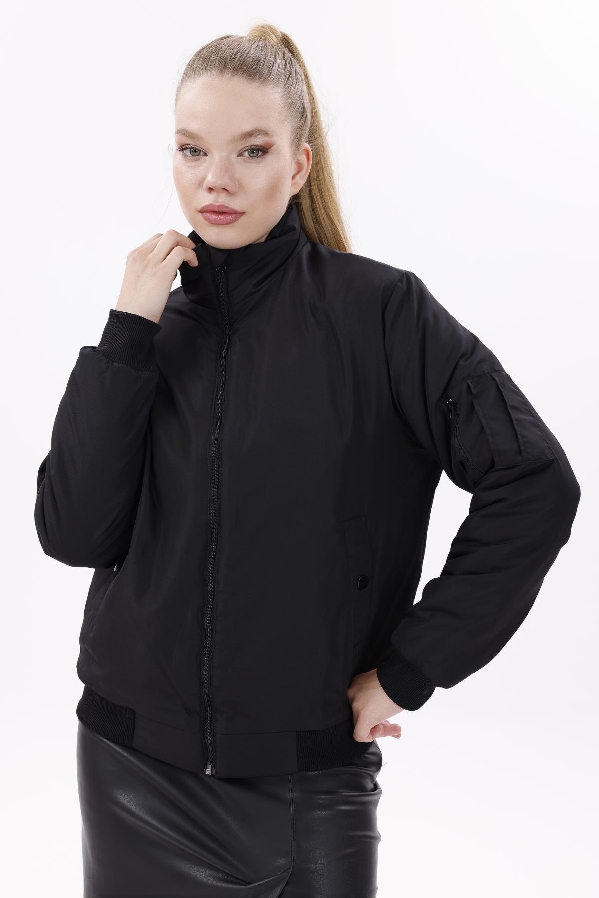 Kadın Astarlı Dik Yaka Mevsimlik Su Ve Rüzgar Geçirmez Mont (FM-505-K Siyah)