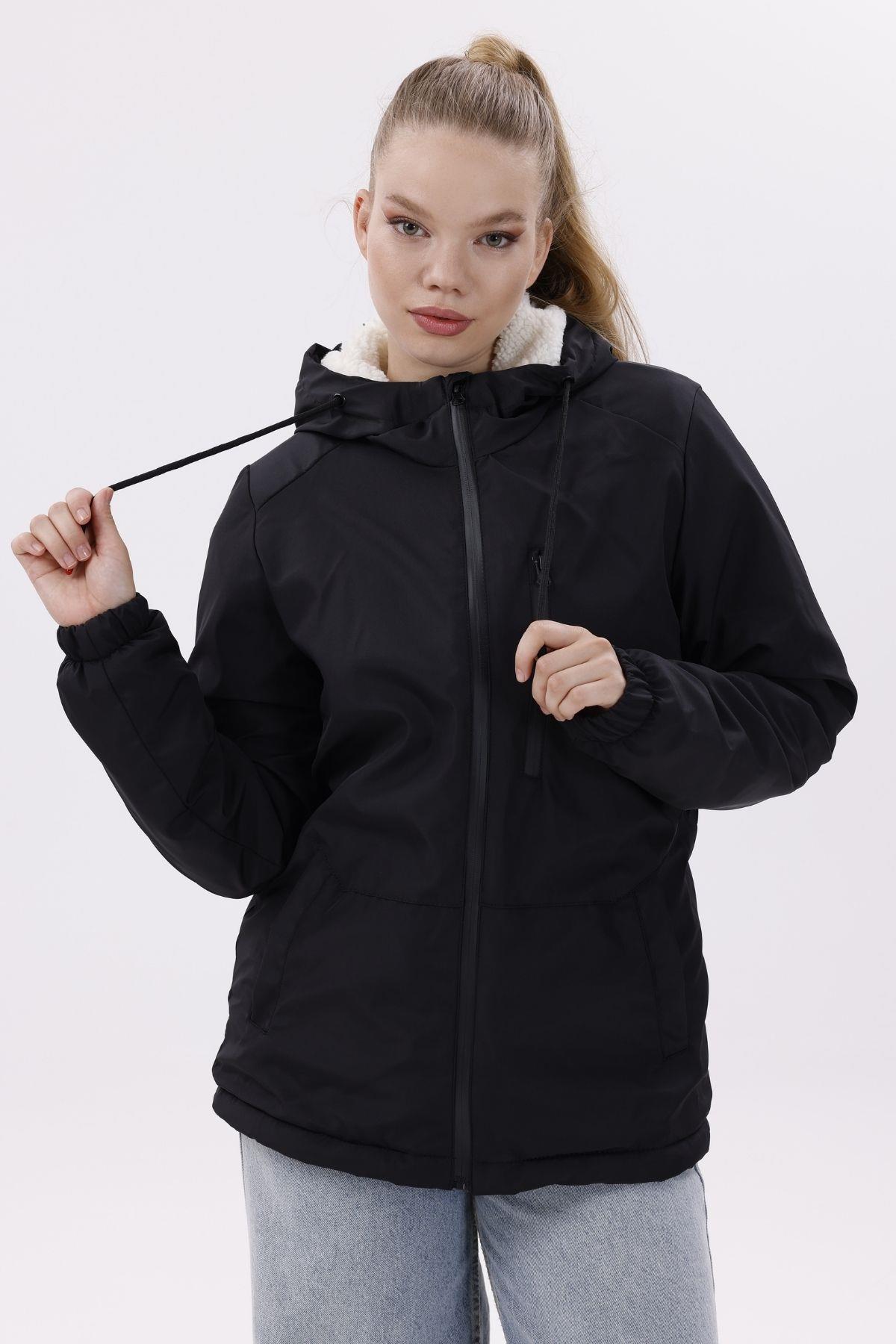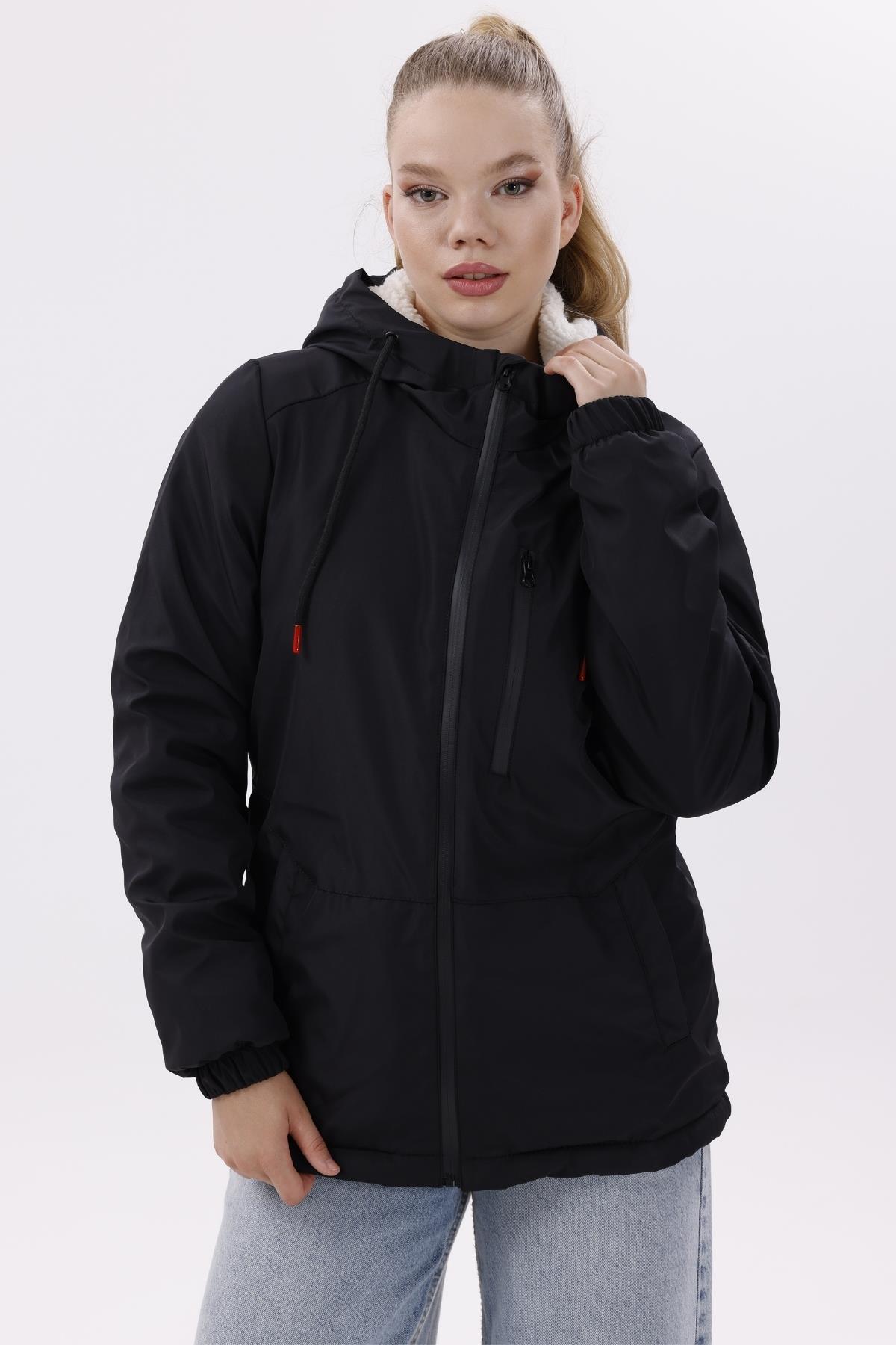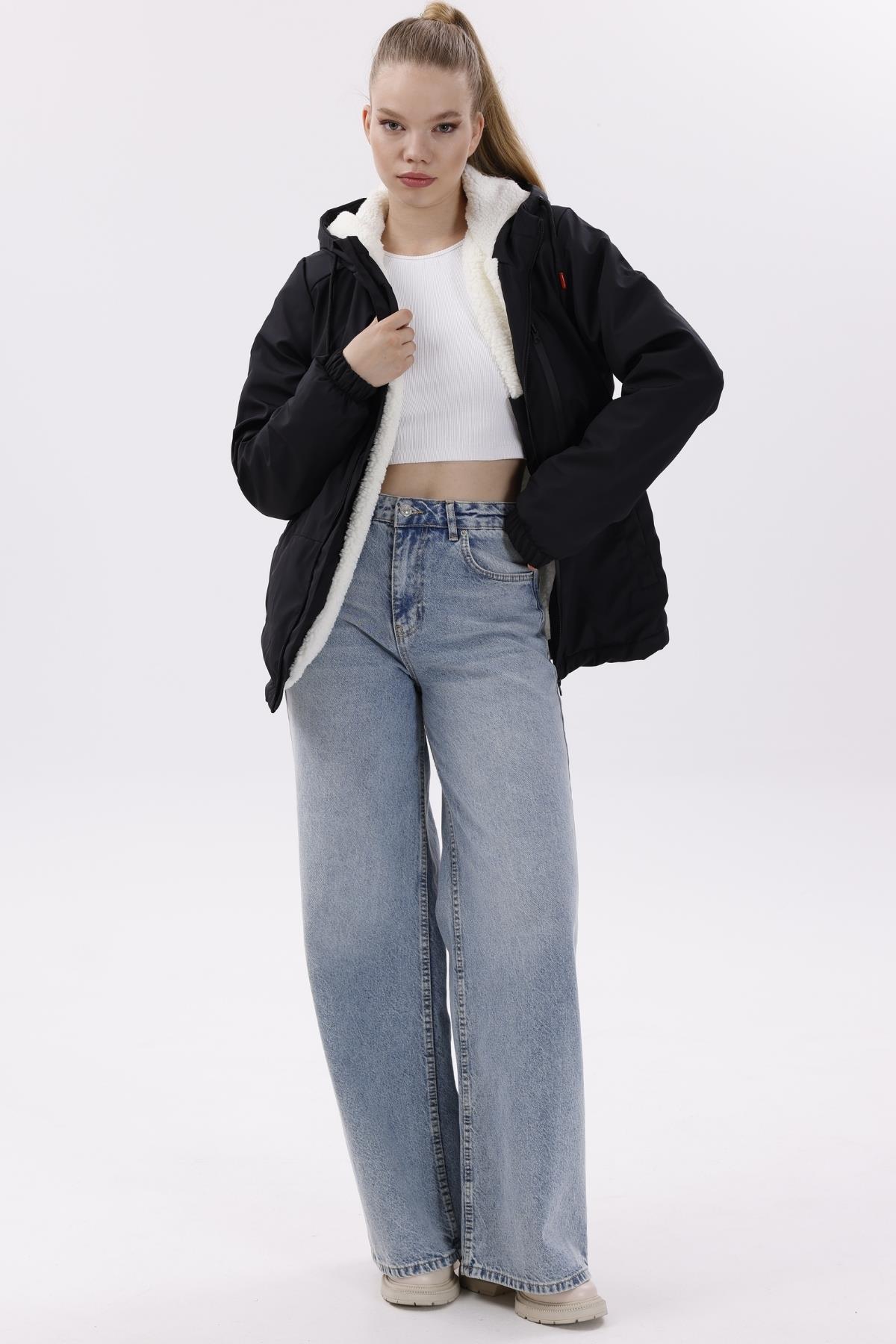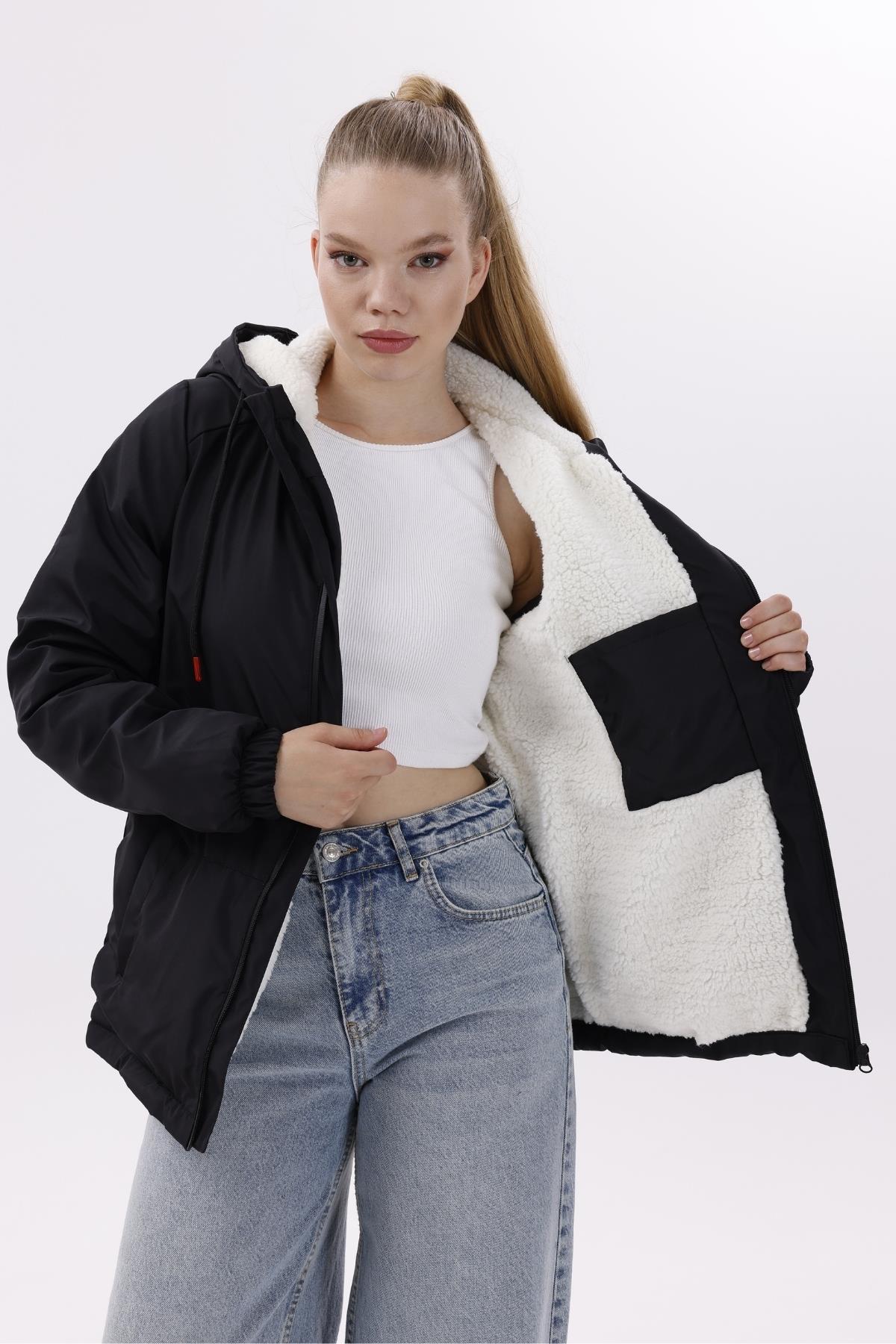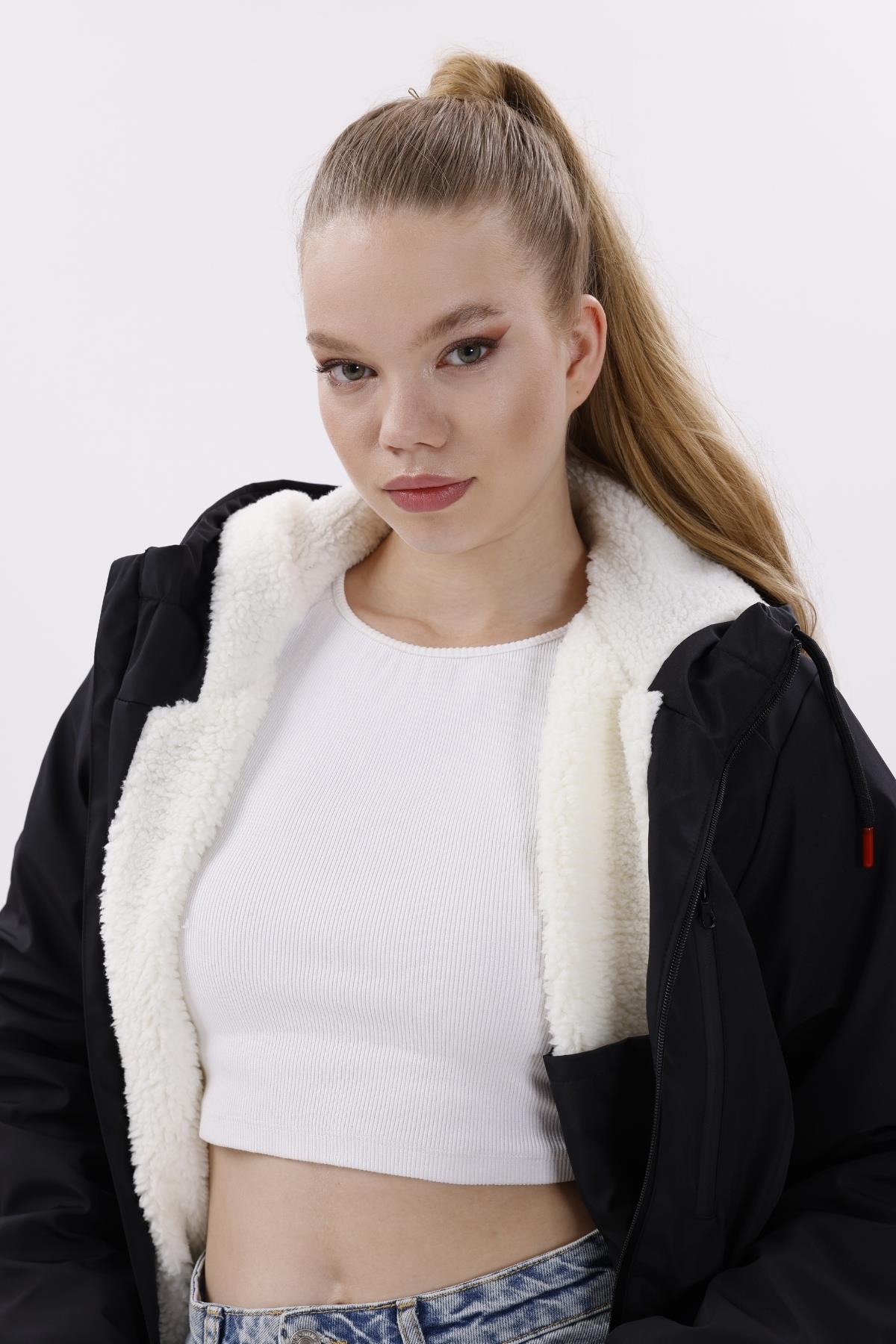 Kadın Kürklü Su Ve Rüzgar Geçirmez Kapüşonlu Kışlık Mont & Kaban & Parka (FMM-100-K Siyah)