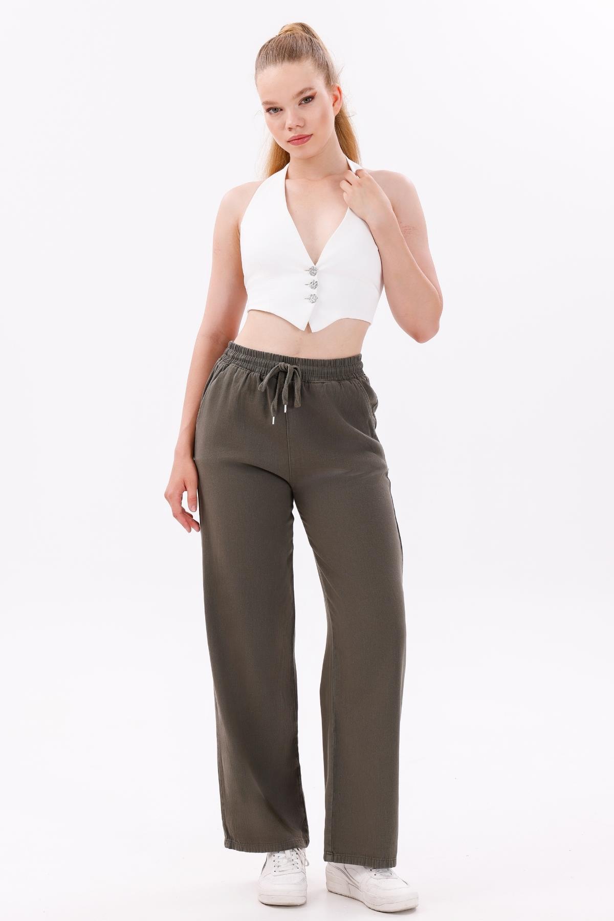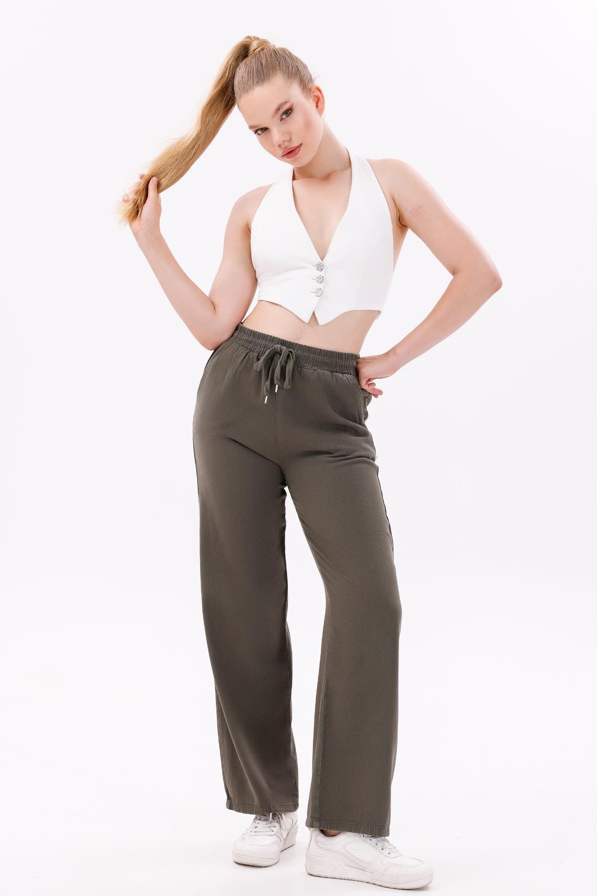 Kadın Yüksek Bel Gabardin-keten Dokulu Pantolon – Nefes Alabilir Kumaş, 4 Mevsim, günlük kullanımda üst düzey rahatlık sağlayan nefes alabilir kumaşı ve esnek beliyle tasarlanmıştır. Modern kesimi stilinizi tamamlarken dayanıklı dikiş yapısı uzun ömürlü kullanım vadeder. Pratik cepleri sayesinde temel eşyalarınızı yanınızda taşımanız kolaylaşır.