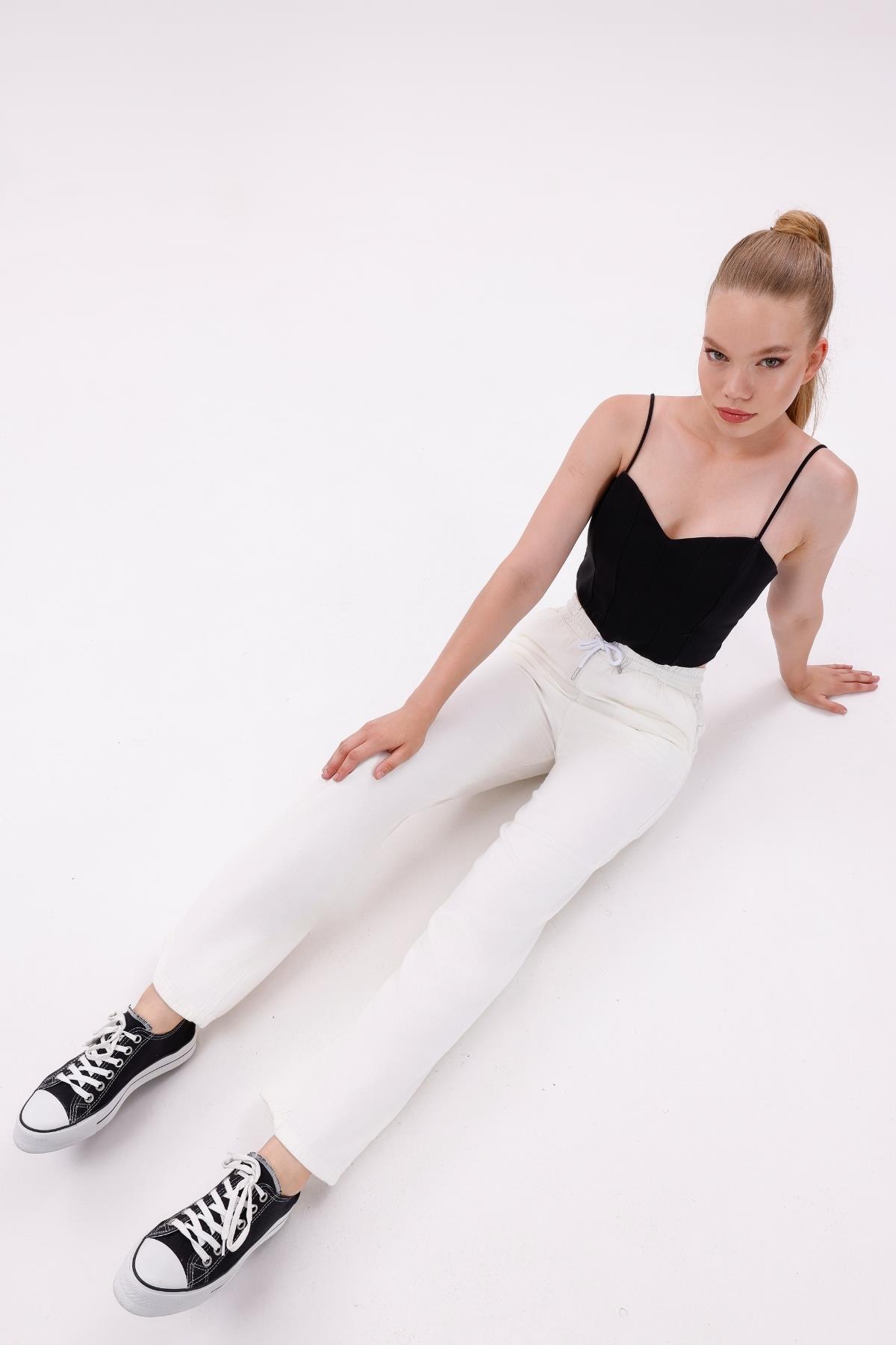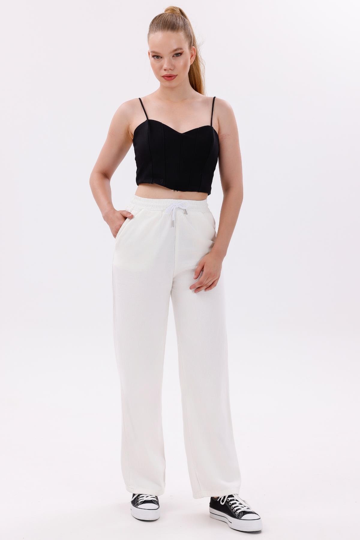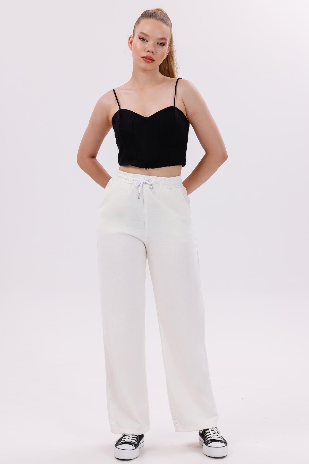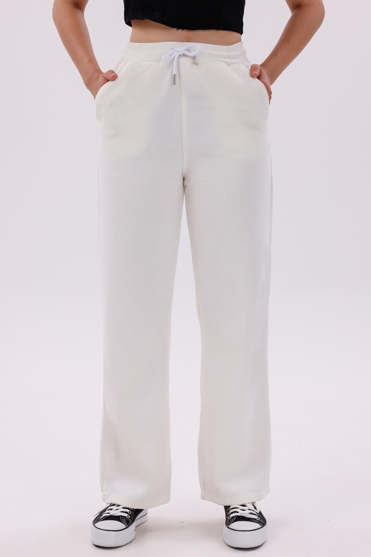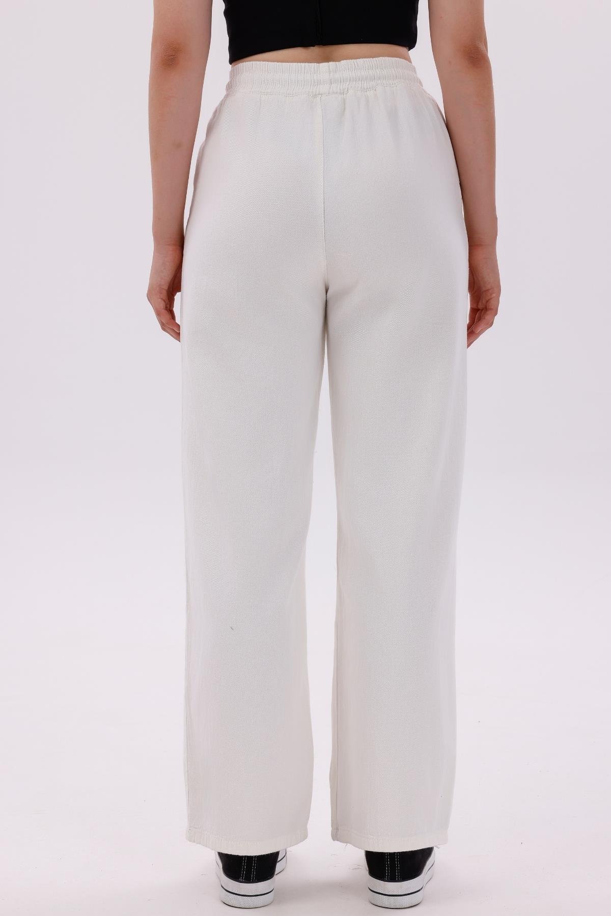 Kadın Yüksek Bel Gabardin-keten Dokulu Pantolon – Nefes Alabilir Kumaş, 4 Mevsim (PANT-KETEN-KADIN-BEYAZ)