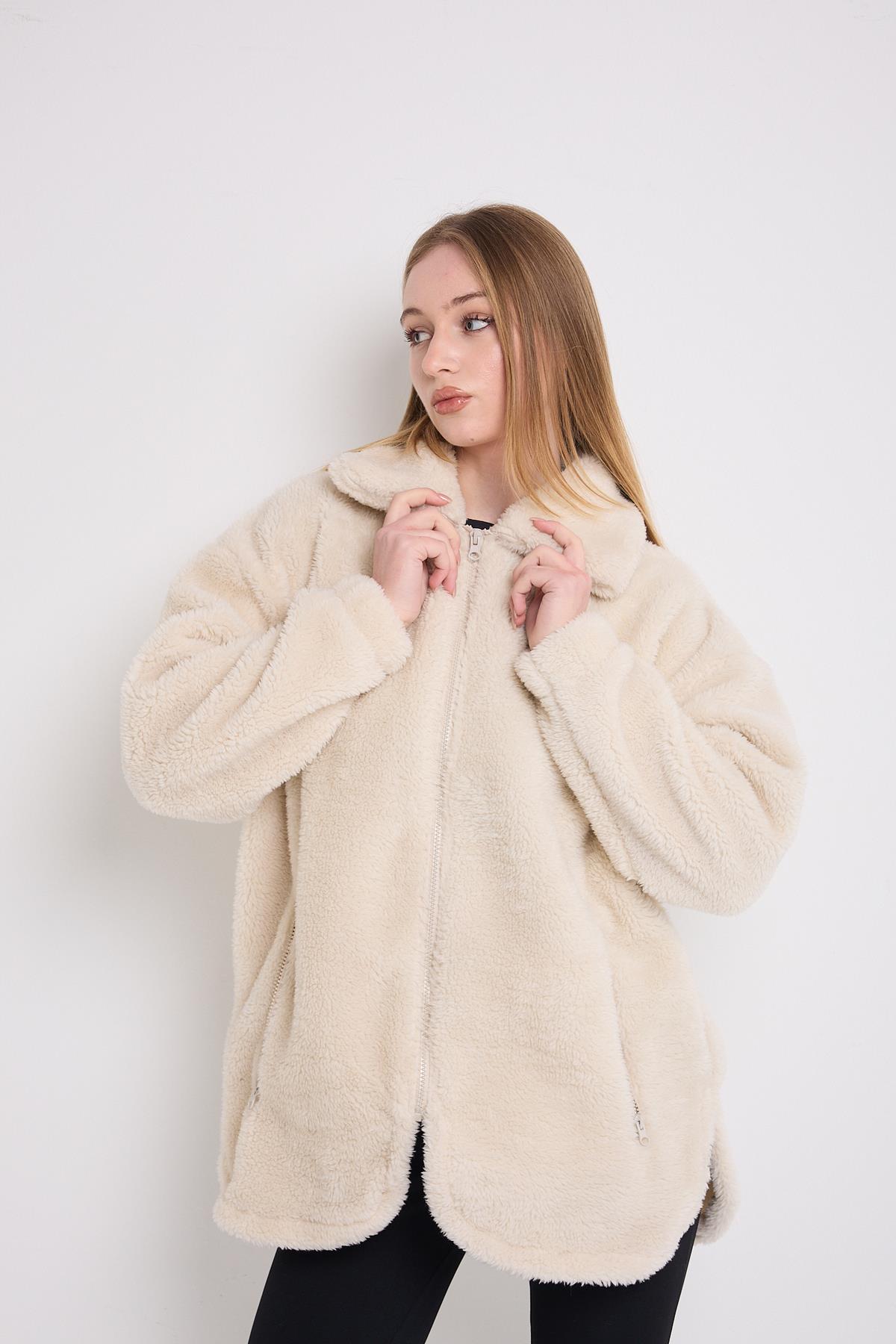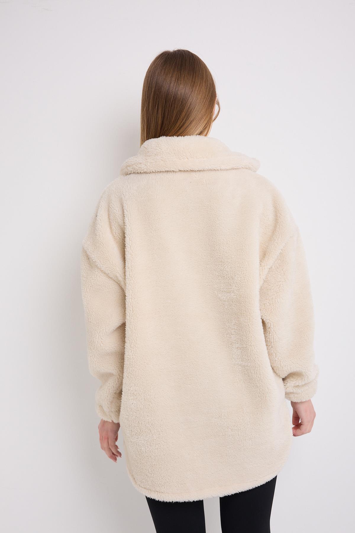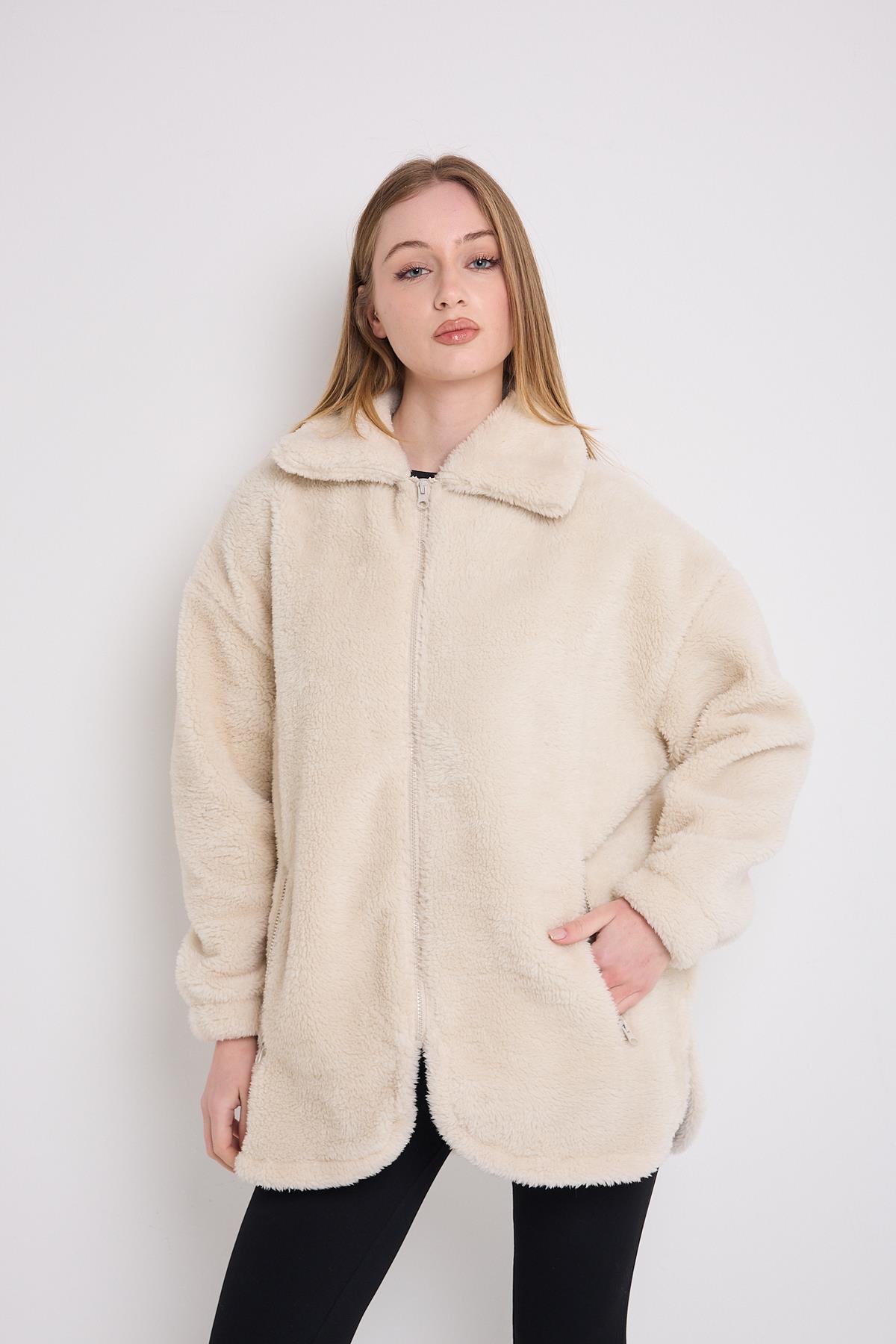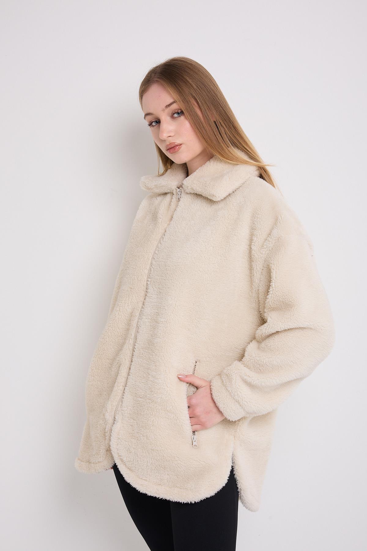 Spor Kadın Peluş Rüzgar Geçirmez Welsoft Çift Cepli Mont Kaban (S-FMK-10 PELUŞ Ekru)