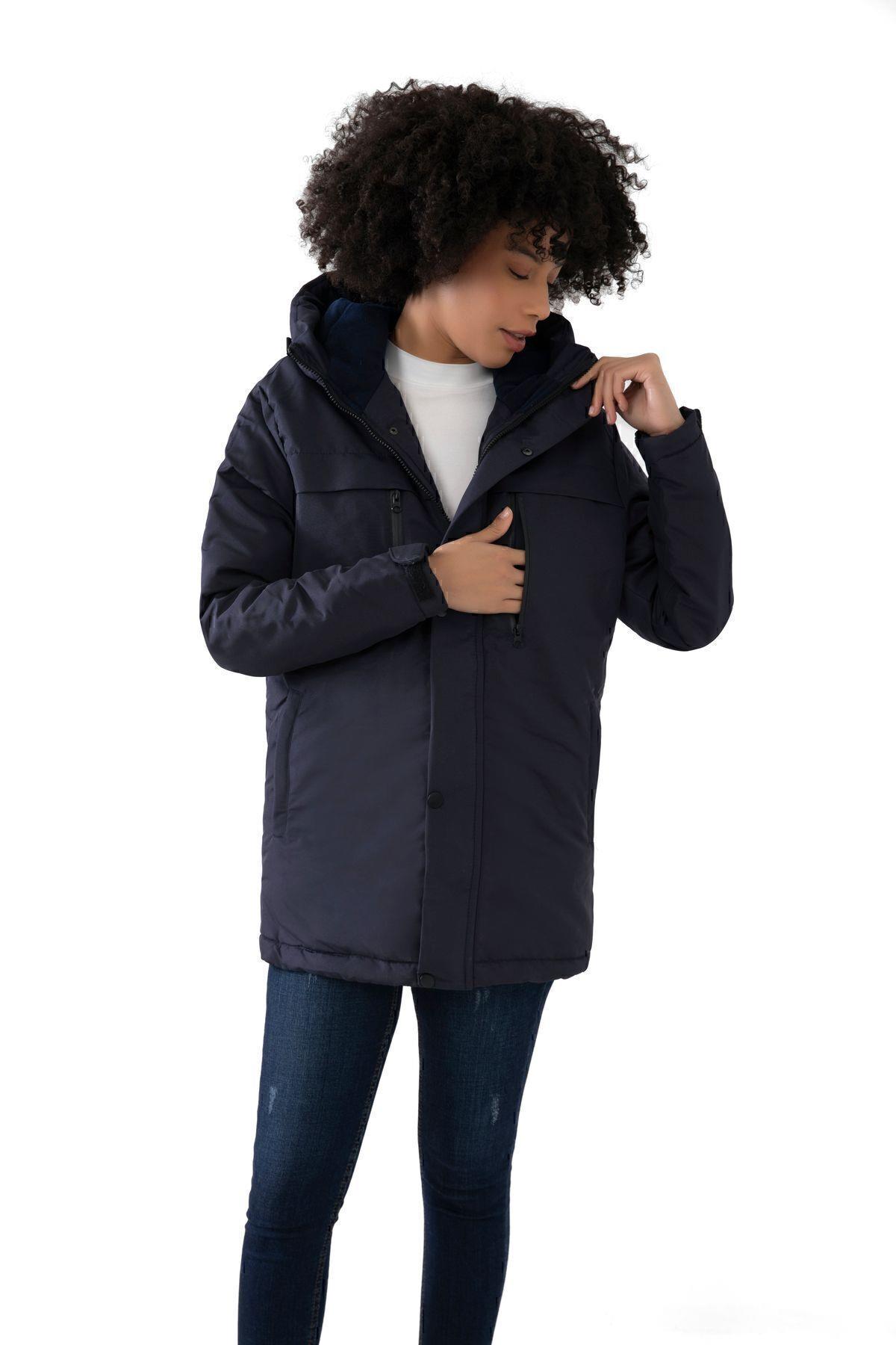 Spor Kadın Polarlı Su Ve Rüzgar Geçirmez Kapüşonlu Mont Kaban Parka (S-FMP-K-105 Lacivert)