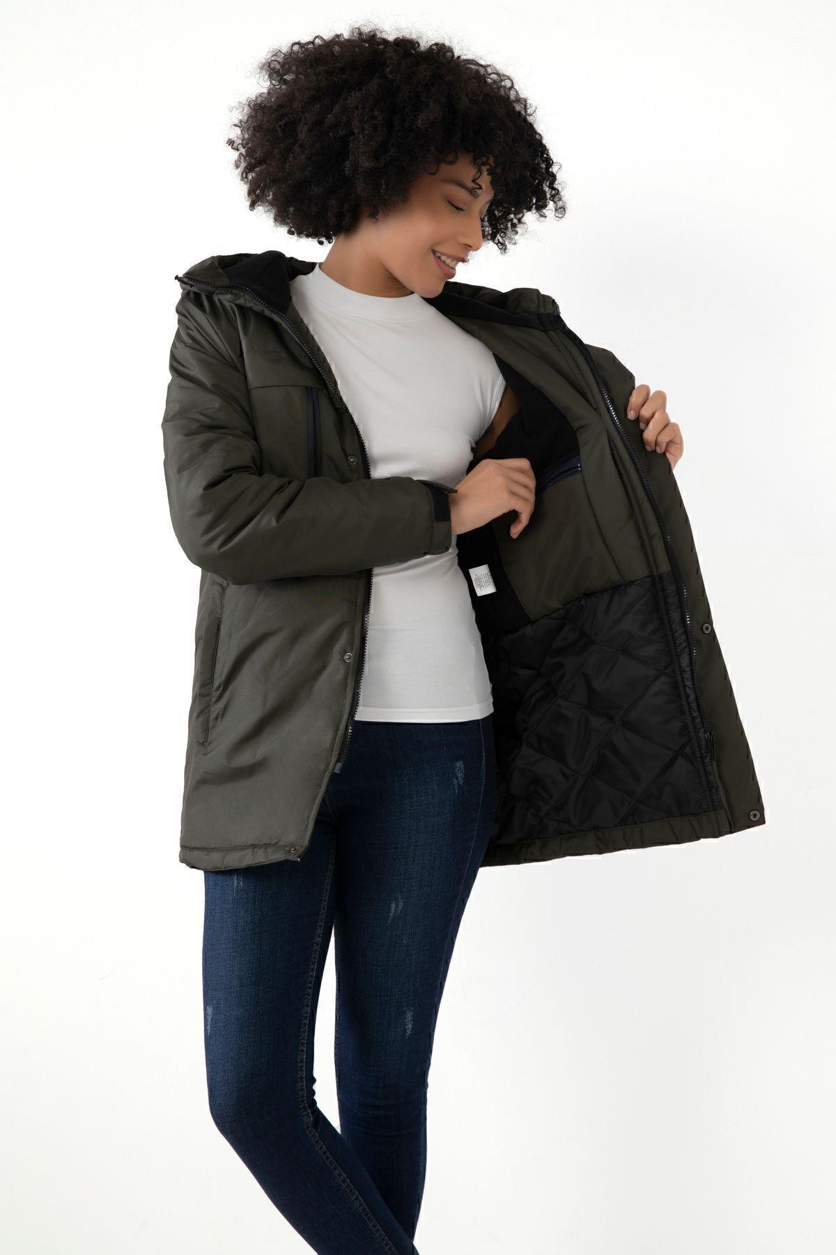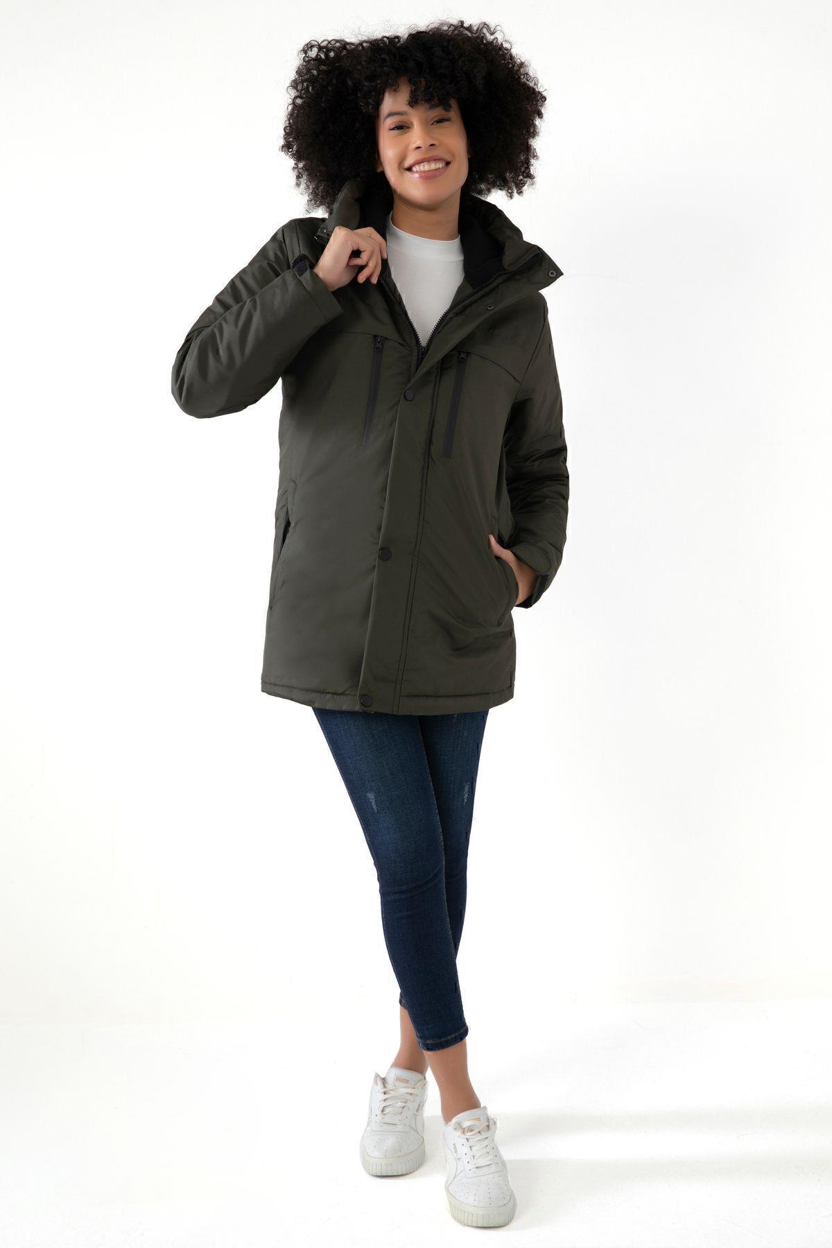 Rüzgara dayanıklı özelliğiyle Spor Kadın Polarlı Su Ve Rüzgar Geçirmez Kapüşonlu Mont Kaban Parka gün boyu konfor sunar ve tarzını tamamlar; şimdi stokta, kaçırma.