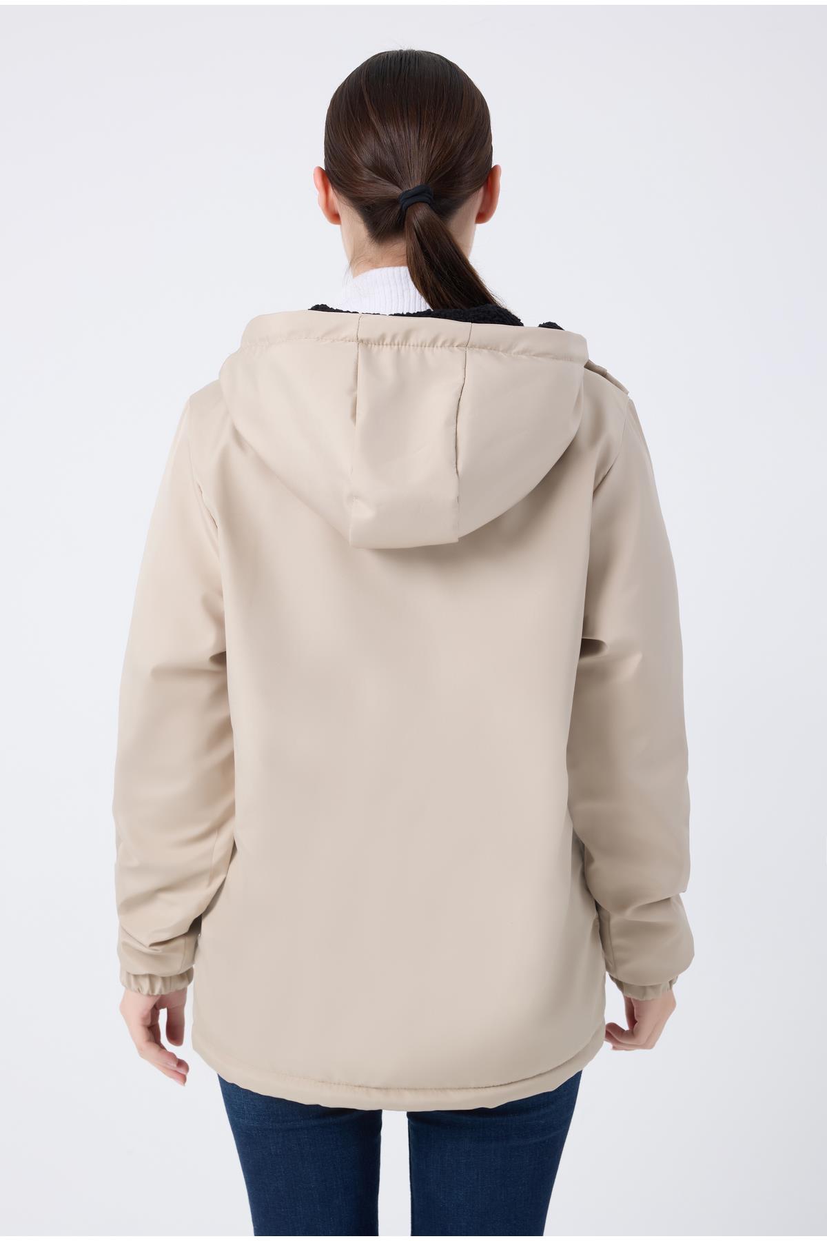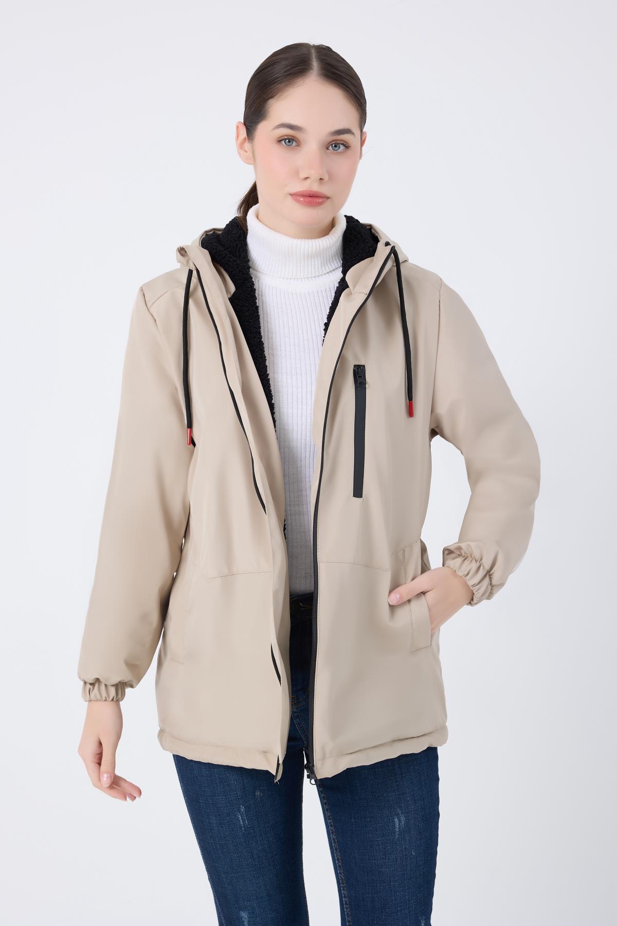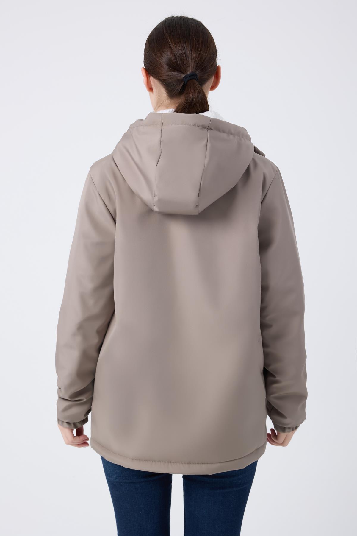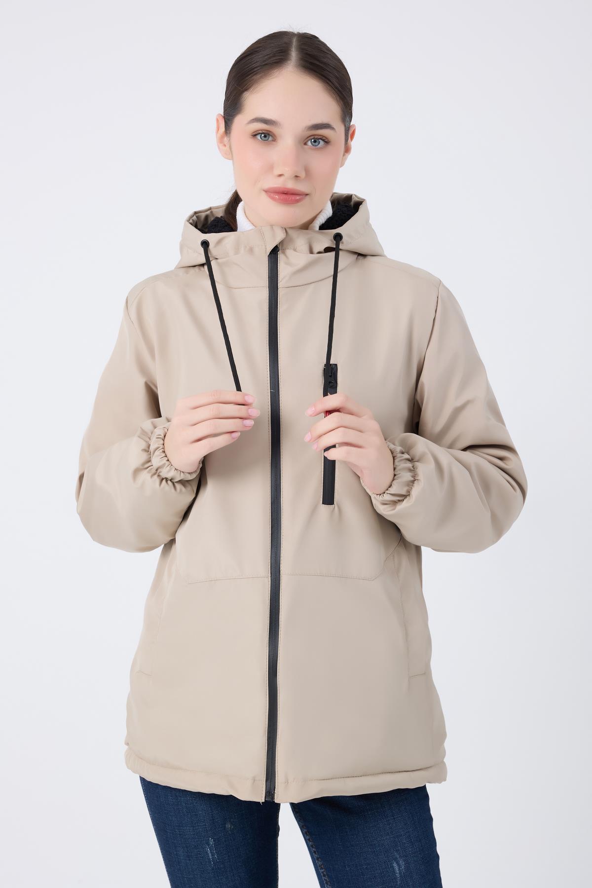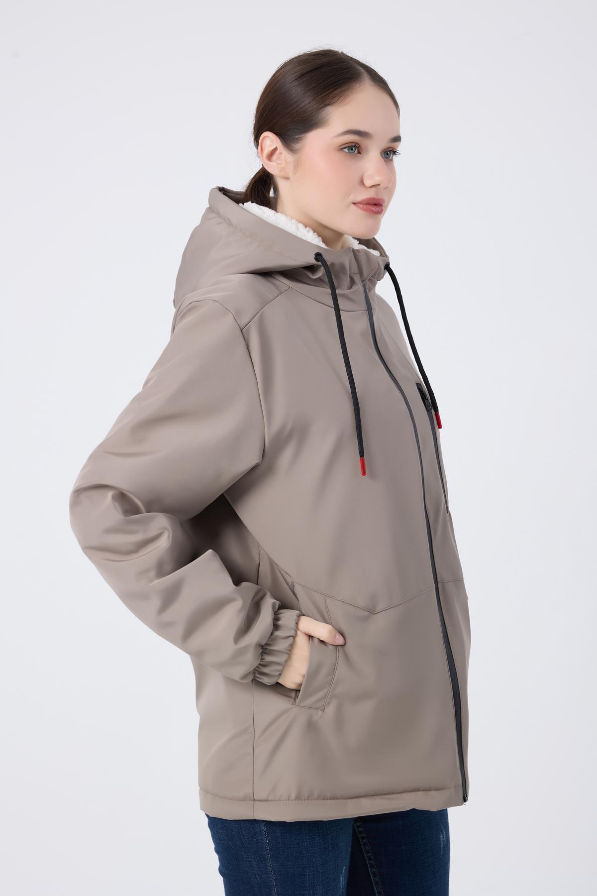 Spor Kadın Kürklü Su Ve Rüzgar Geçirmez Kapüşonlu Mont & Kaban & Parka (S-FMM-100-K Taba)