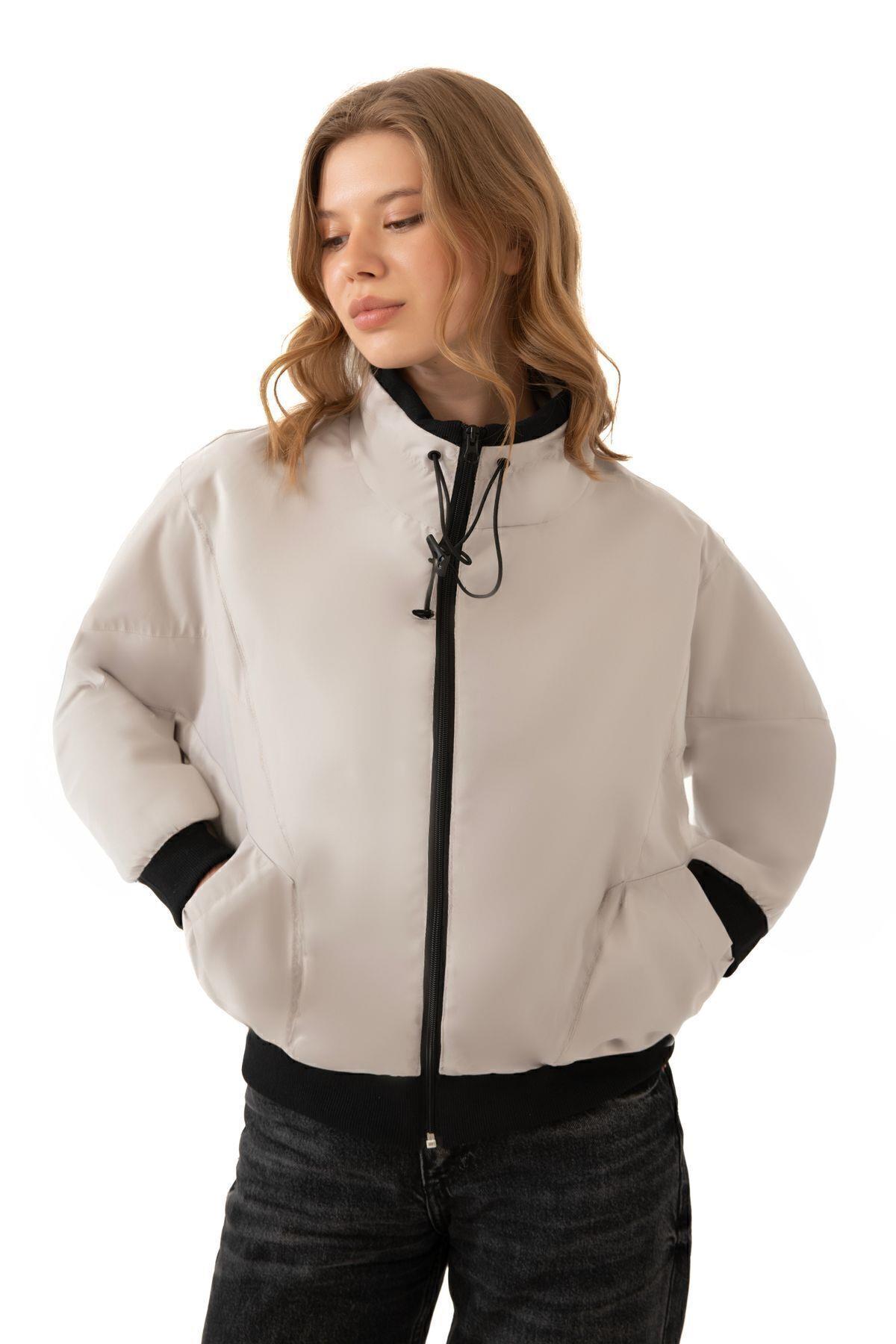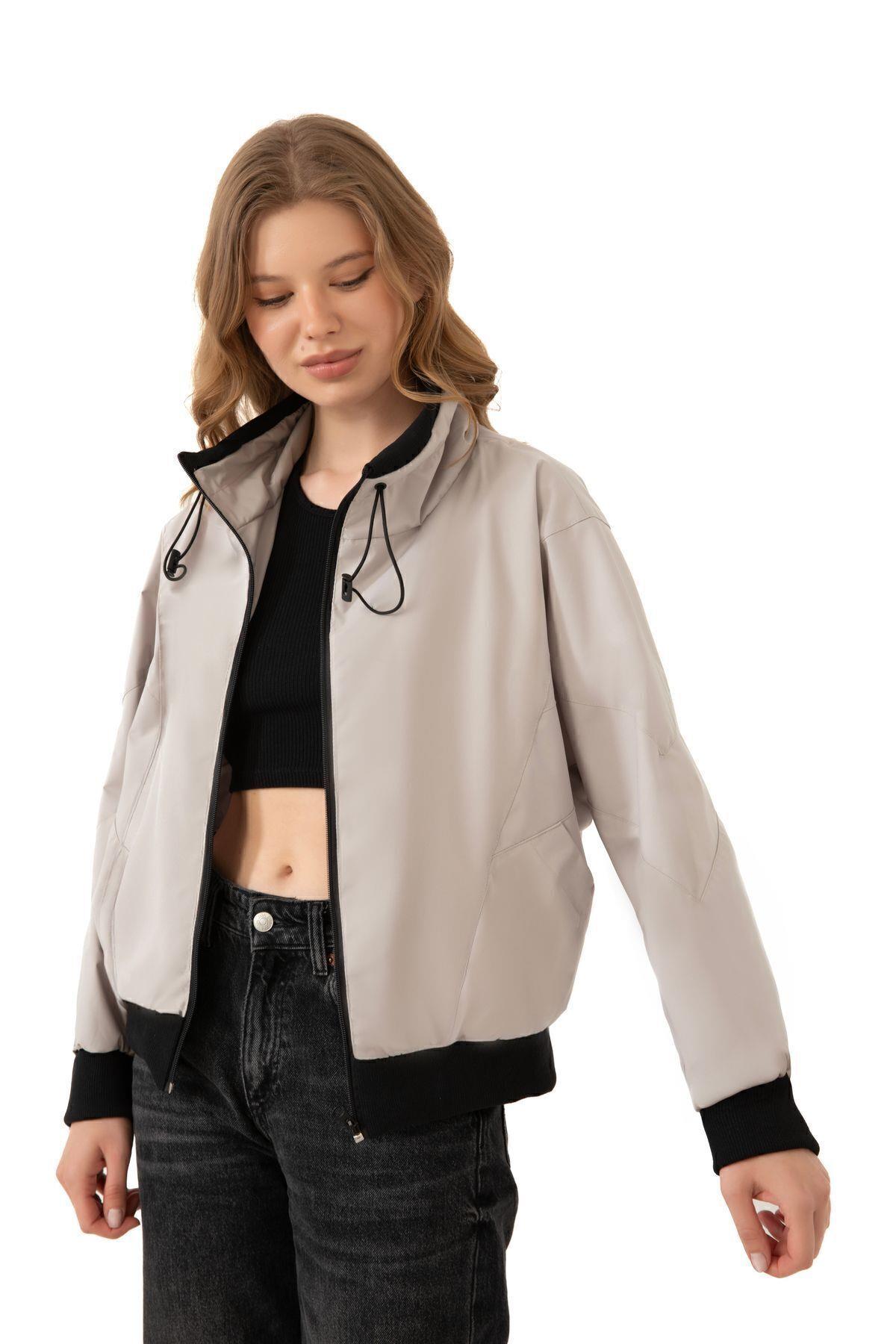 Spor Kadın Dik Yaka Su ve Rüzgar Geçirmez Oversize Crop Mevsimlik Yağmurluk Rüzgarlık (S-Y-30 Taş)