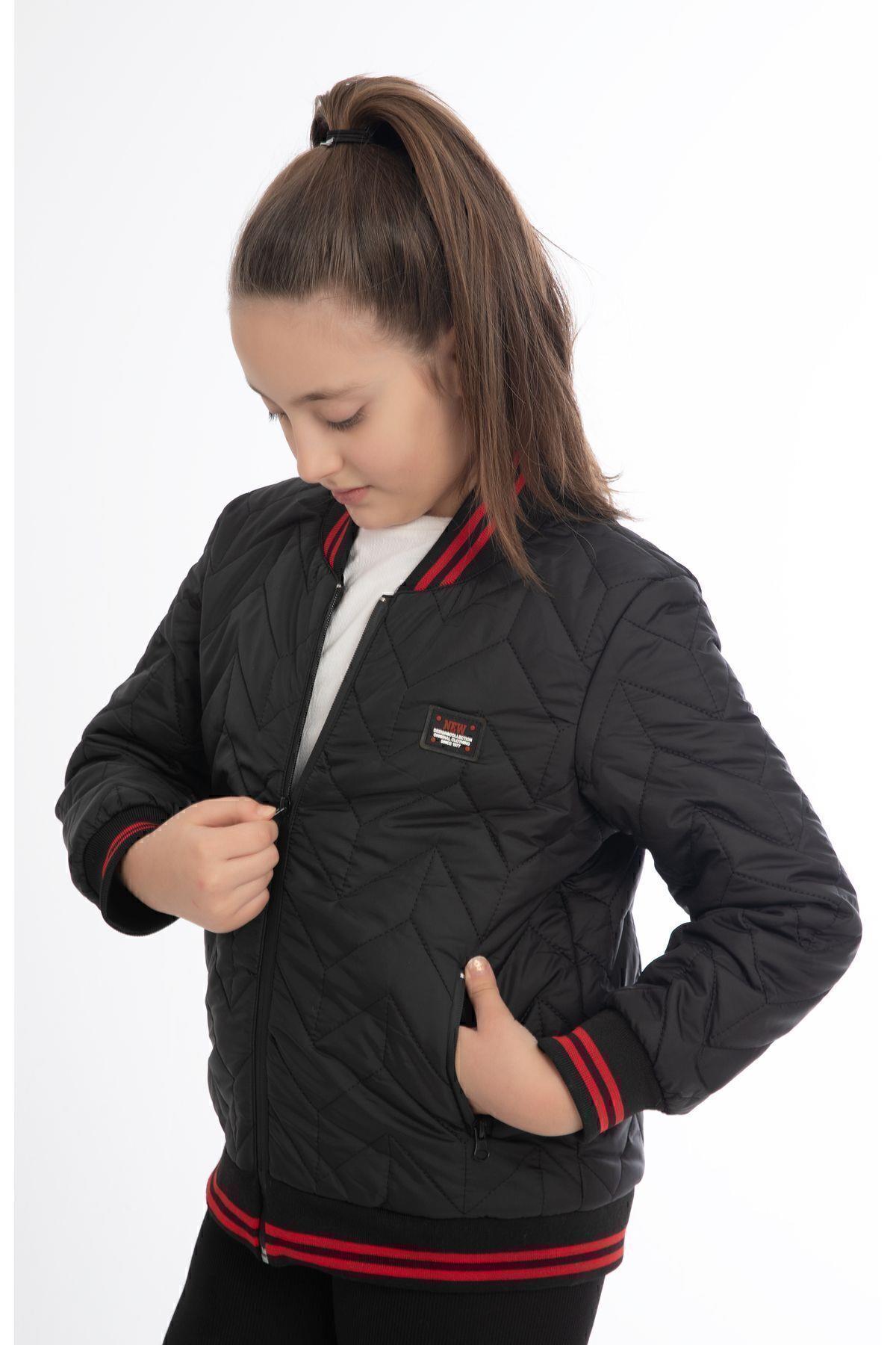 Spor Kız Çocuk Kolej Yaka Astarlı Su Ve Rüzgar Geçirmez Fermuarlı Cep Mont Ceket (S-KLJ-1 K Siyah)