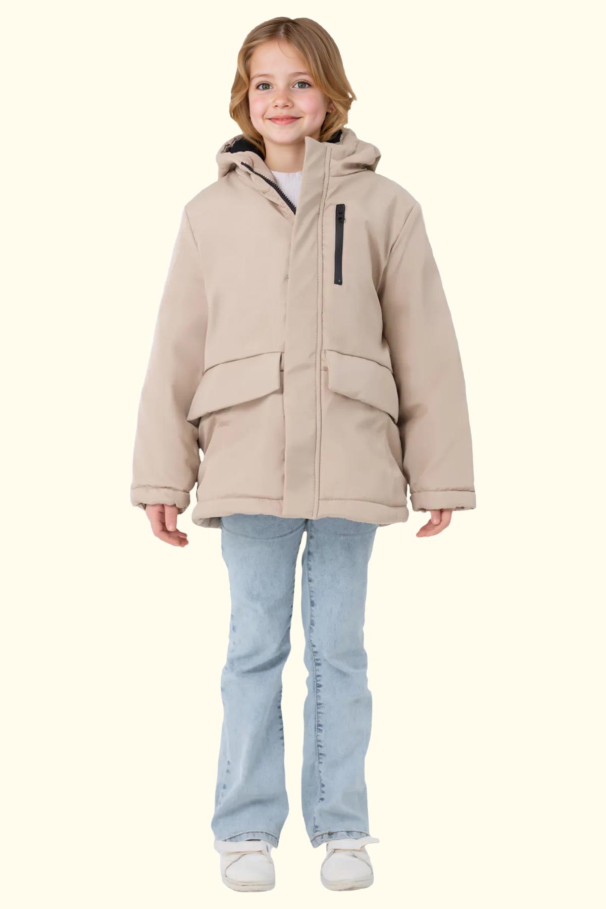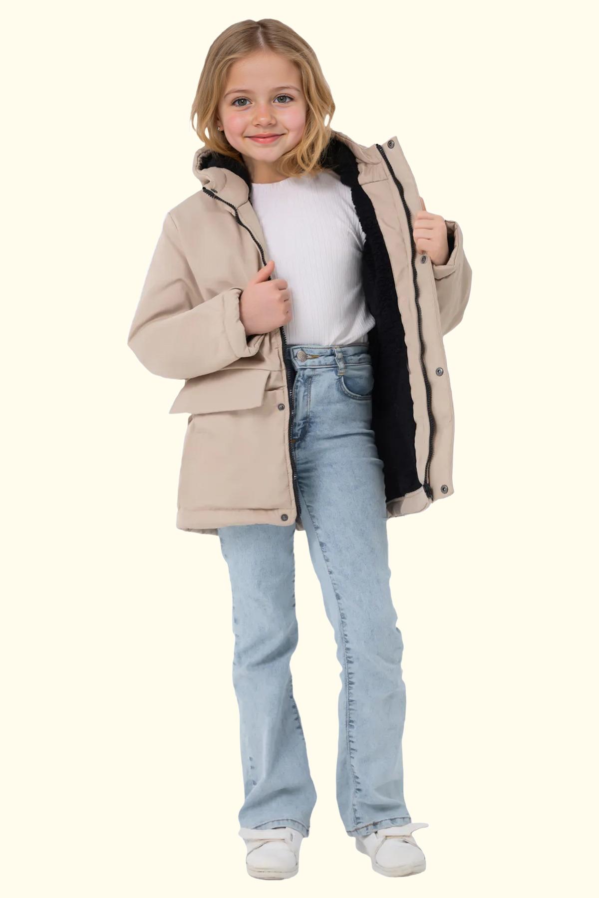 Spor Kız Çocuk Kürklü Su ve Rüzgar Geçirmez Kapüşonlu 3 Cep Mont & Kaban & Parka (S-FMPÇ-110 K Taş)