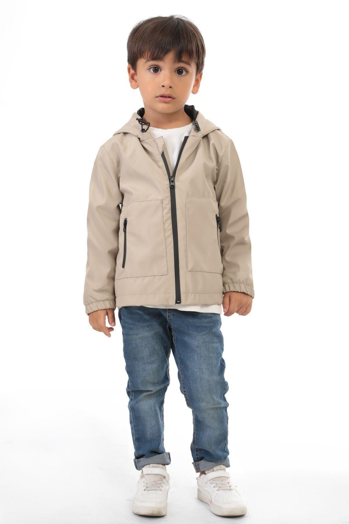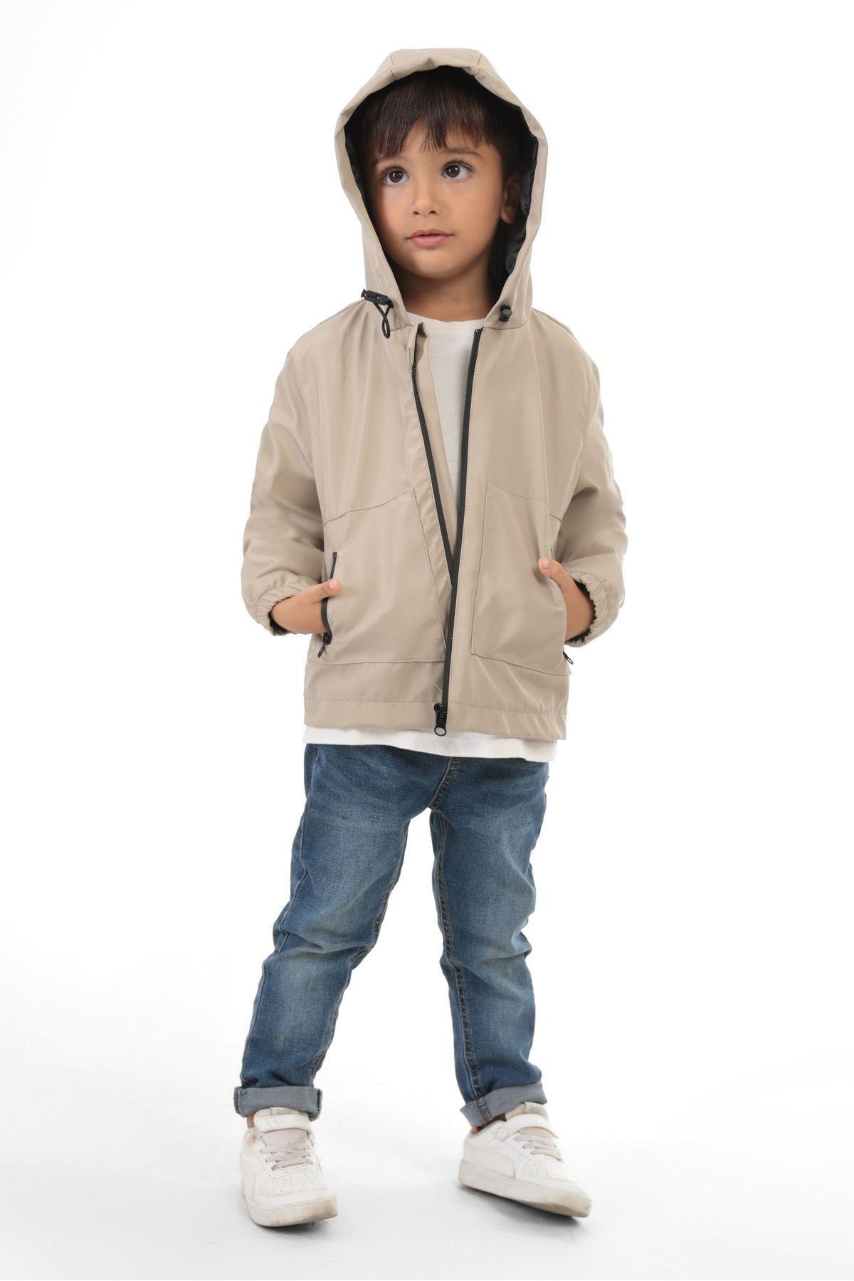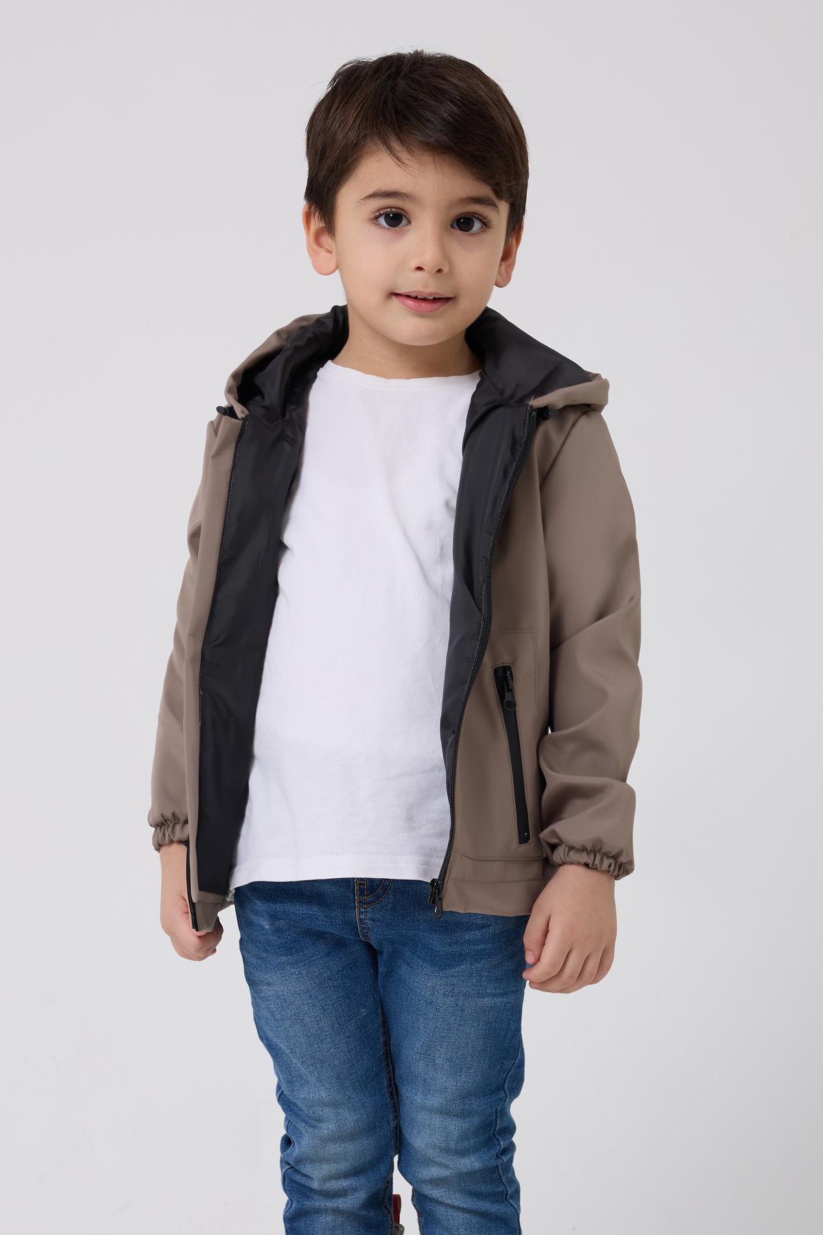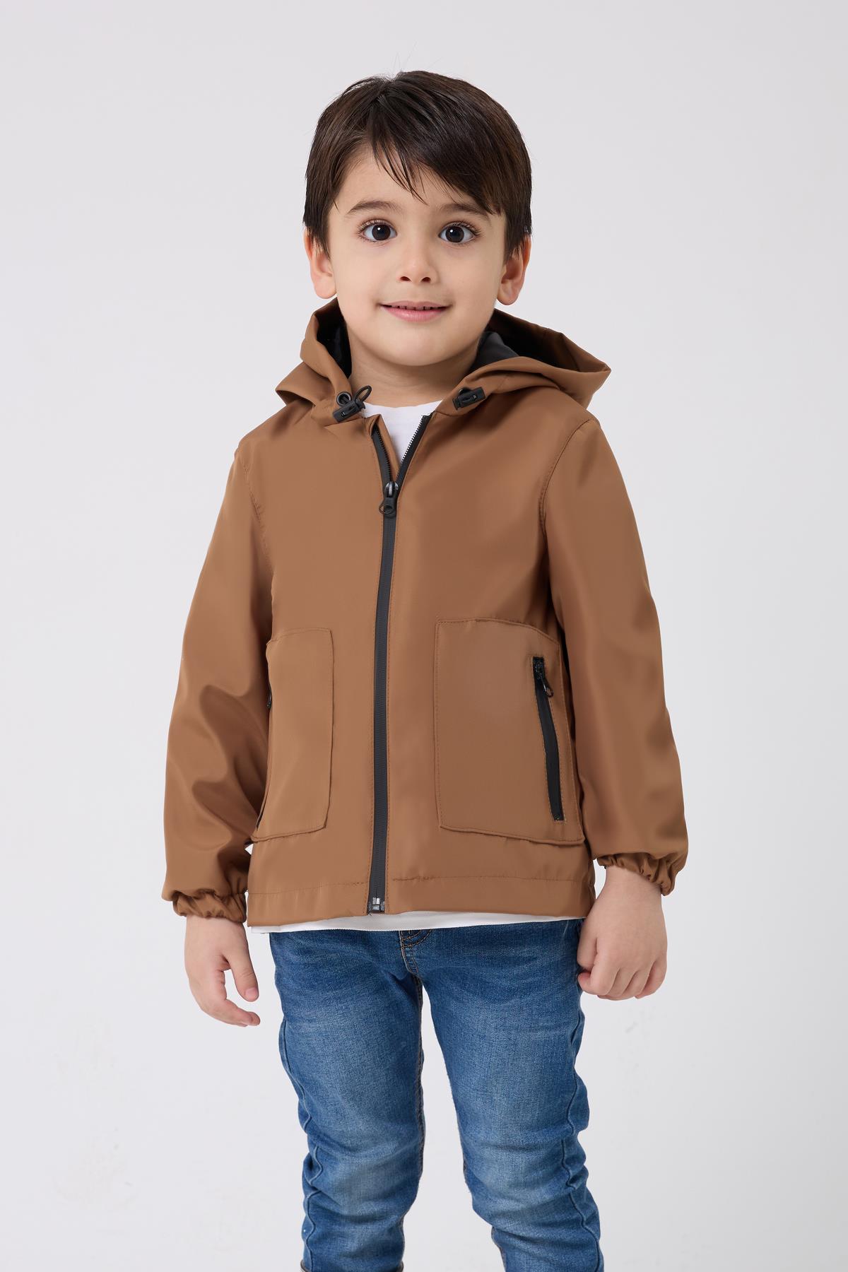 Erkek Çocuk Astarlı Su Ve Rüzgar Geçirmez Kapüşonlu Çift Fermuarlı Yağmurluk (Y-15-C Vizon)