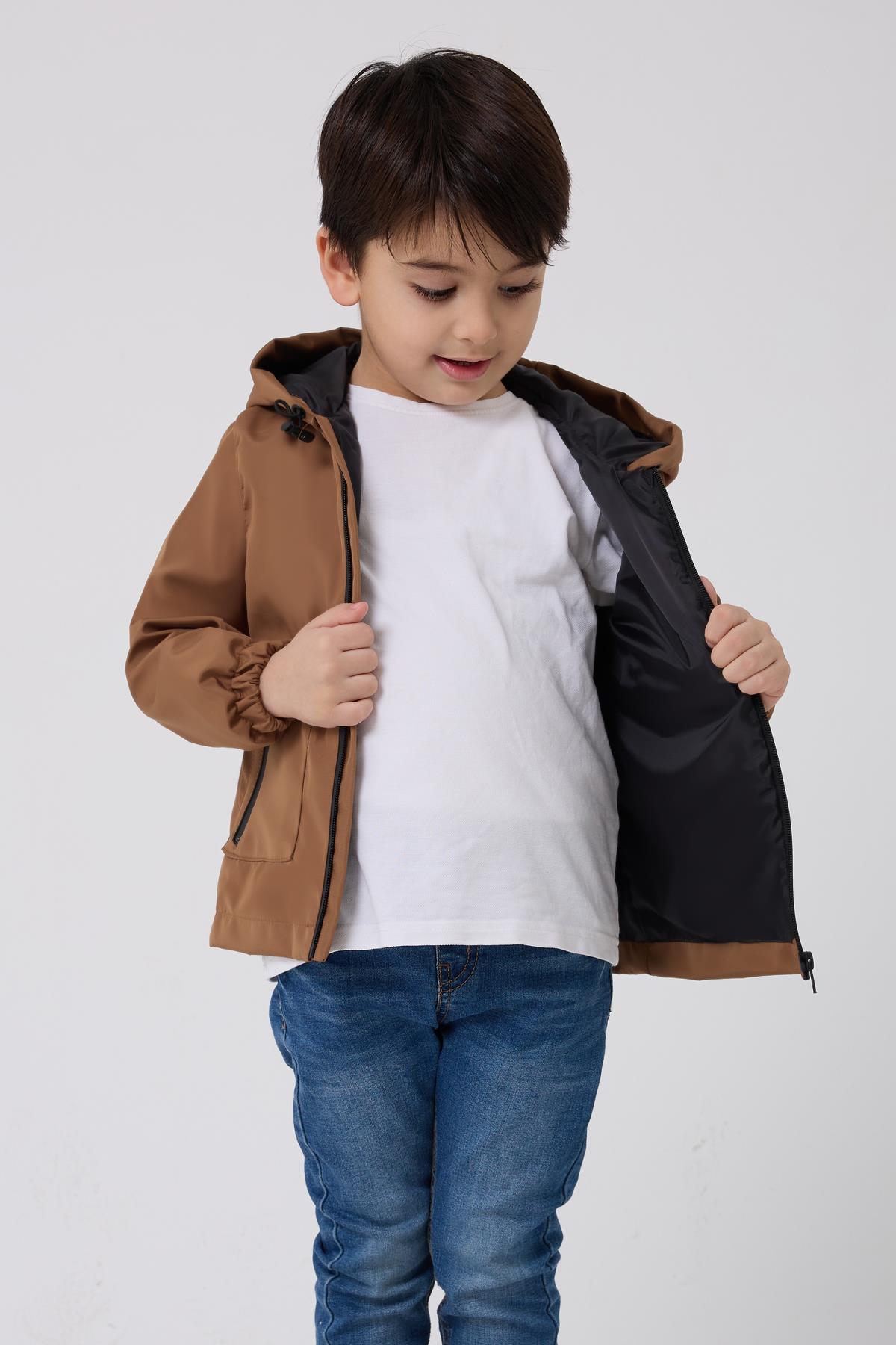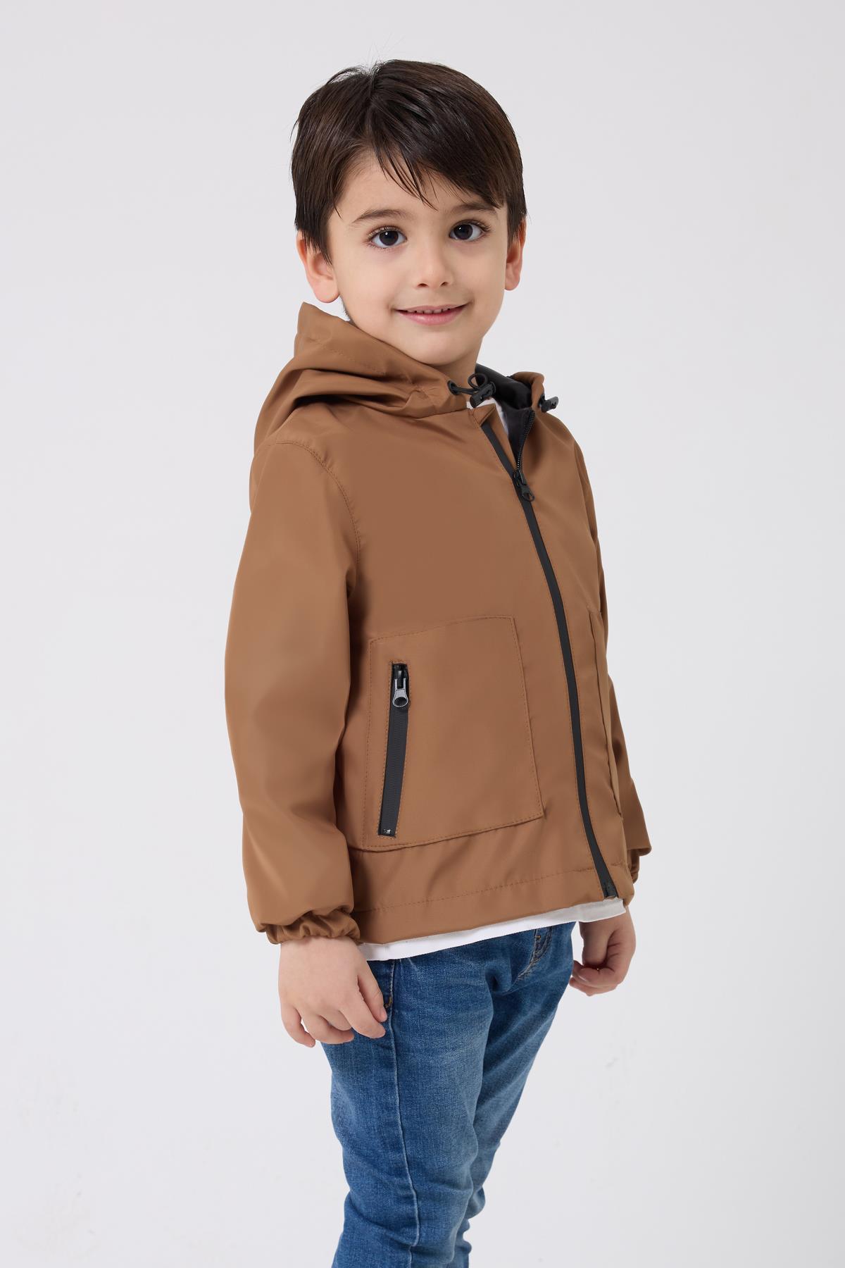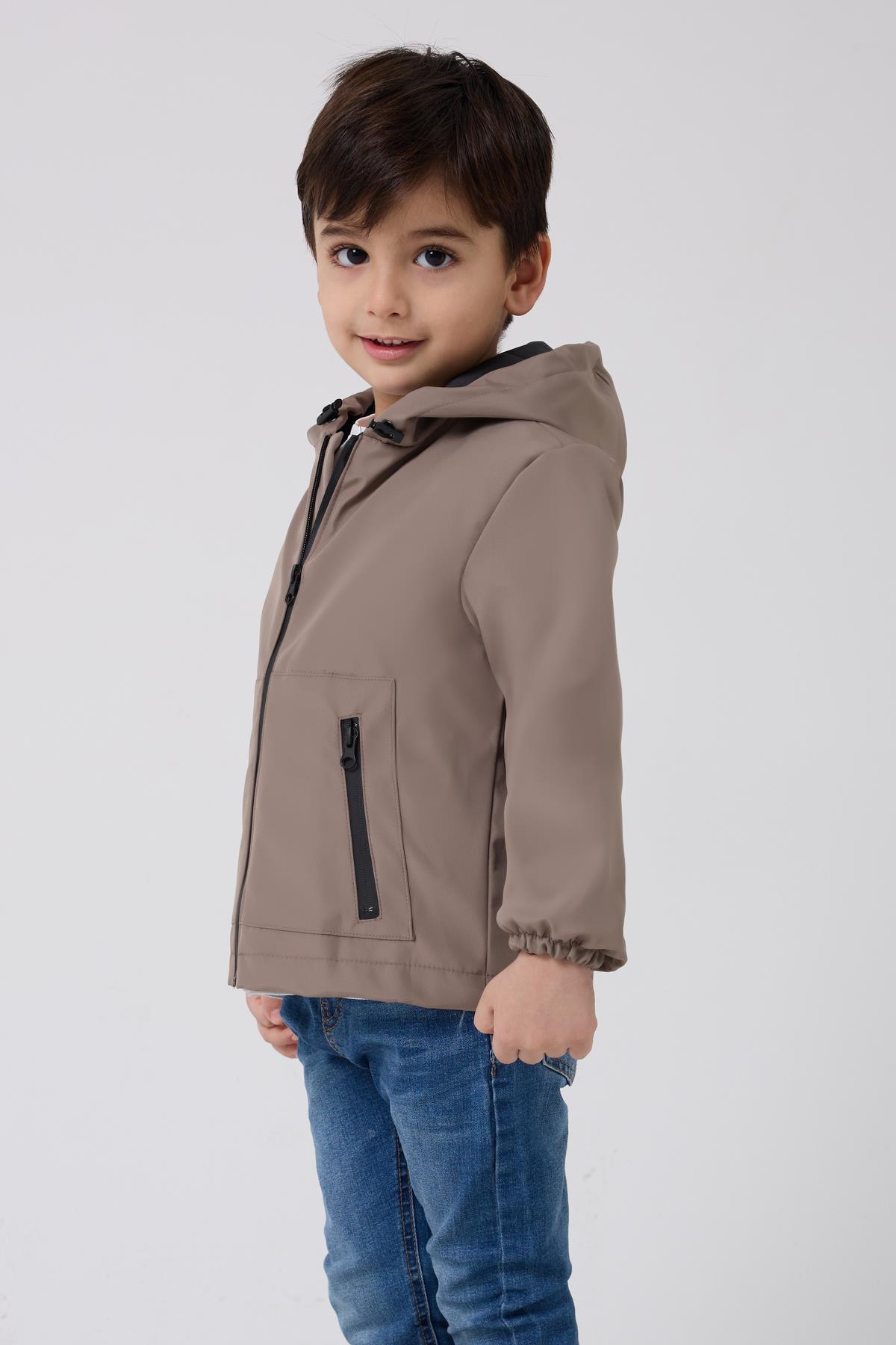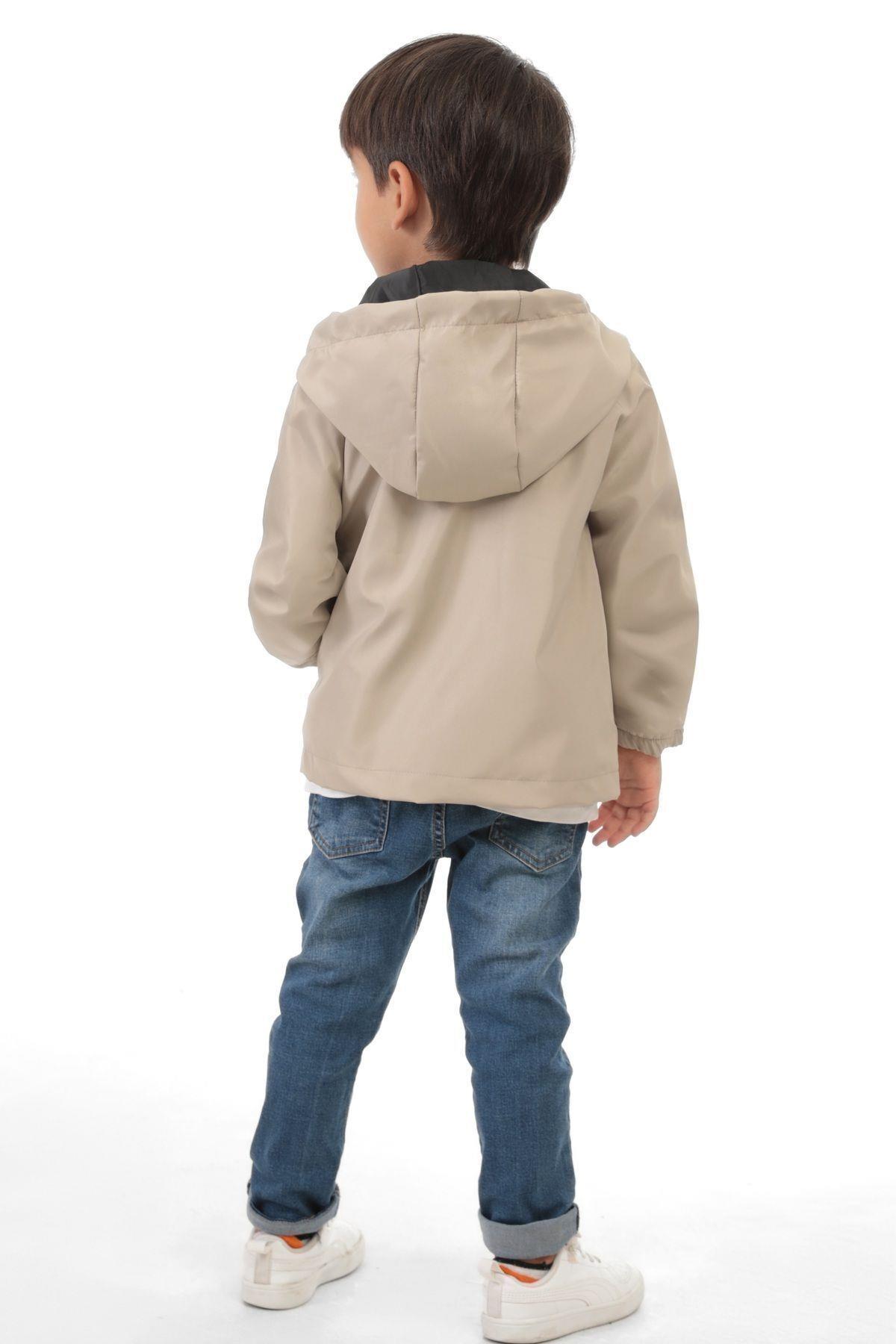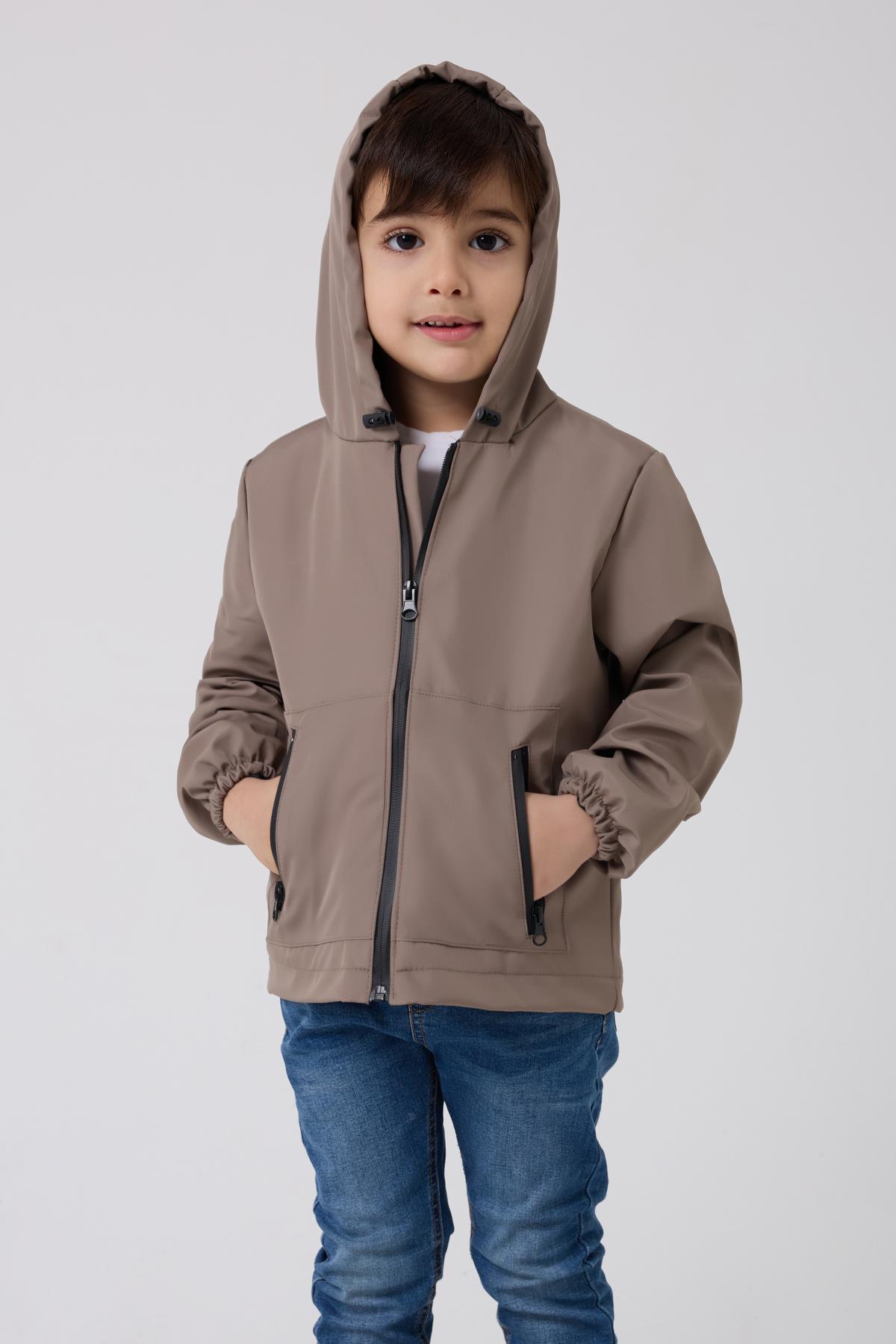 Erkek Çocuk Astarlı Su Ve Rüzgar Geçirmez Kapüşonlu Çift Fermuarlı Yağmurluk (Y-15-C Vizon)