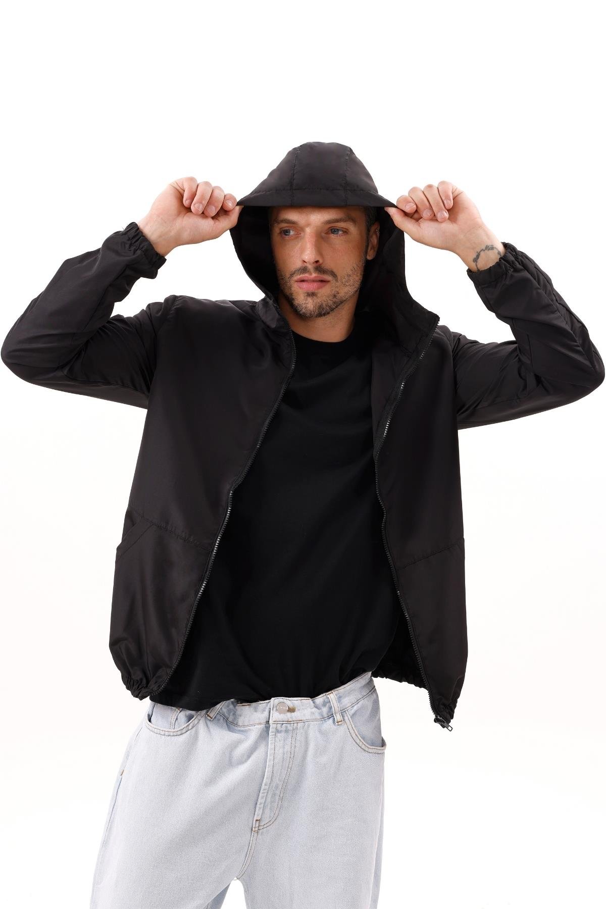 Erkek Kapüşonlu Su Ve Rüzgar Geçirmez Astarlı Oversize Yağmurluk (Y-35 Siyah)
