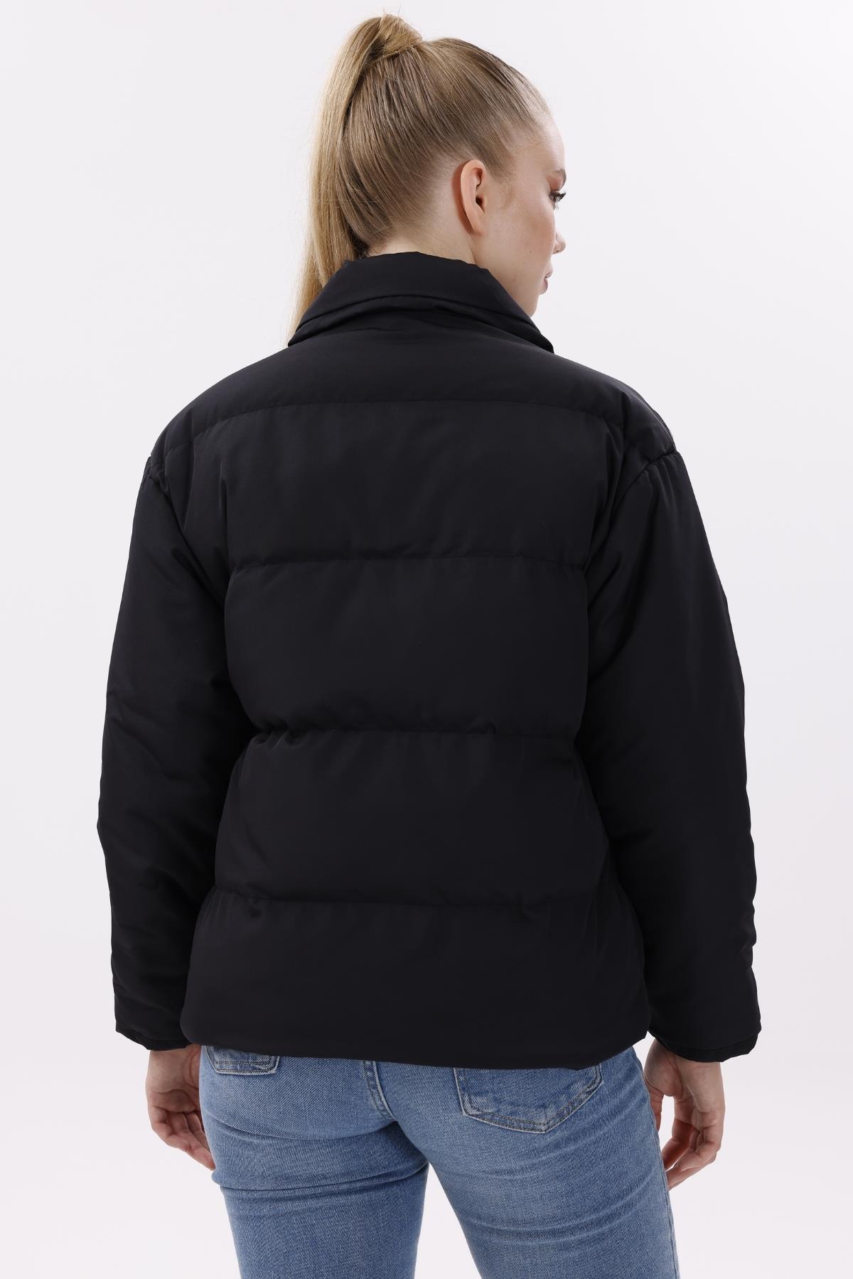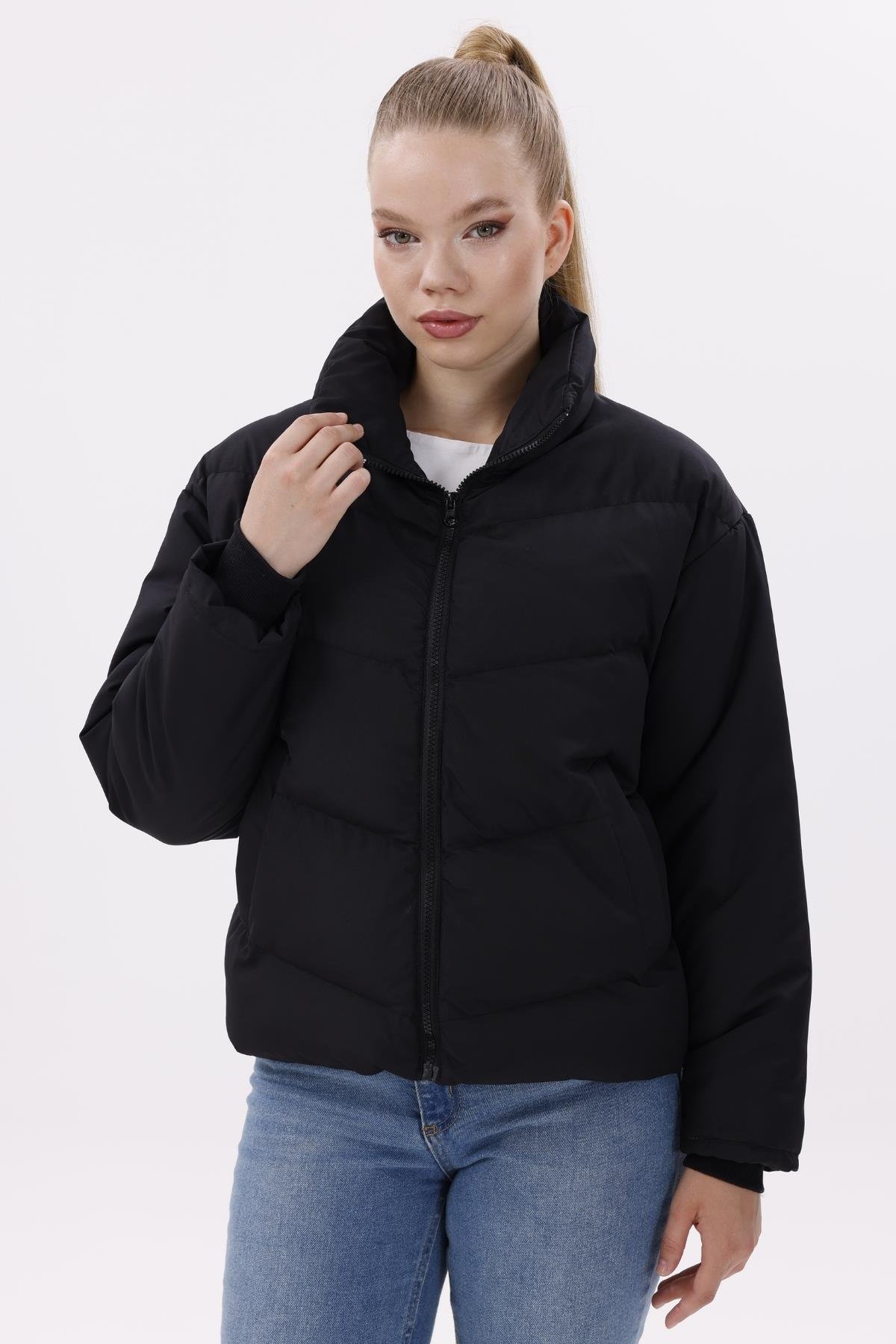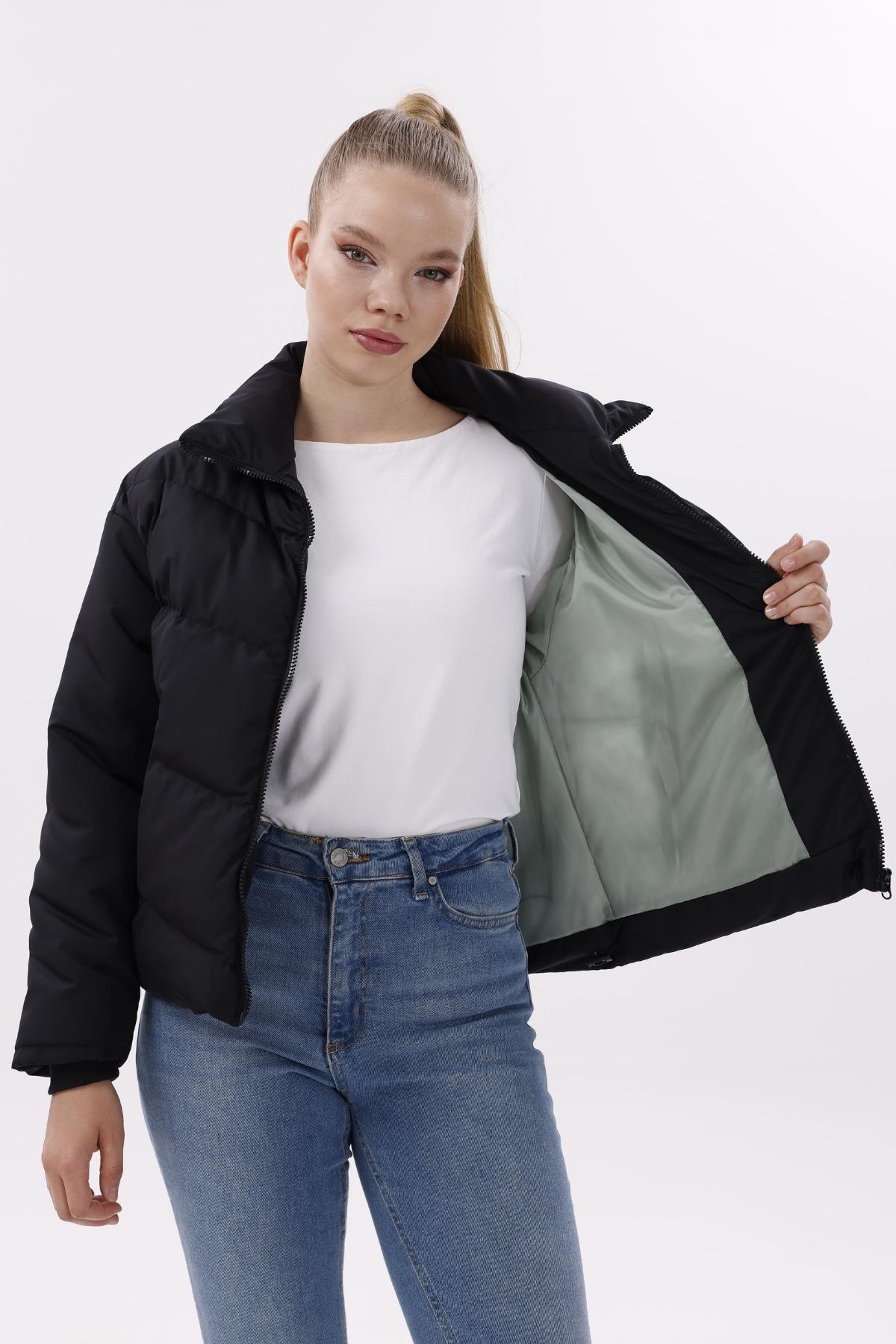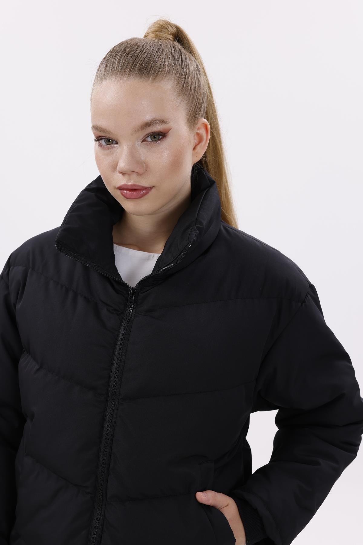 Kadın Dolgulu Puffer Mont - Yüksek Yaka, Suya dayanıklı (BM-50-SİYAH)