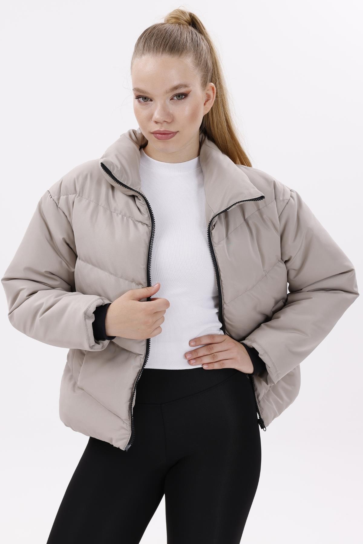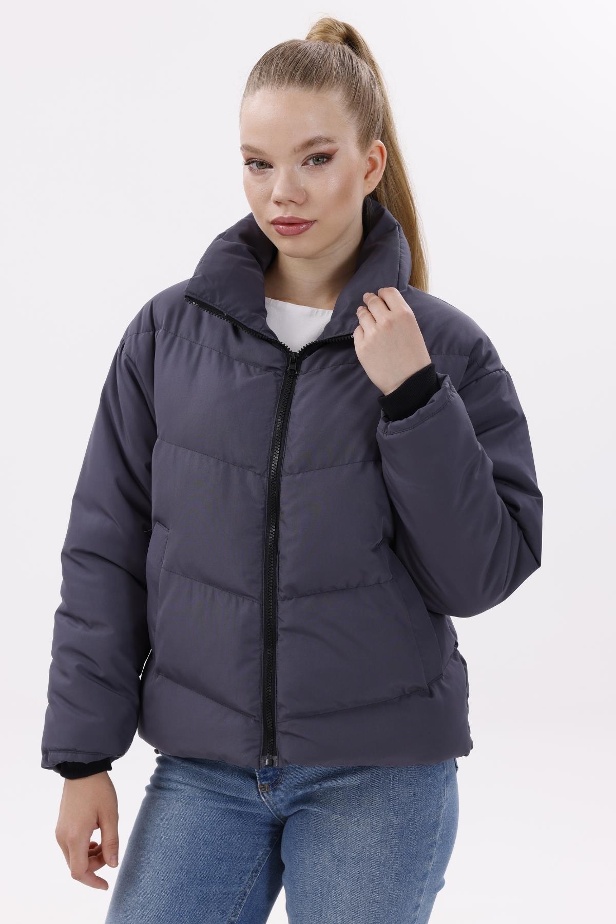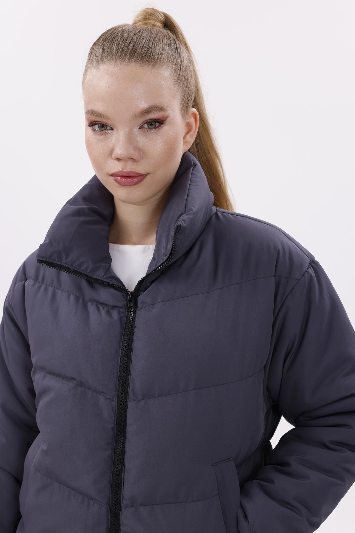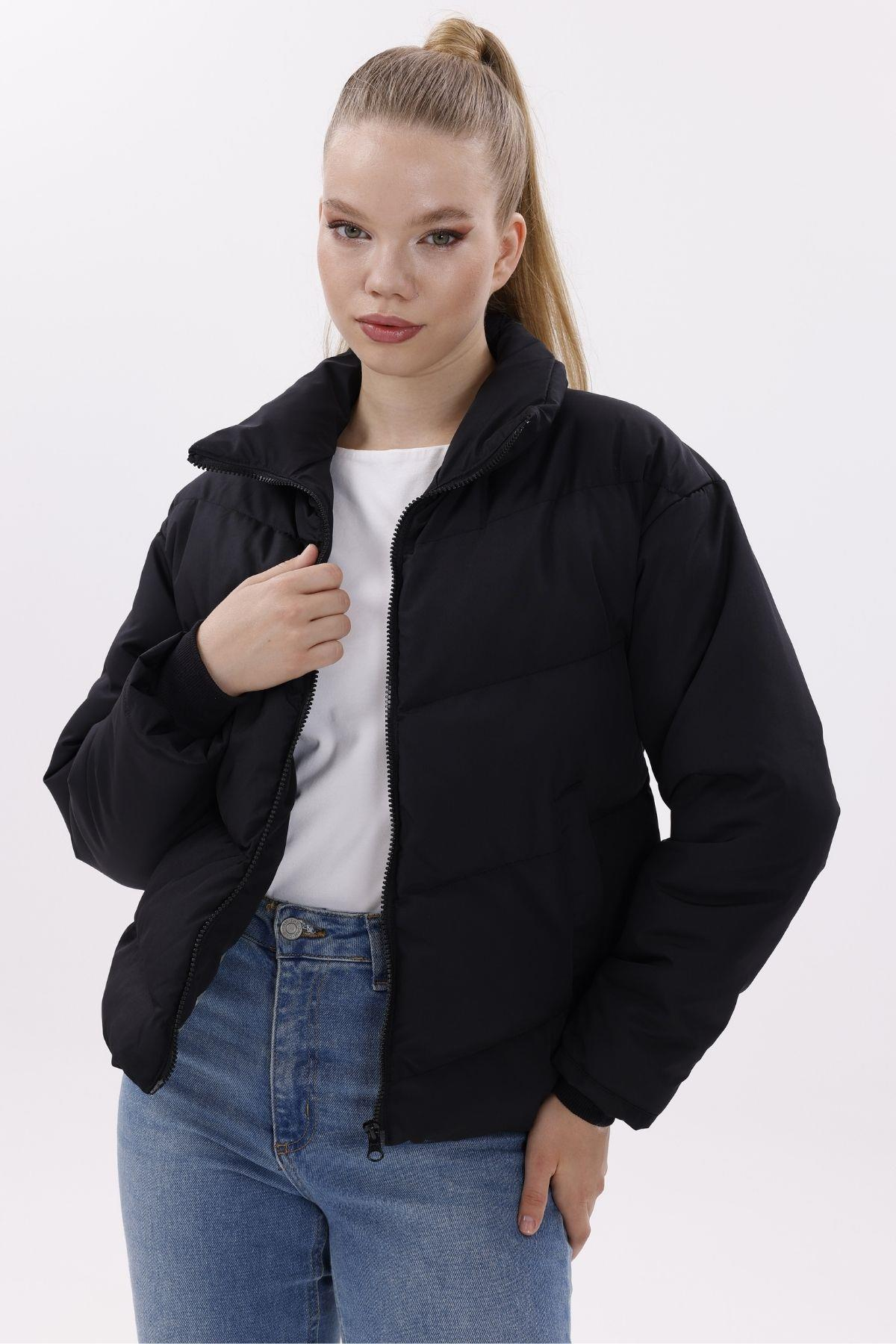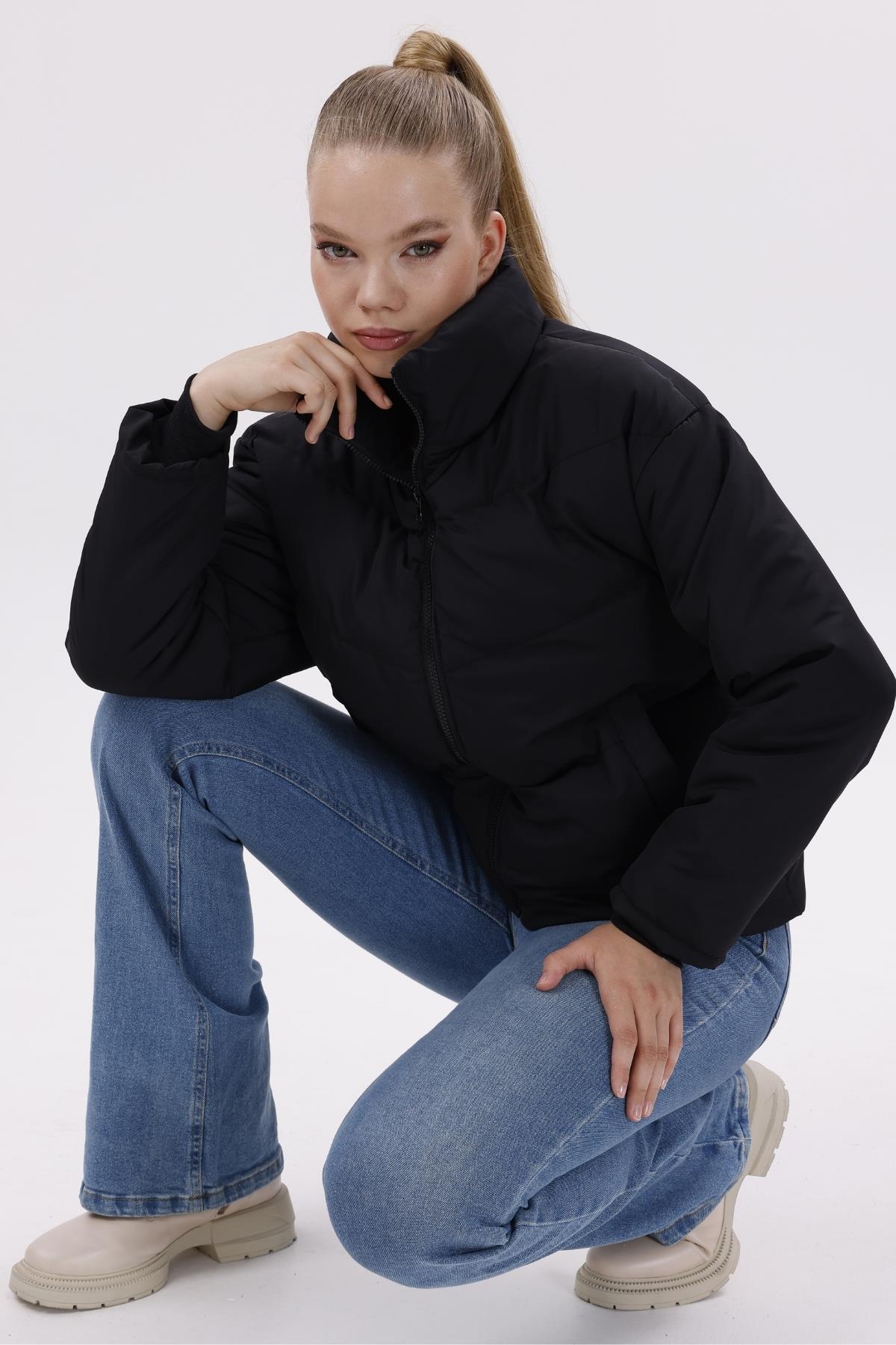 Kadın Dolgulu Puffer Mont - Yüksek Yaka, Suya dayanıklı (BM-50-SİYAH)