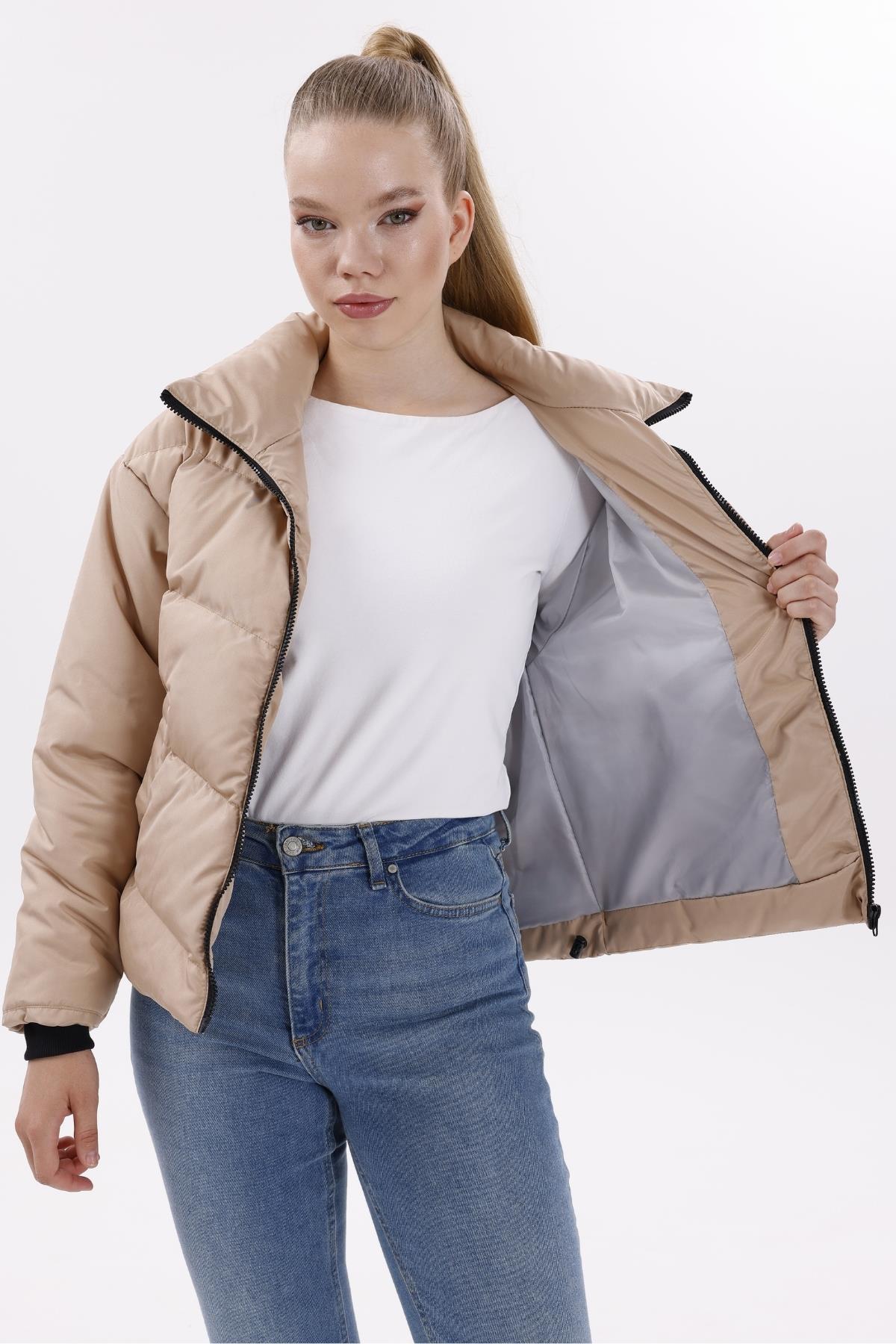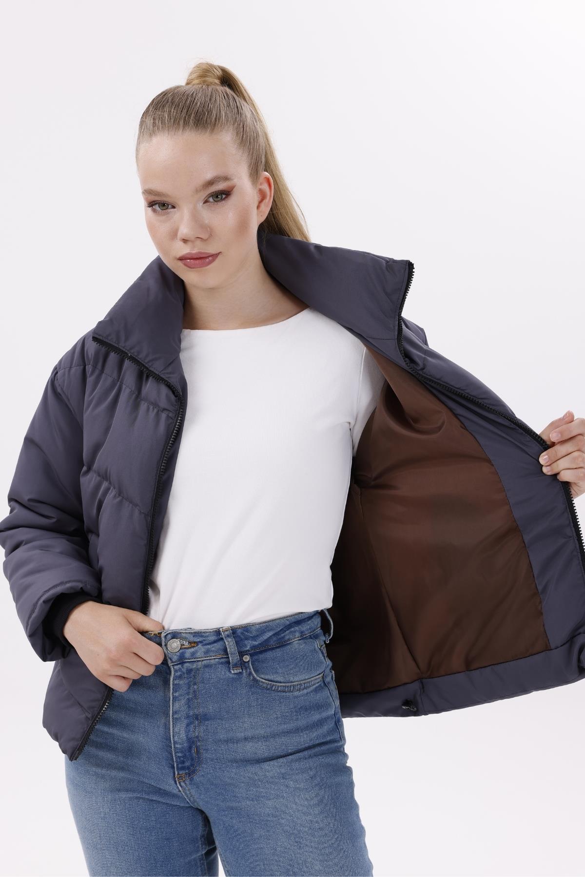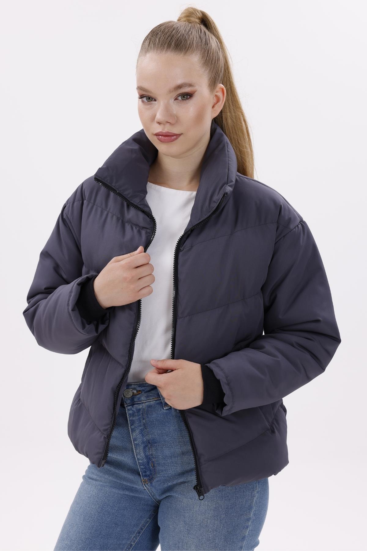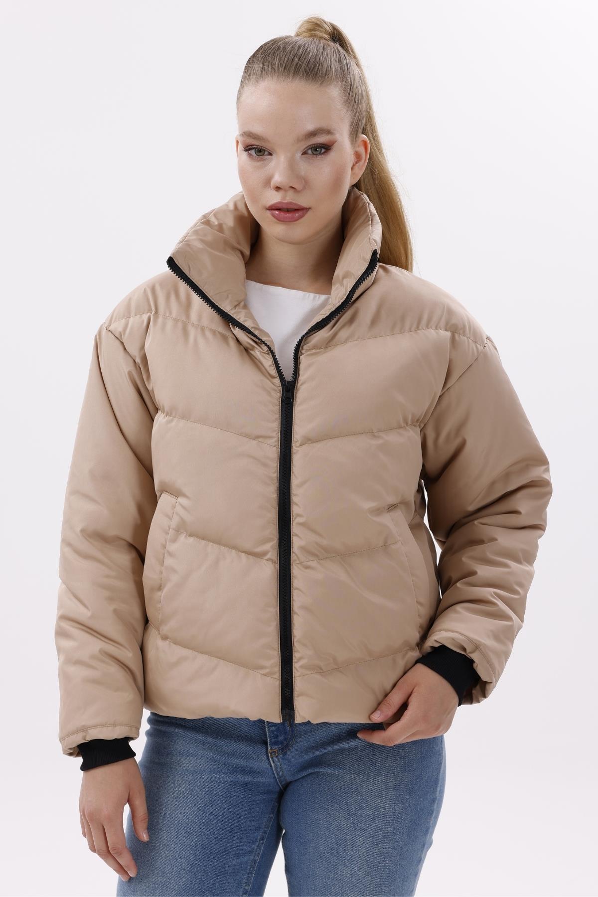 Kadın Dolgulu Puffer Mont - Yüksek Yaka, Suya dayanıklı (BM-50-SİYAH)