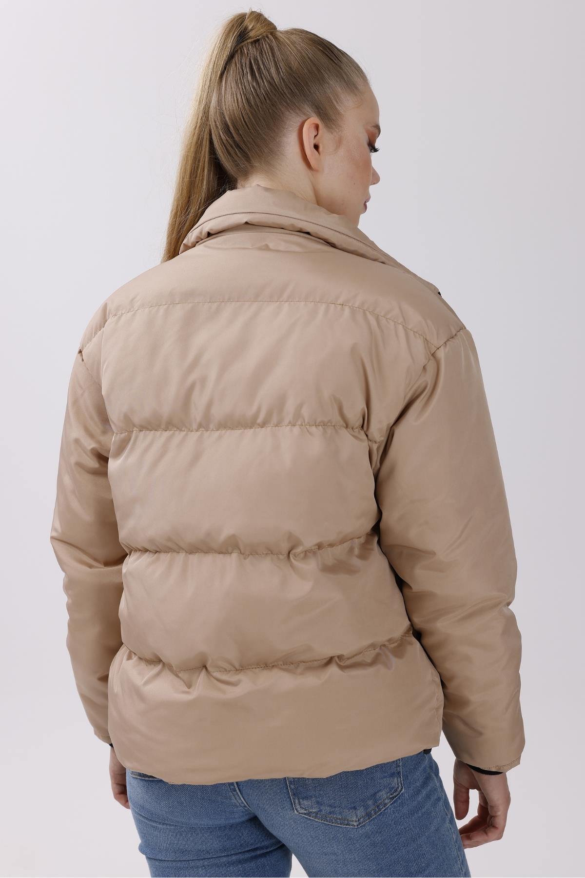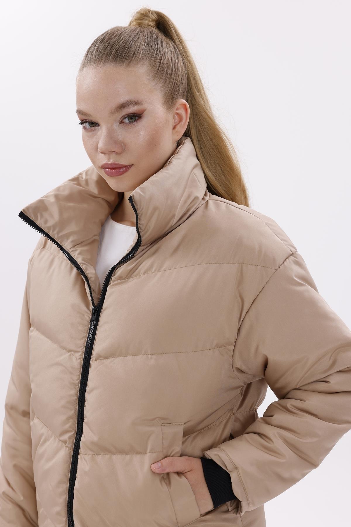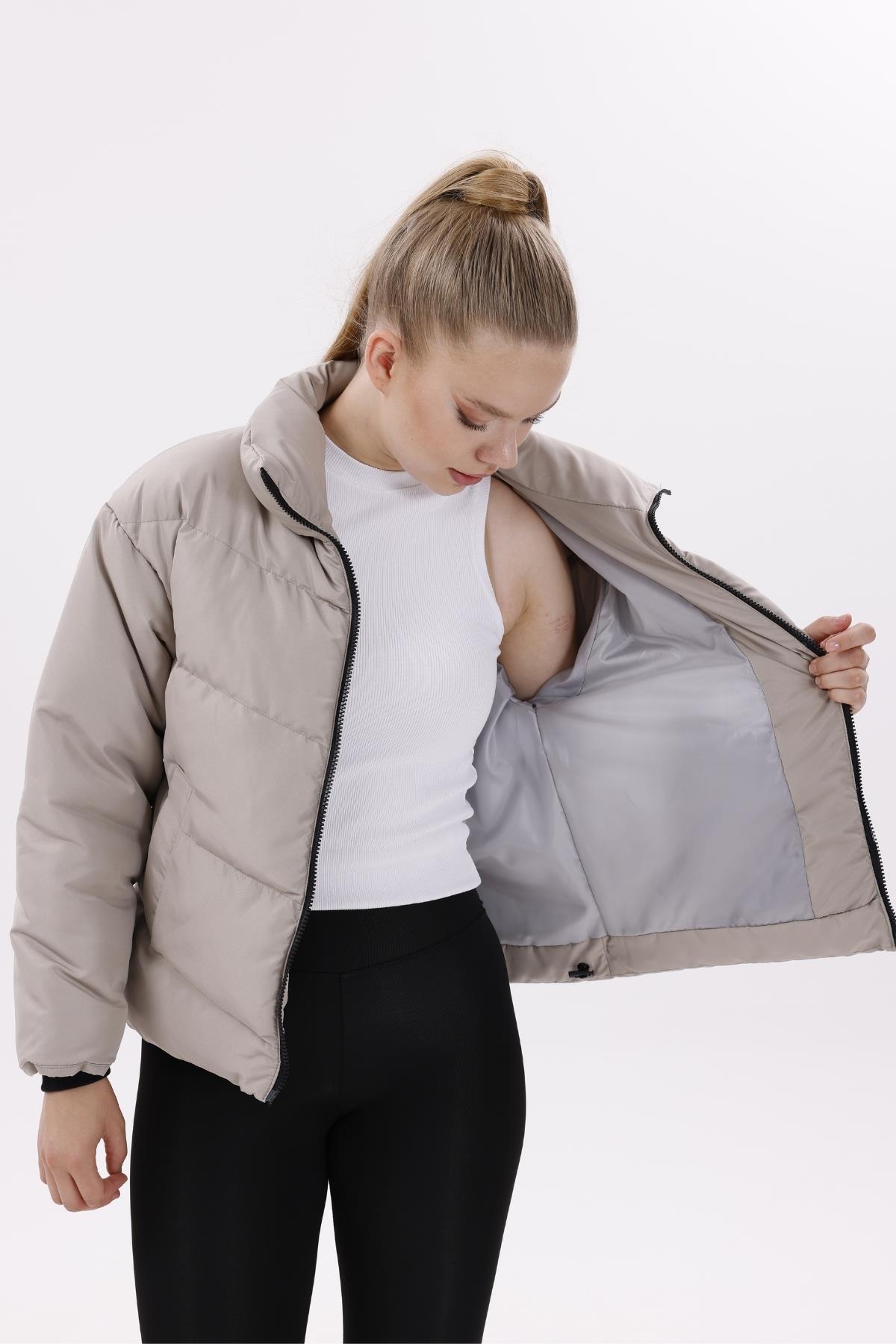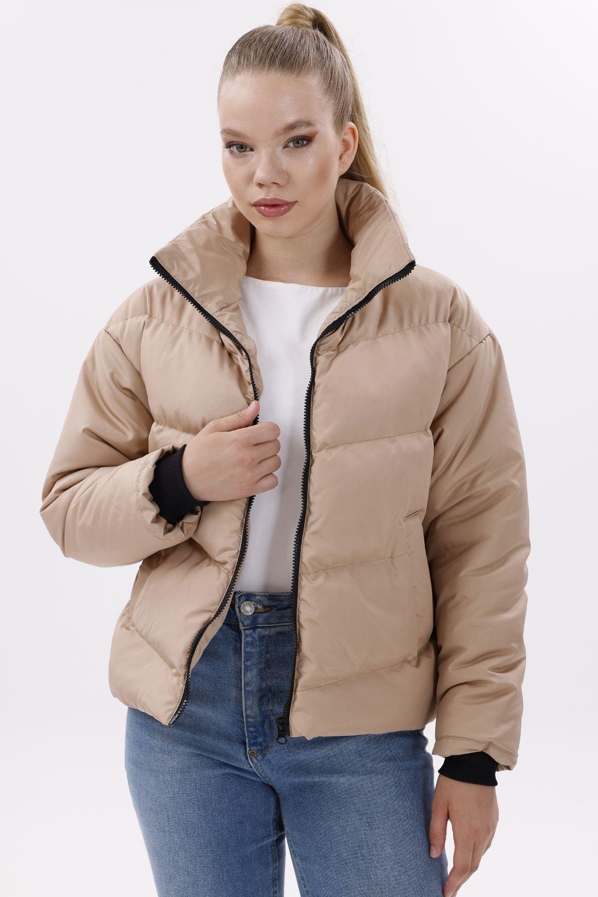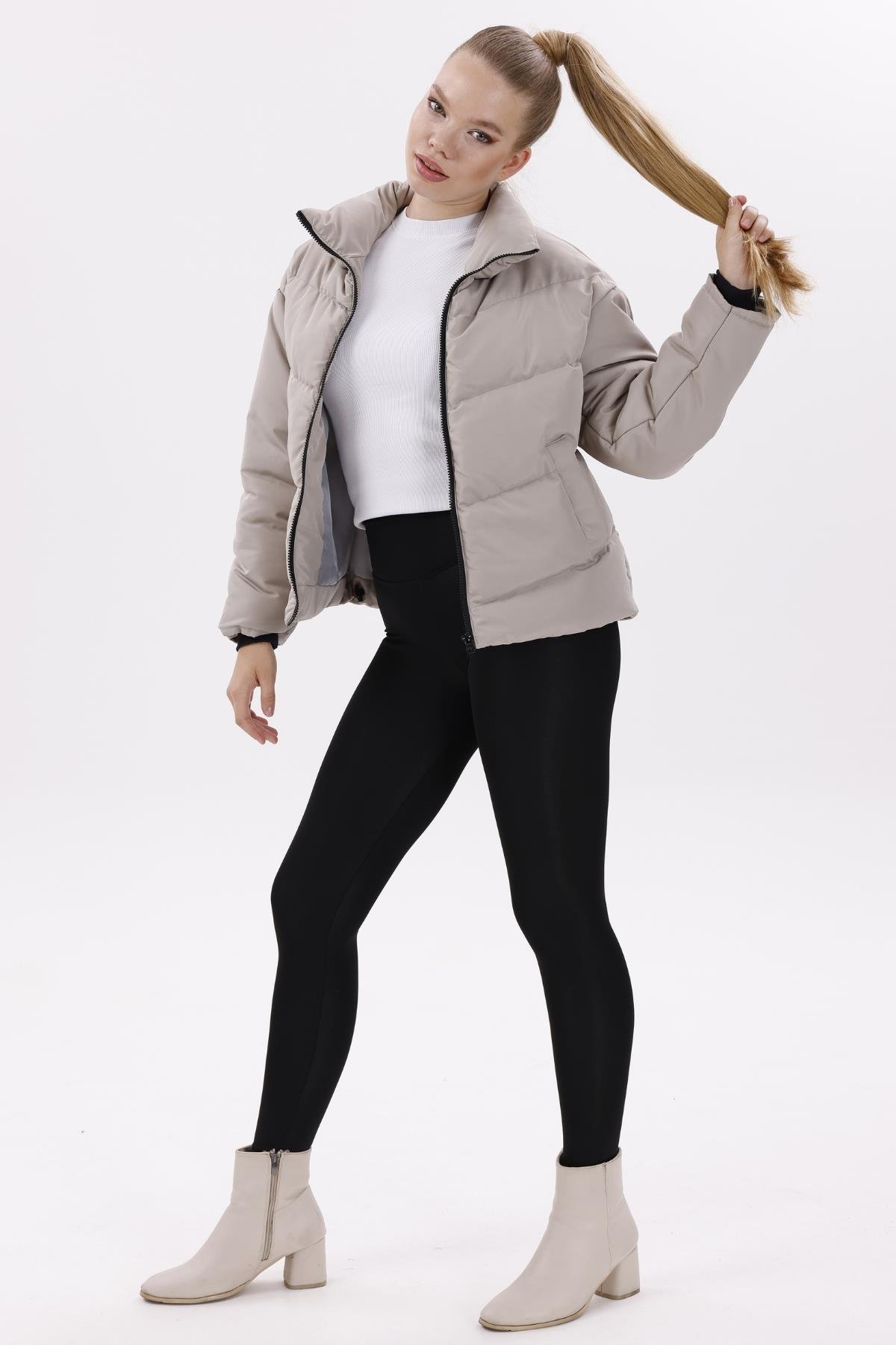 Kadın Dolgulu Puffer Mont - Yüksek Yaka, Suya dayanıklı (BM-50-SİYAH)