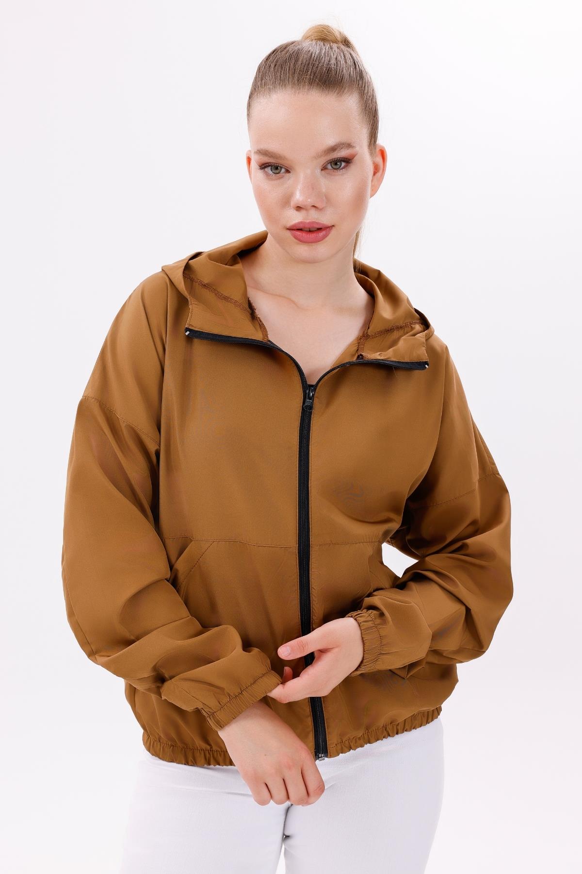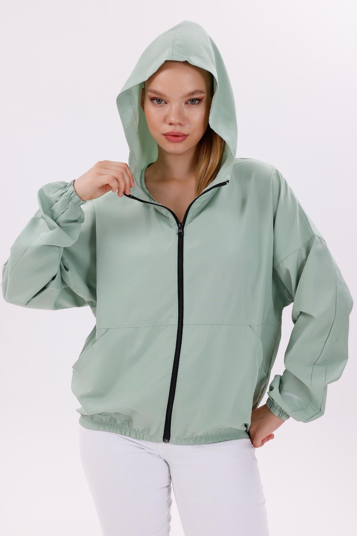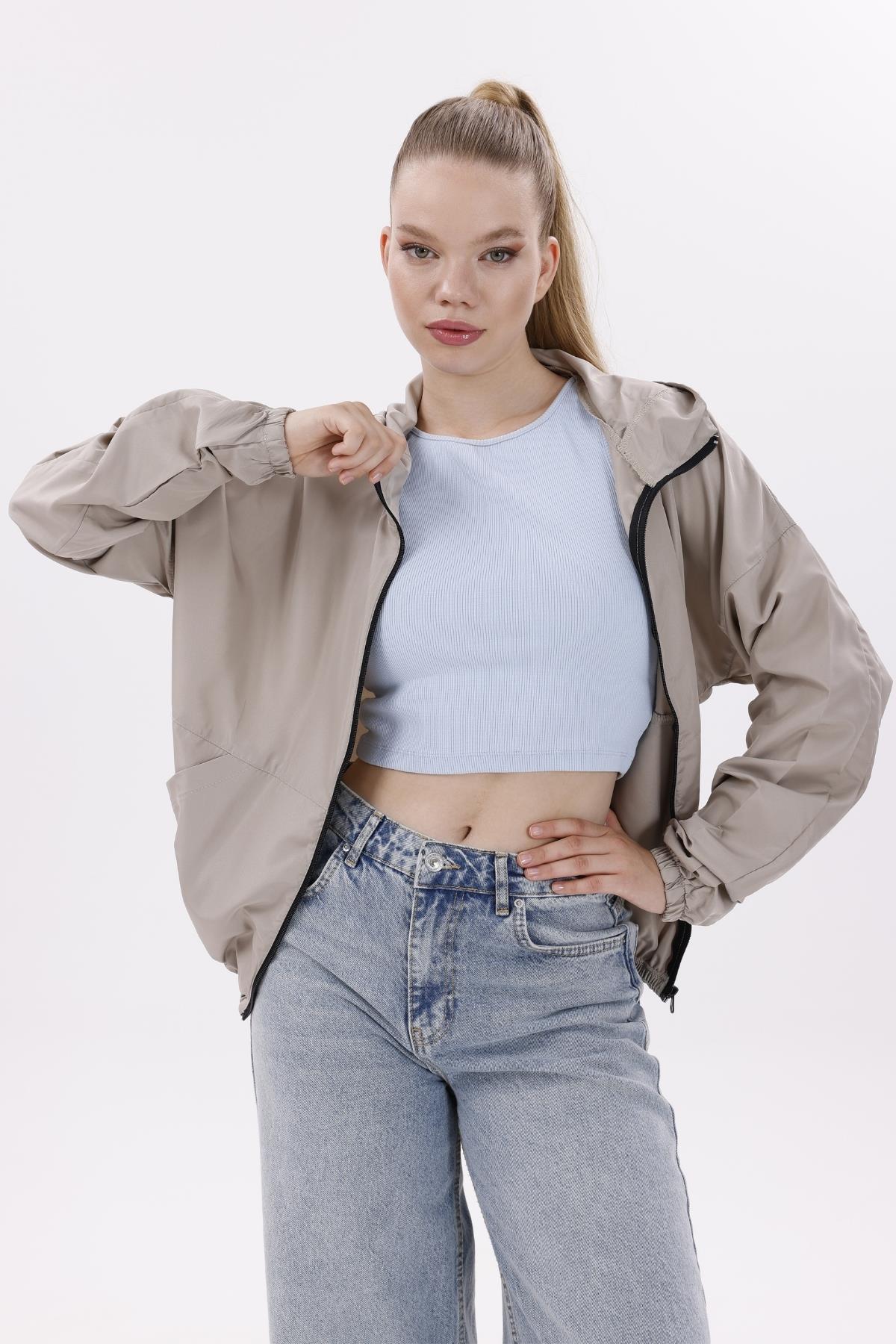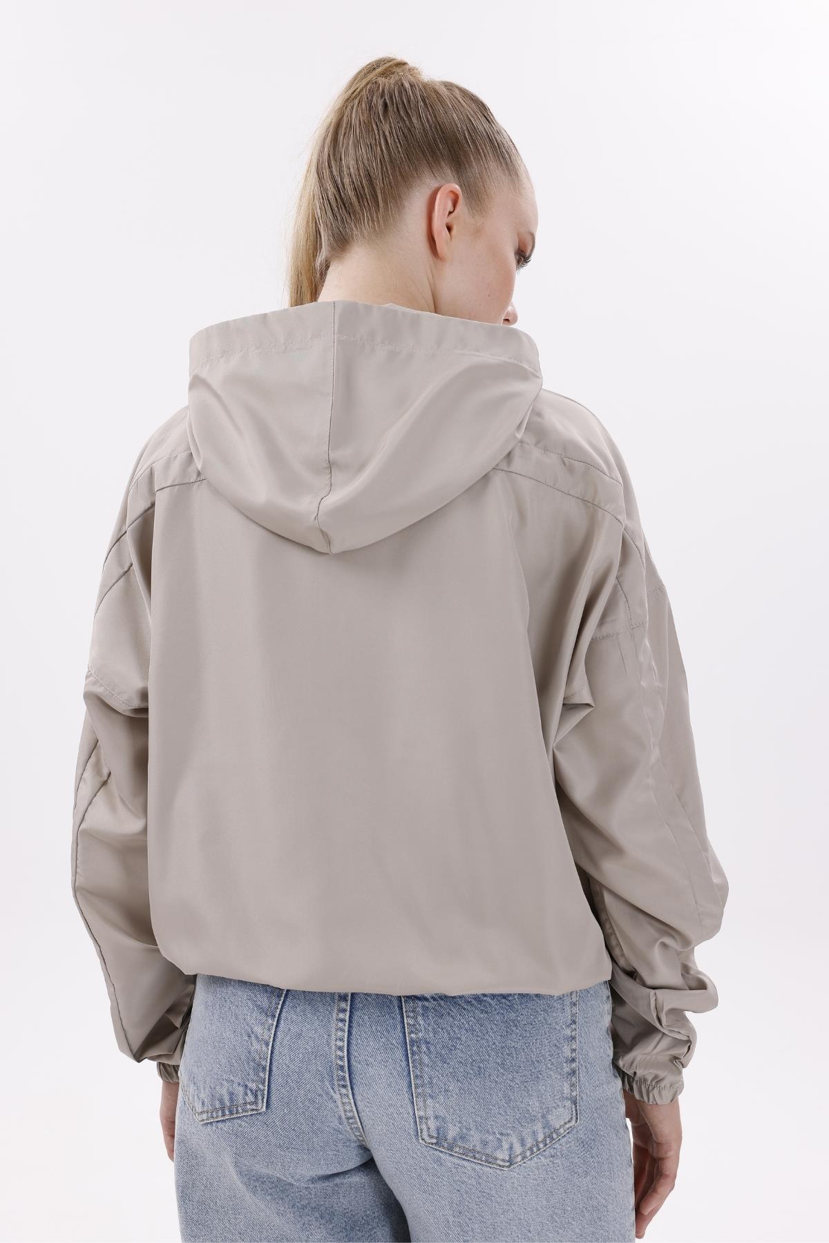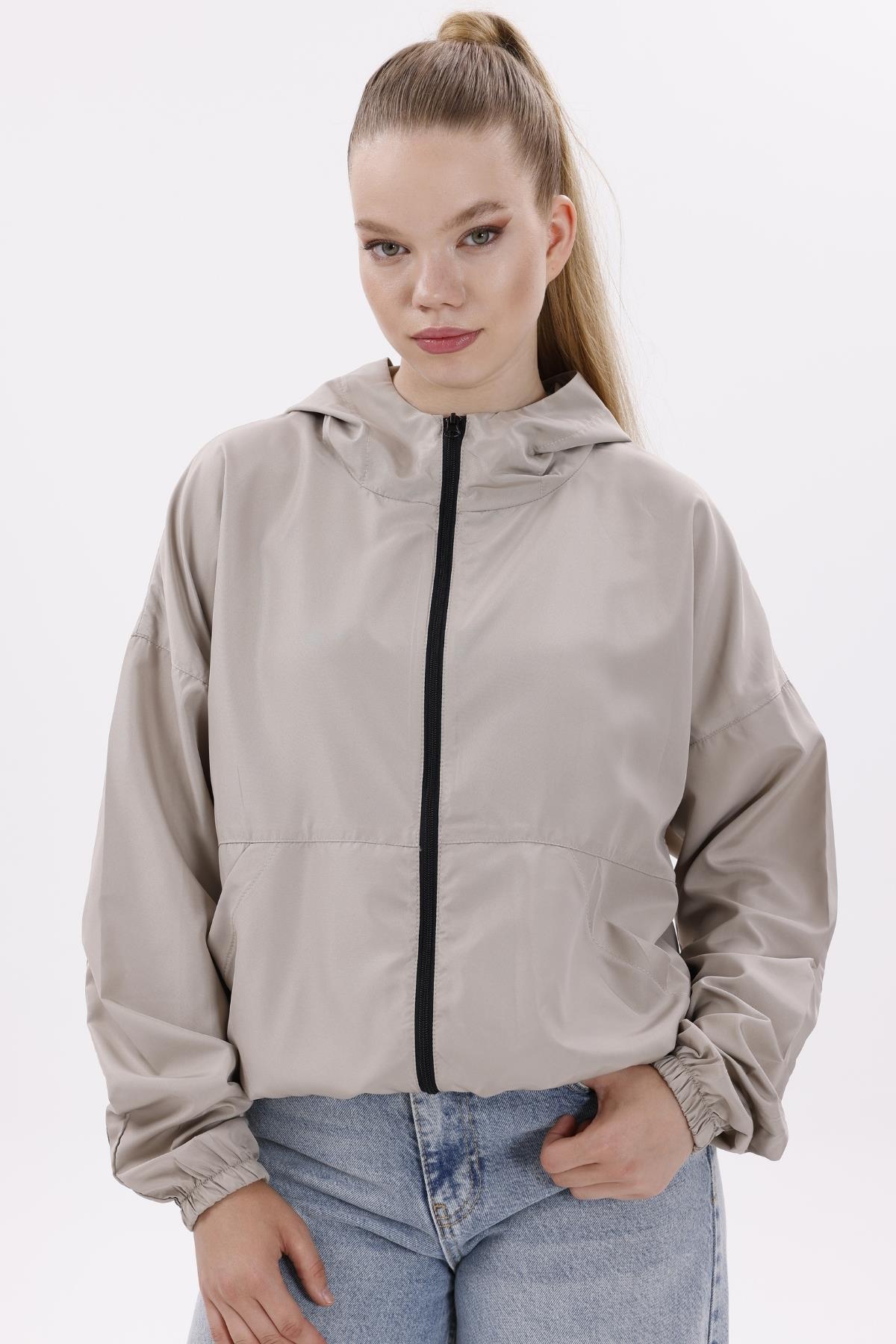 Kadın Kapüşonlu Su Ve Rüzgar Geçirmez Oversize Yağmurluk - Rüzgarlık (Y-20 Taş)
