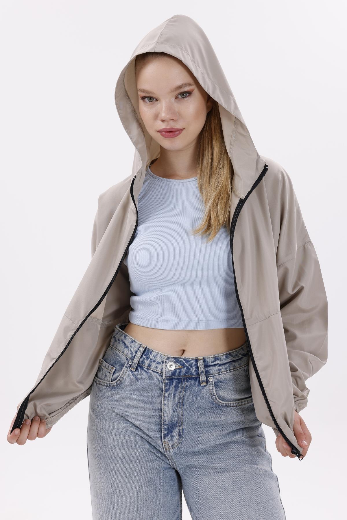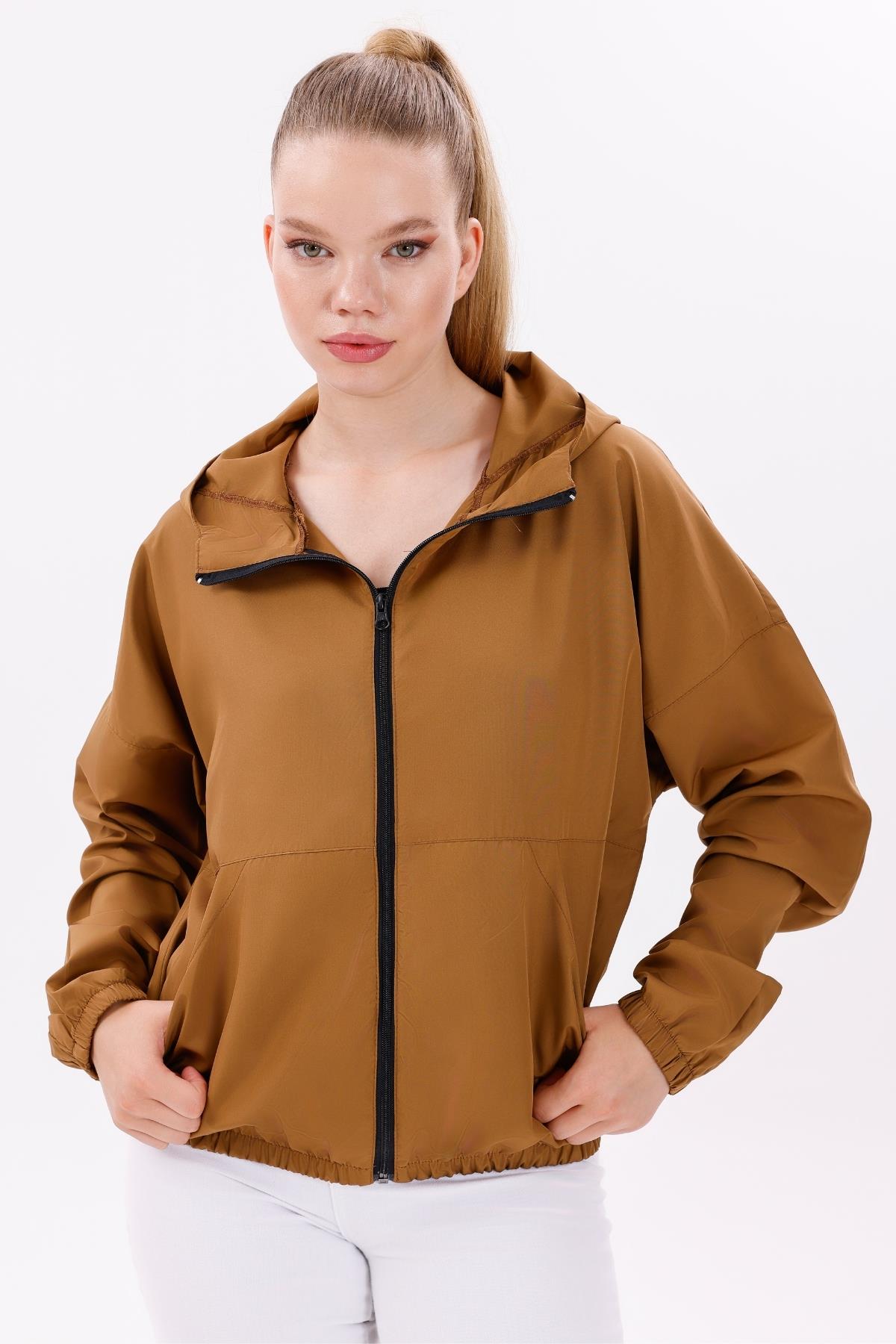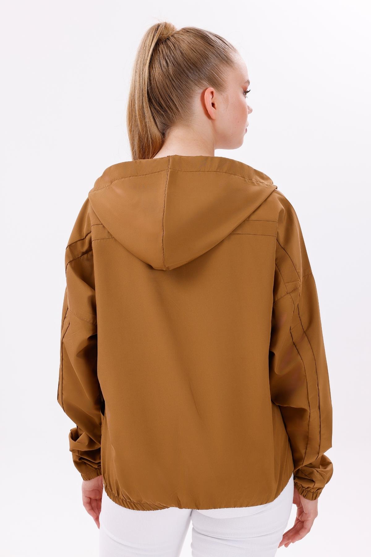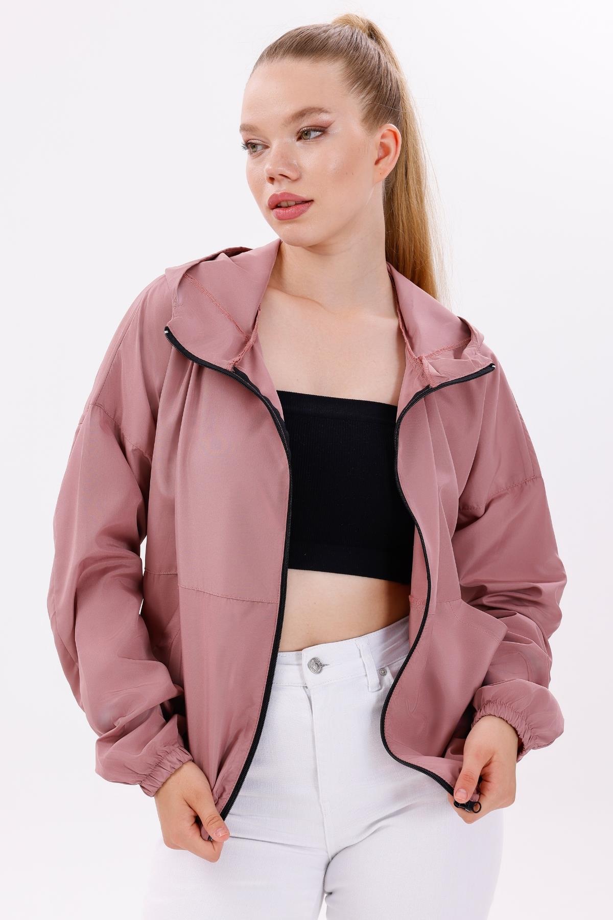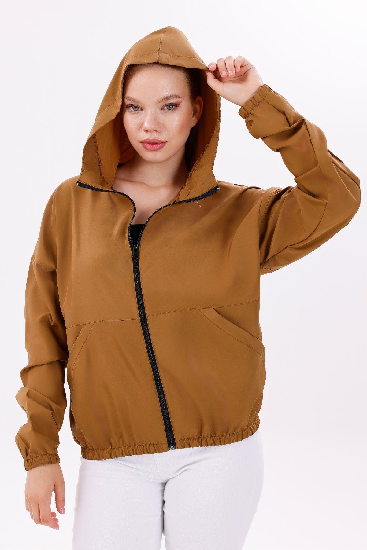 Kadın Kapüşonlu Su Ve Rüzgar Geçirmez Oversize Yağmurluk - Rüzgarlık (Y-20 Taş)