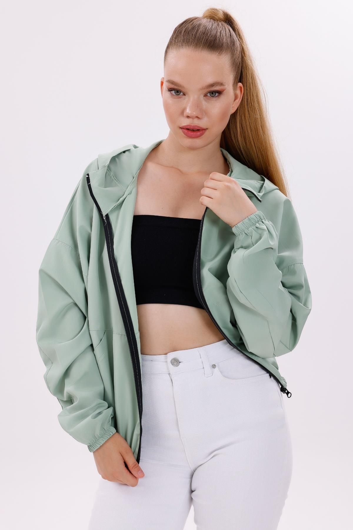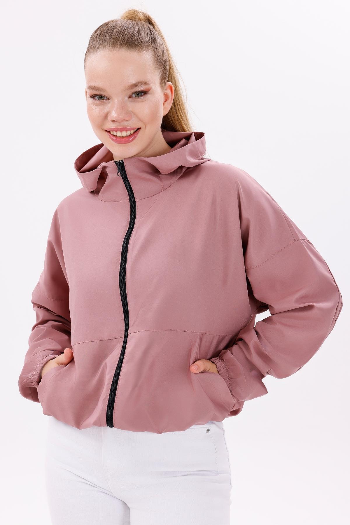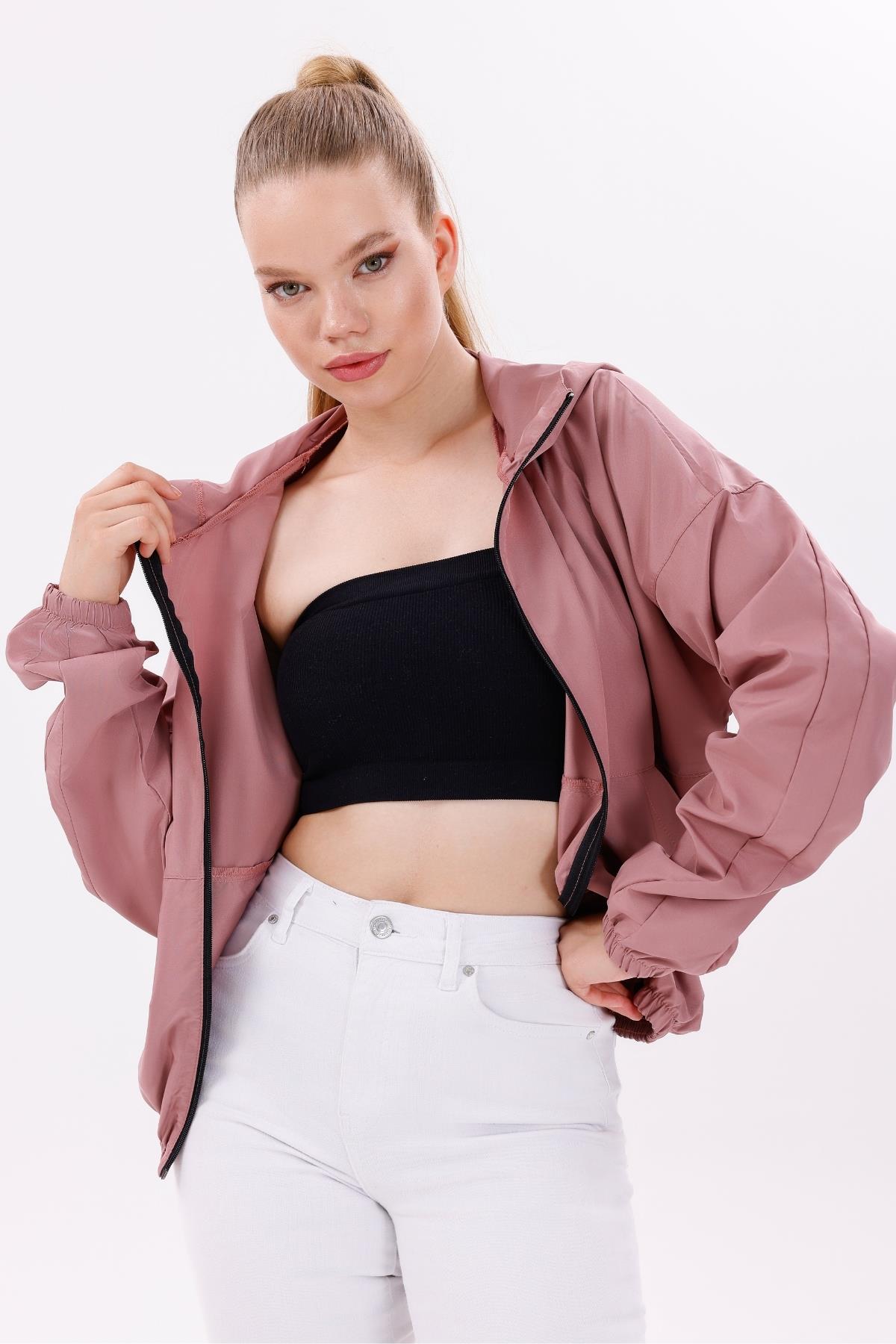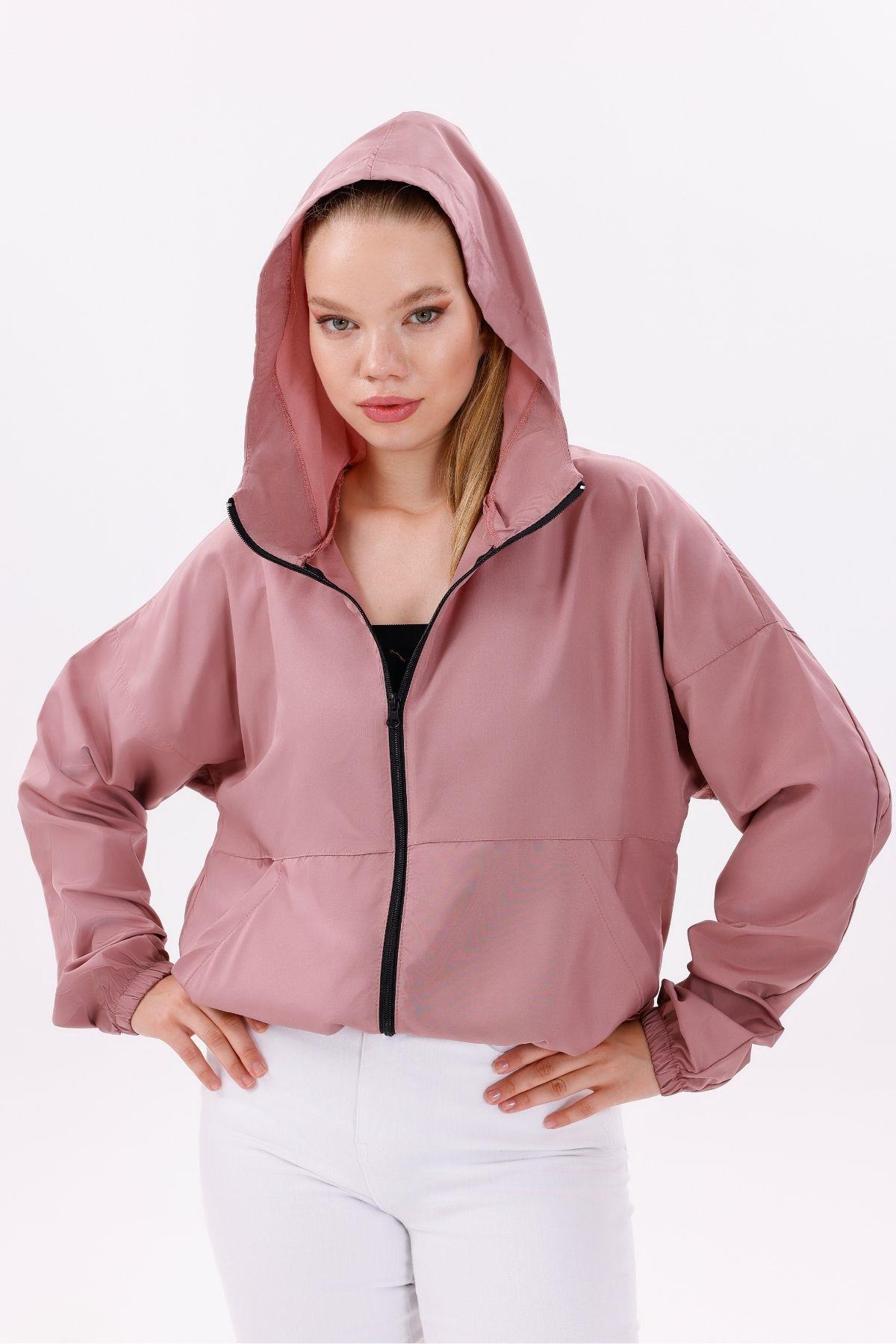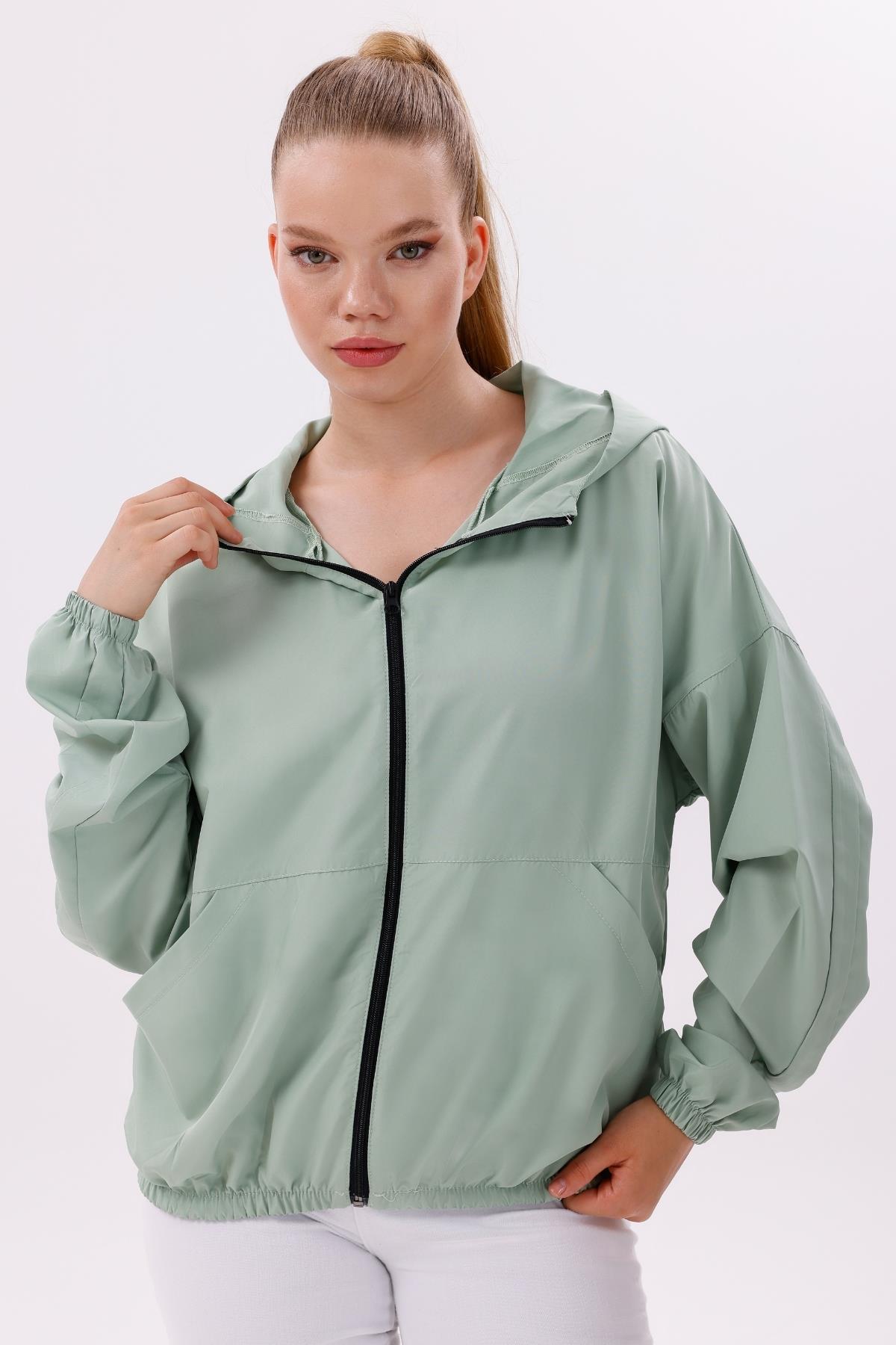 Kadın Kapüşonlu Su Ve Rüzgar Geçirmez Oversize Yağmurluk - Rüzgarlık (Y-20 Taş)