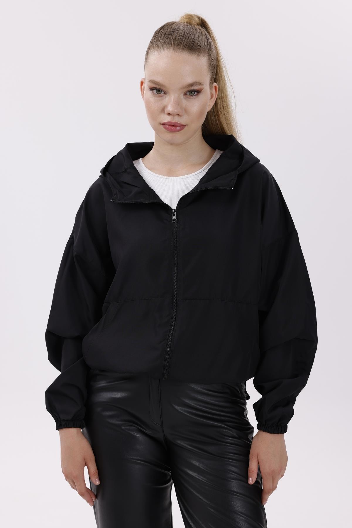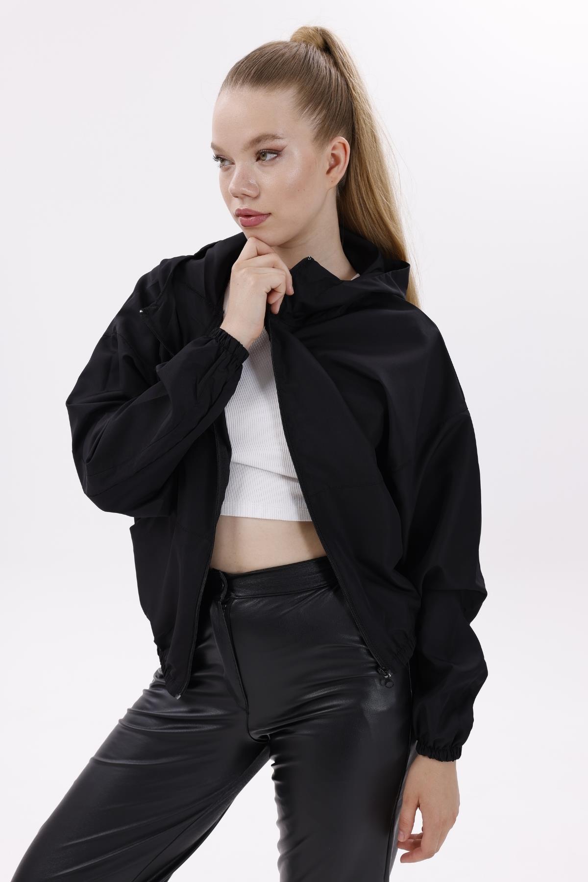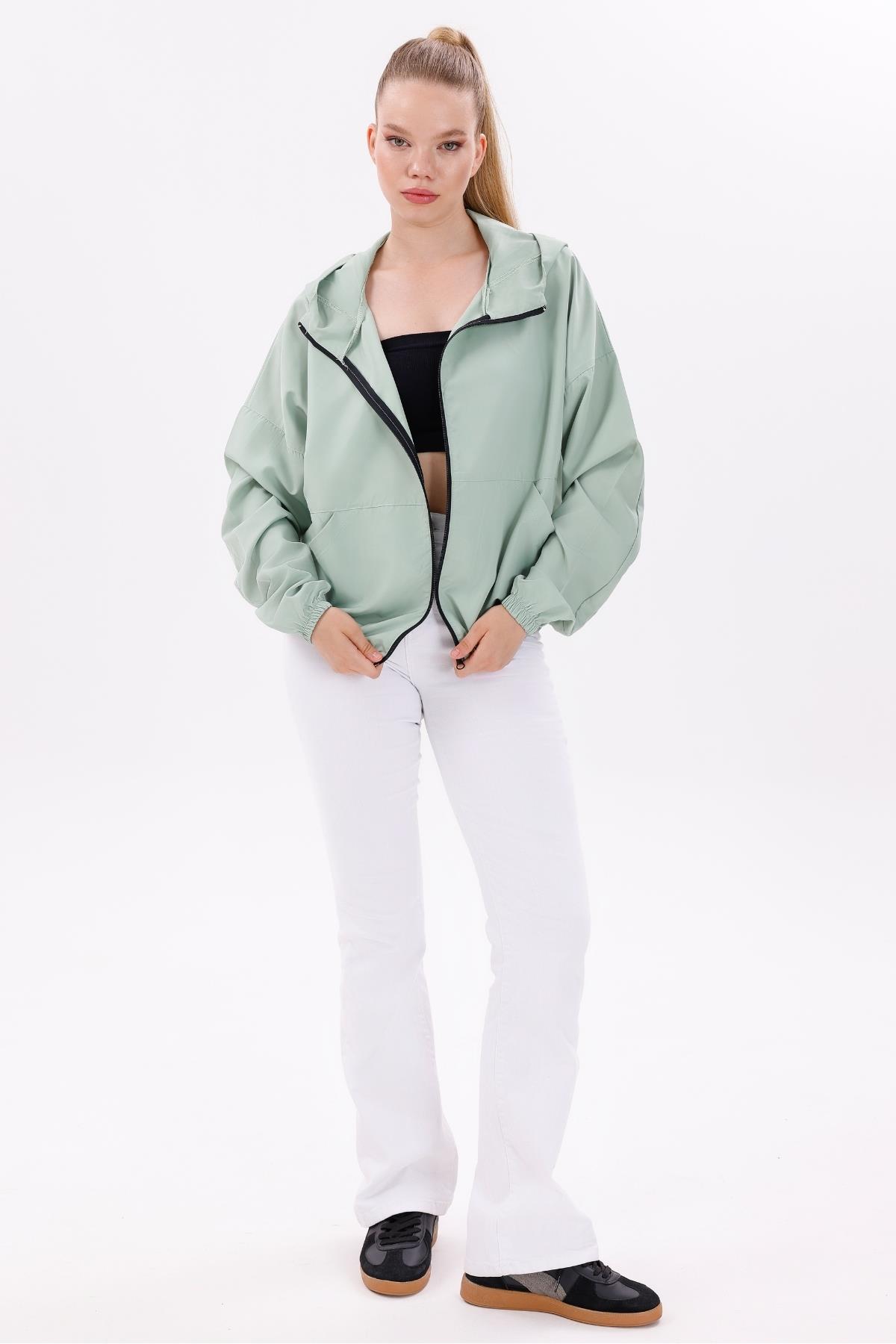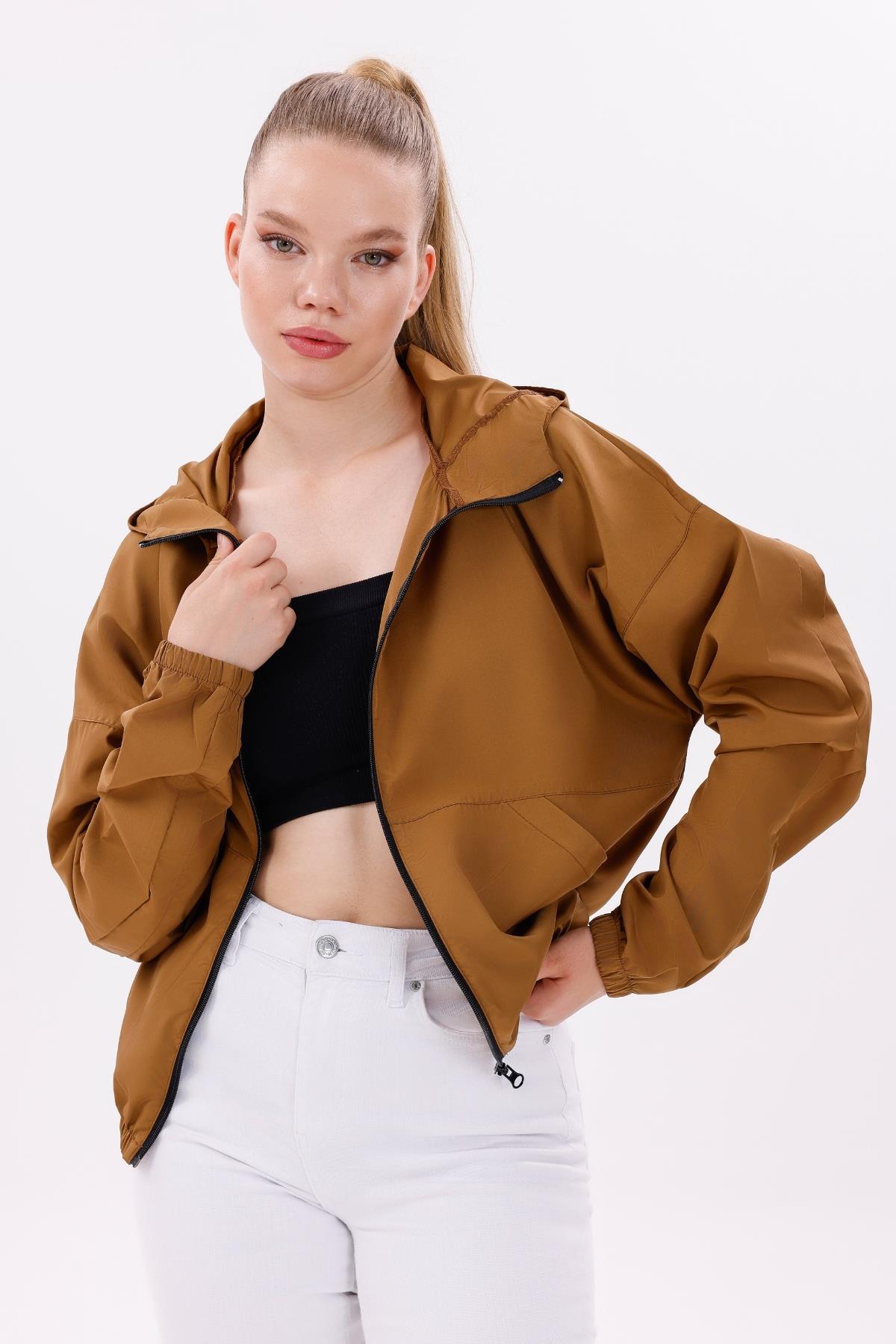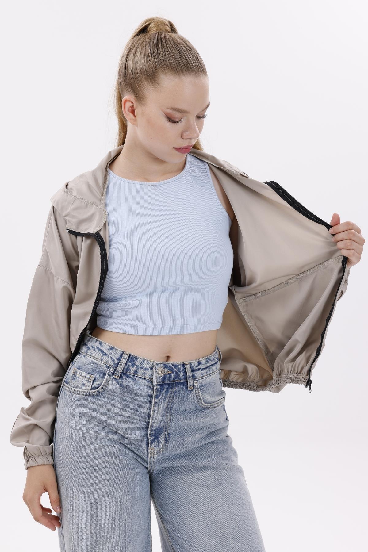 Kadın Kapüşonlu Su Ve Rüzgar Geçirmez Oversize Yağmurluk - Rüzgarlık (Y-20 Taş)