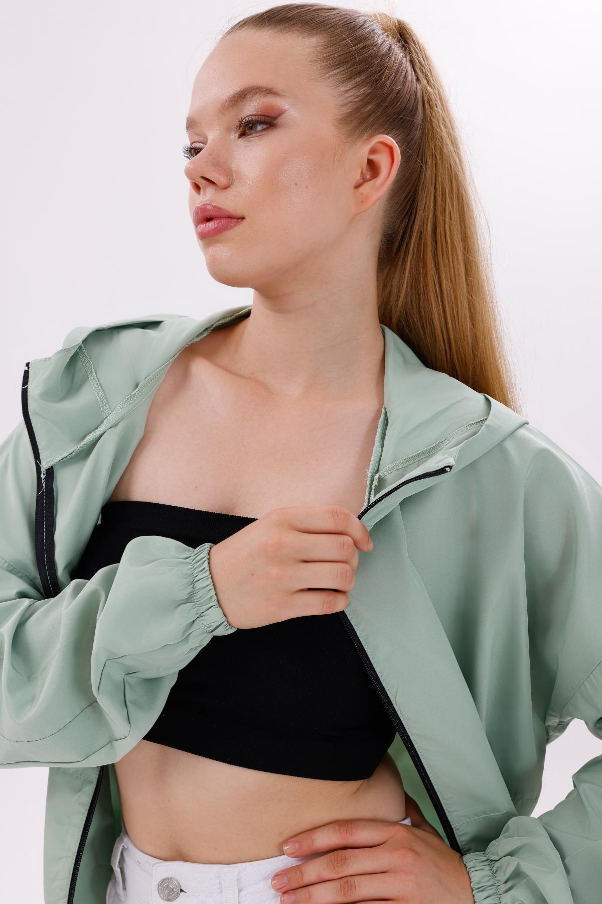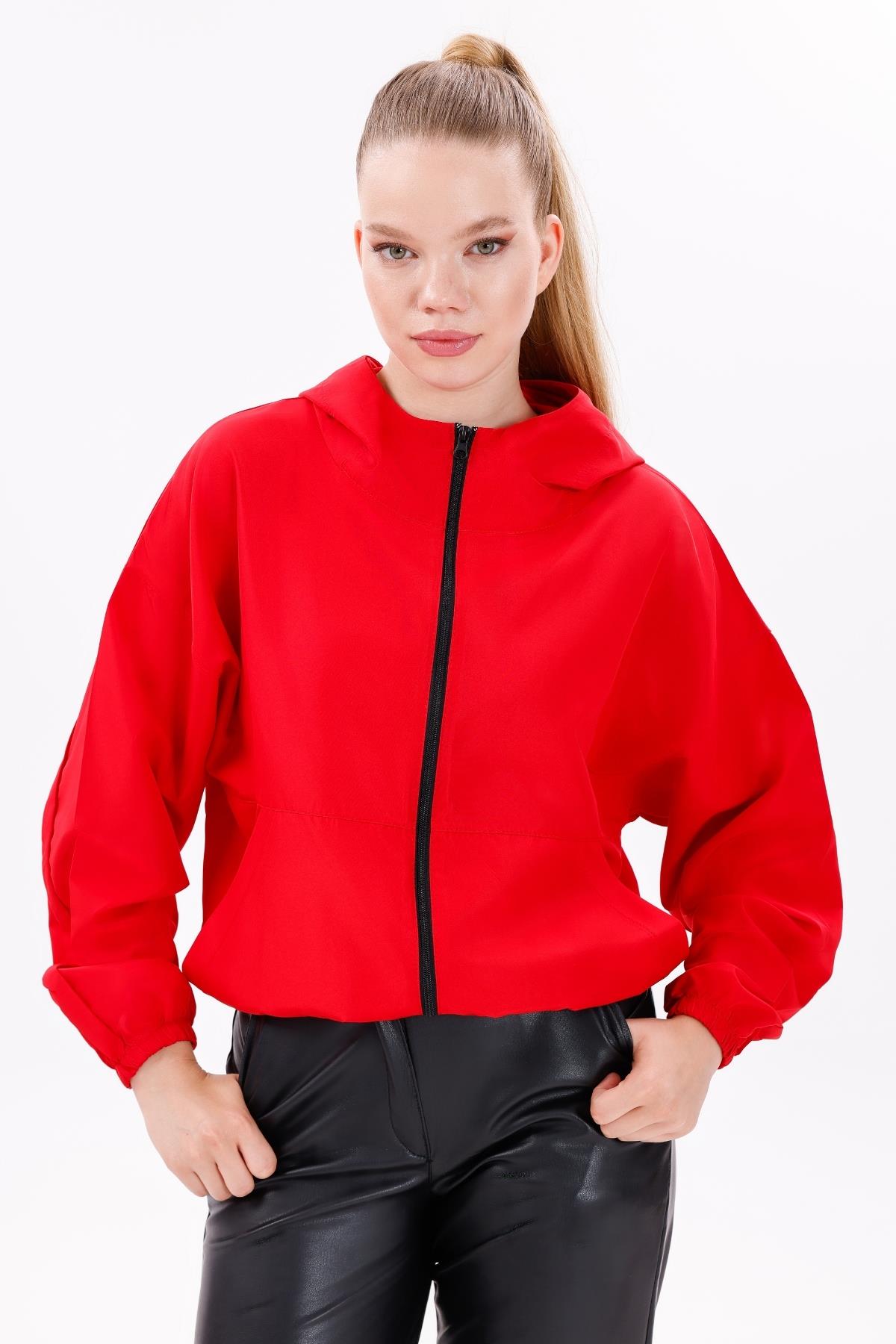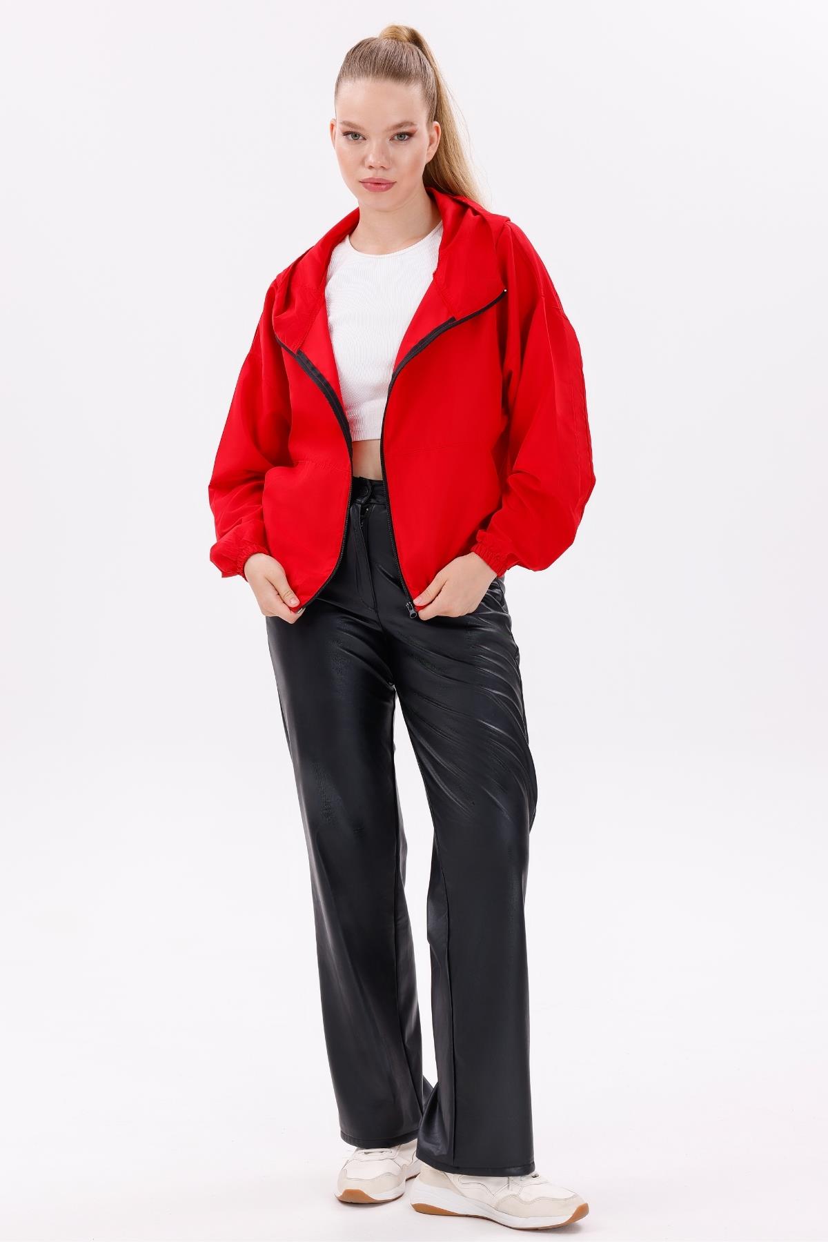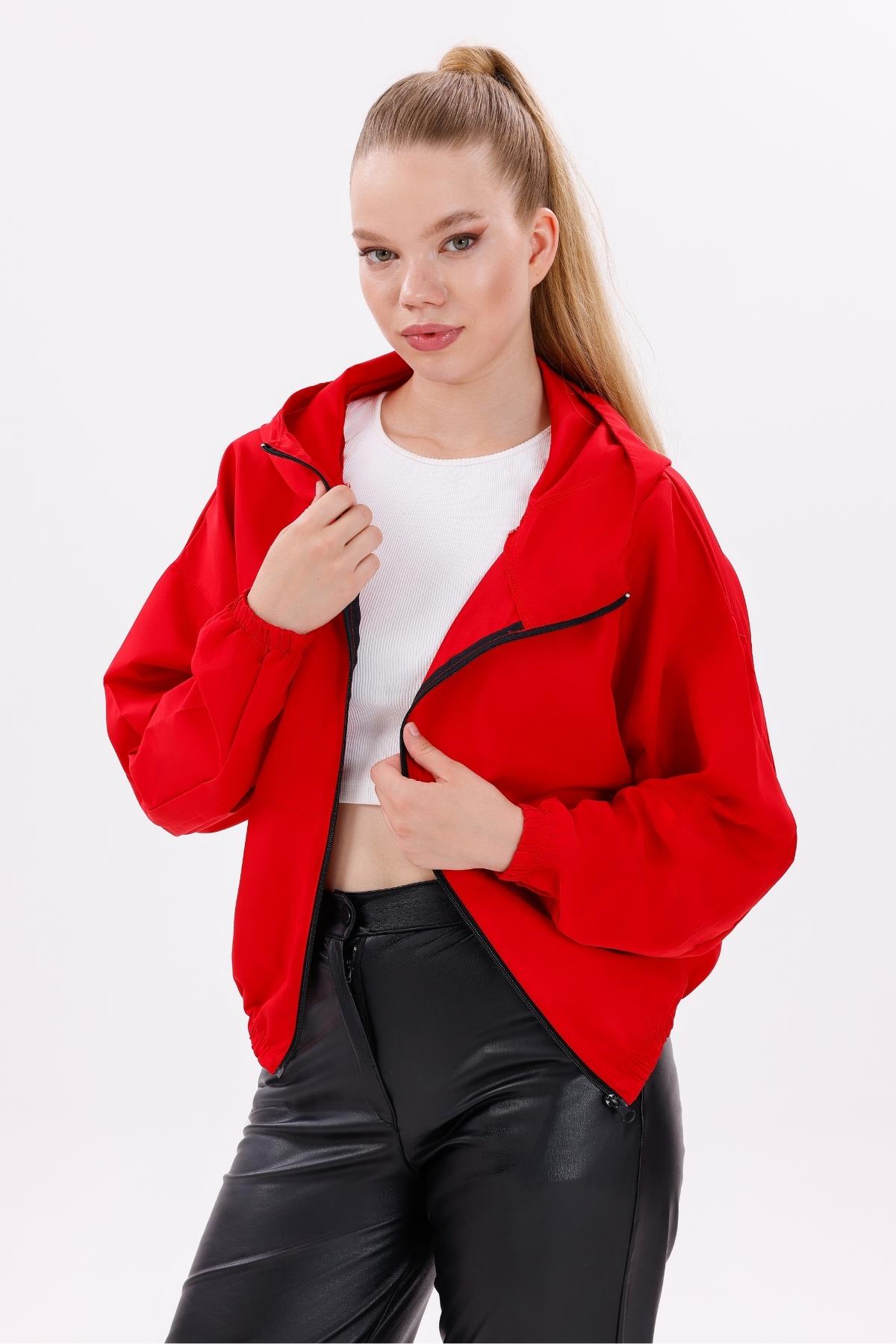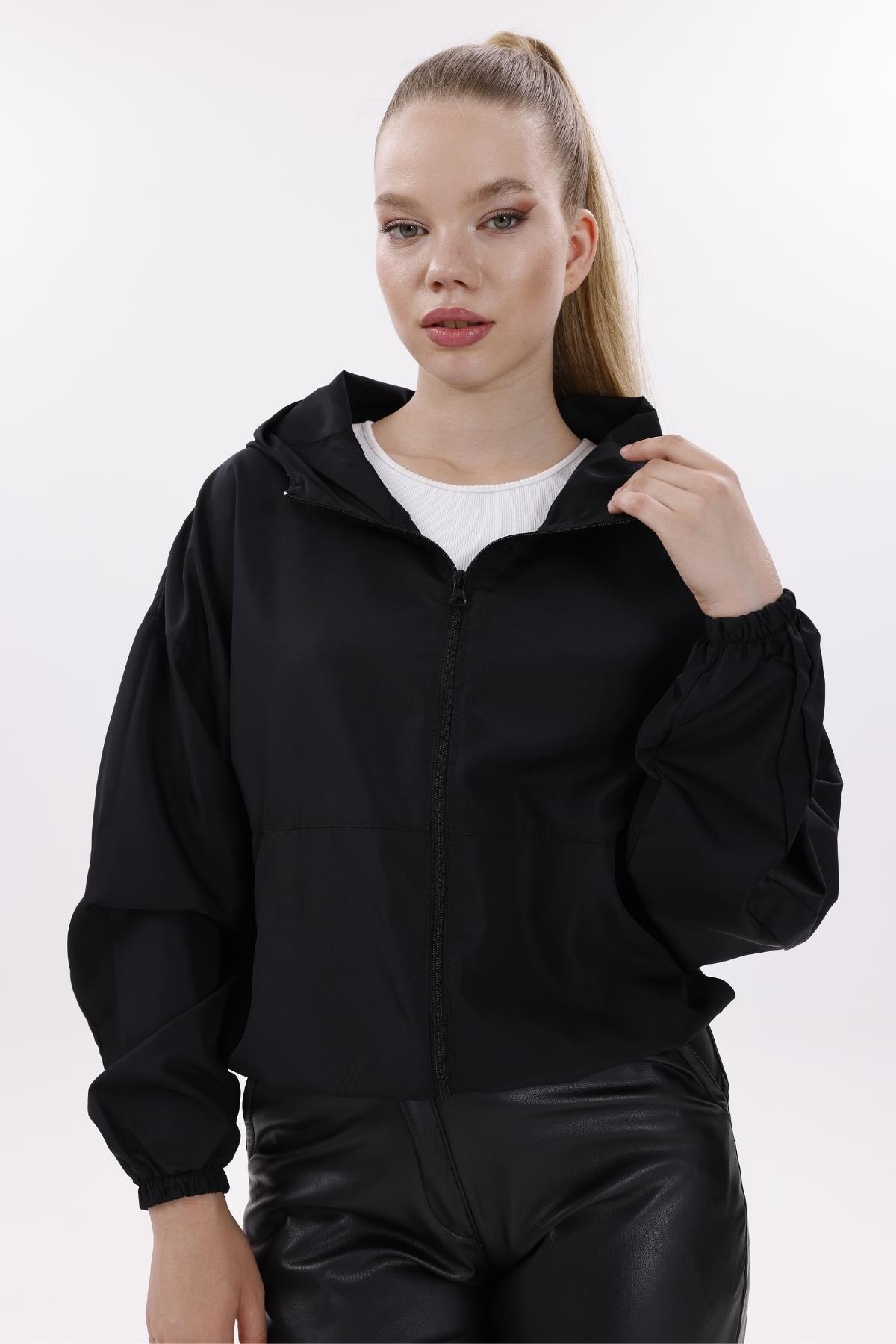 Kadın Kapüşonlu Su Ve Rüzgar Geçirmez Oversize Yağmurluk - Rüzgarlık (Y-20 Taş)