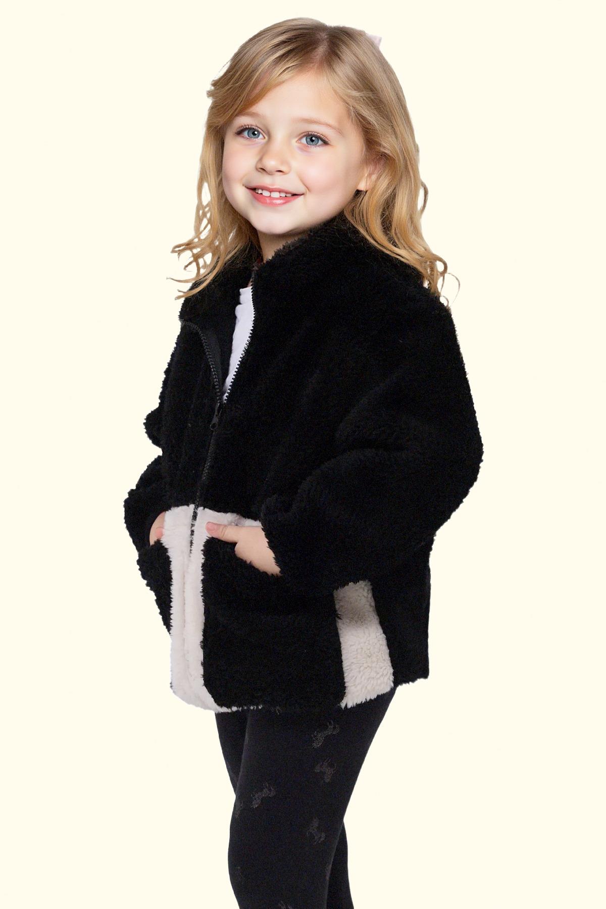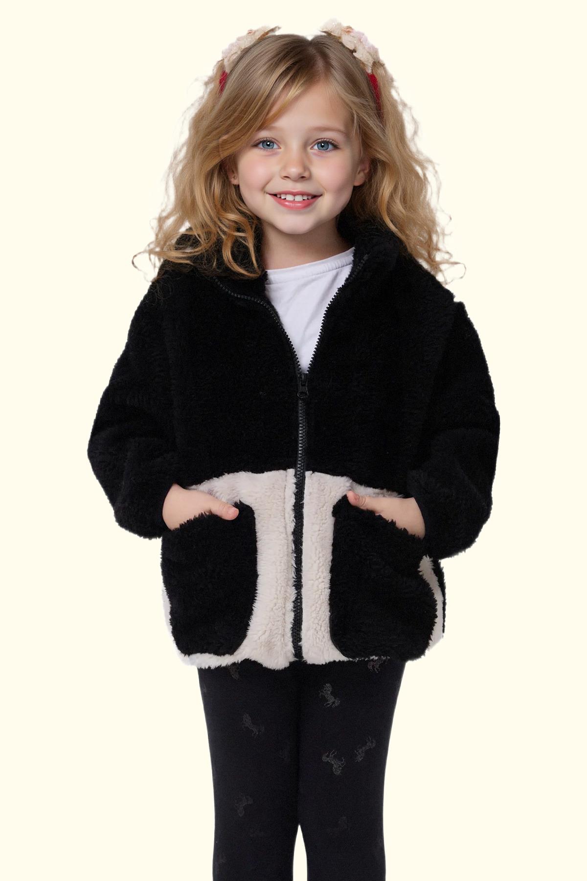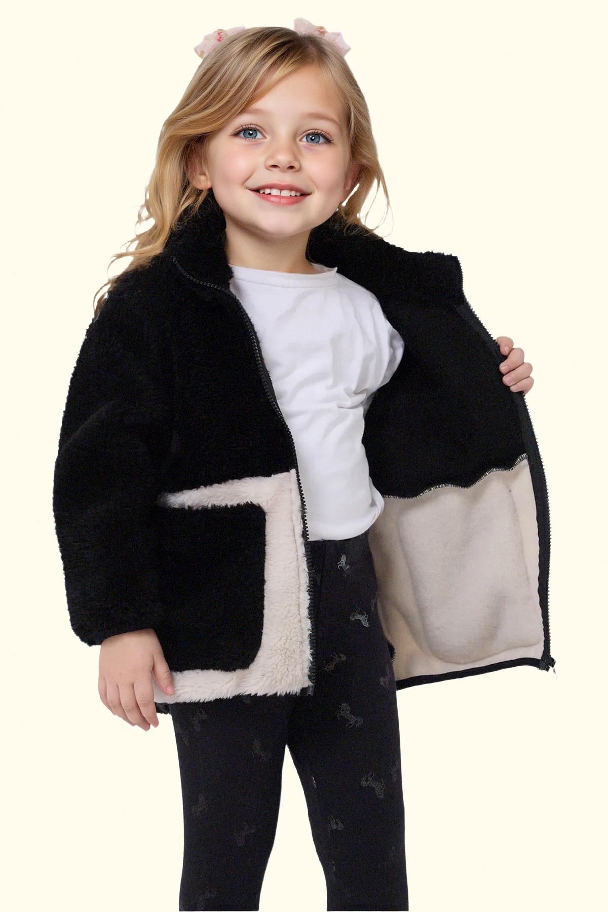 Kız Çocuk Peluş Fermuarlı Welsoft Kışlık Mont (FMÇ-K-PELUŞ Siyah)
