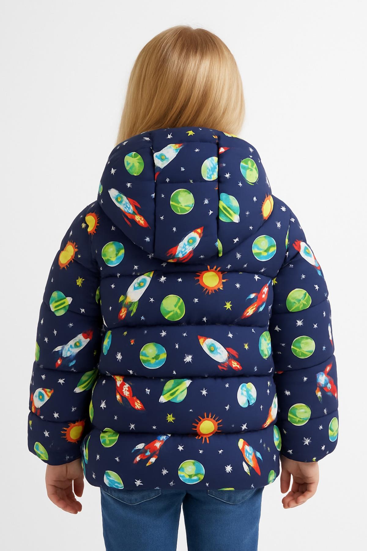 Kız Çocuk Polarlı Kapüşonlu Ufo Desenli Kışlık Şişme Mont & Kaban & Parka (DCM-115-K UFO)