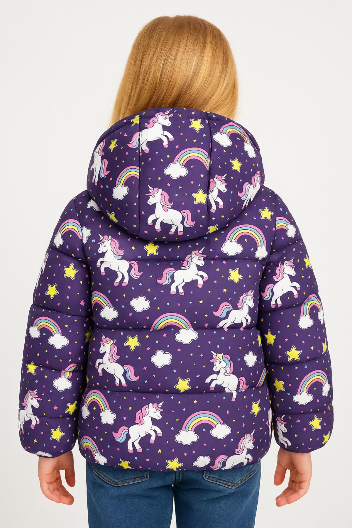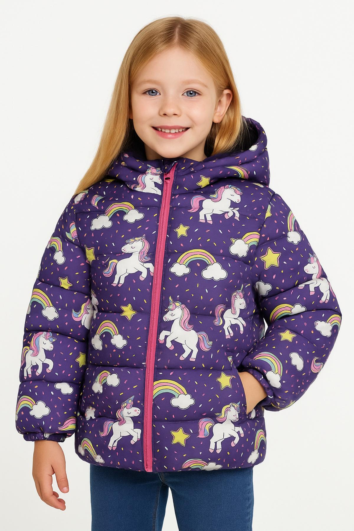 Kız Çocuk Polarlı Kapüşonlu Unıcorn Desenli Kışlık Şişme Mont & Kaban & Parka (DCM-113 Unıcorn)