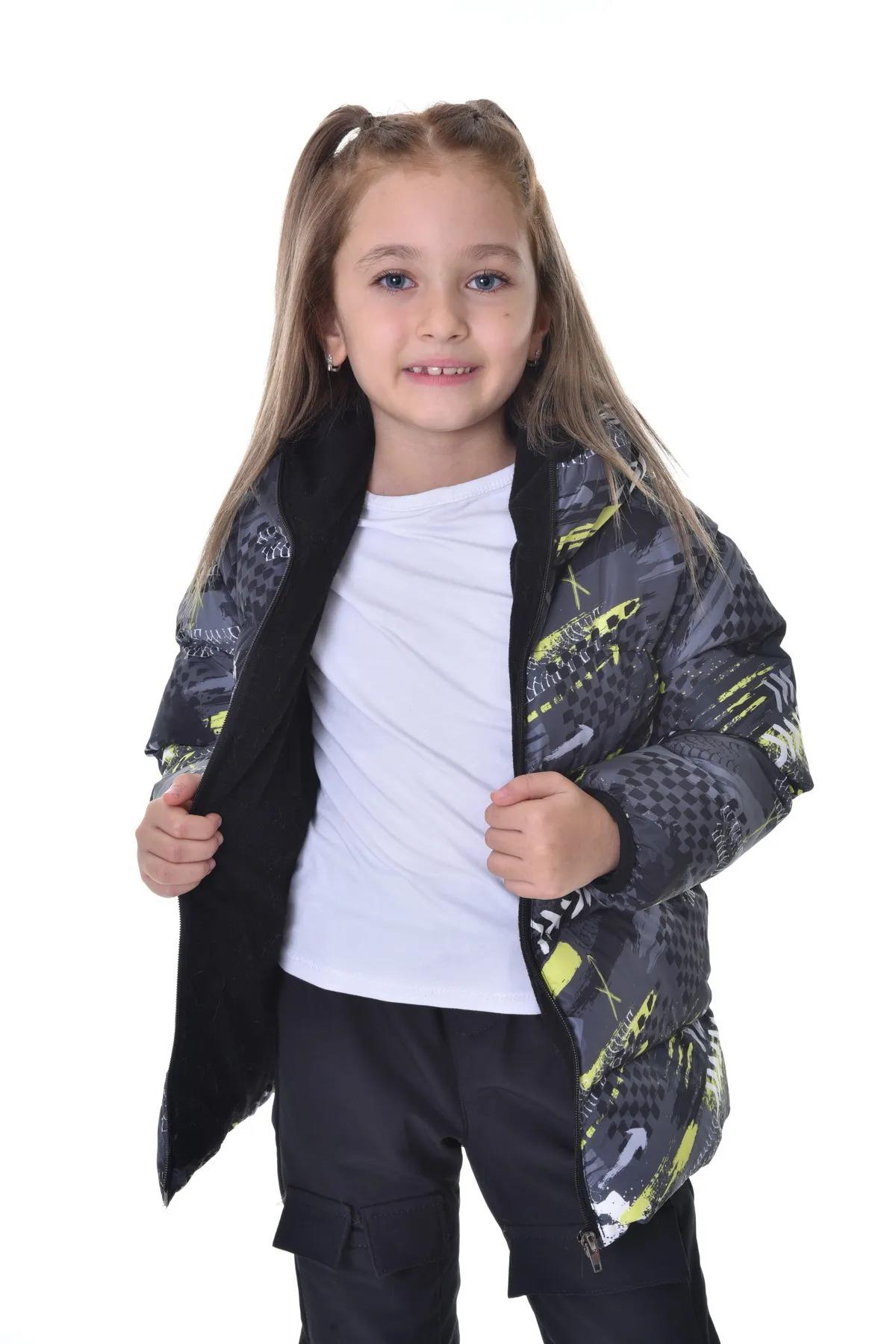 Kız Çocuk Dijital Desen Polar Su Ve Rüzgar Geçirmez Kapüşonlu Şişme Kışlık Mont (CD-5 K Sarı Siyah)