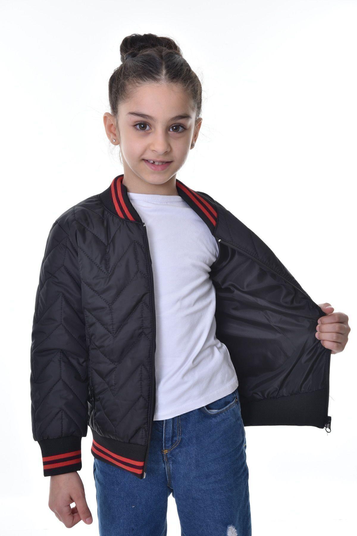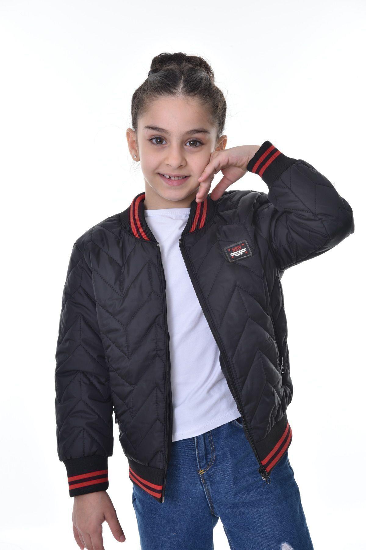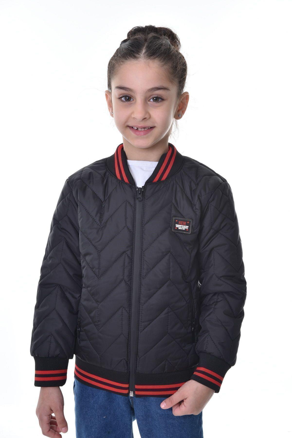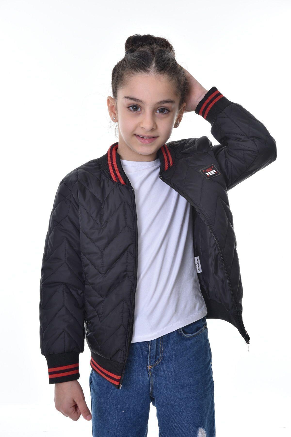 Kız Çocuk Kolej Yaka Astarlı Su Ve Rüzgar Geçirmez Fermuarlı Mont Ceket (KLJ-1-K Siyah)