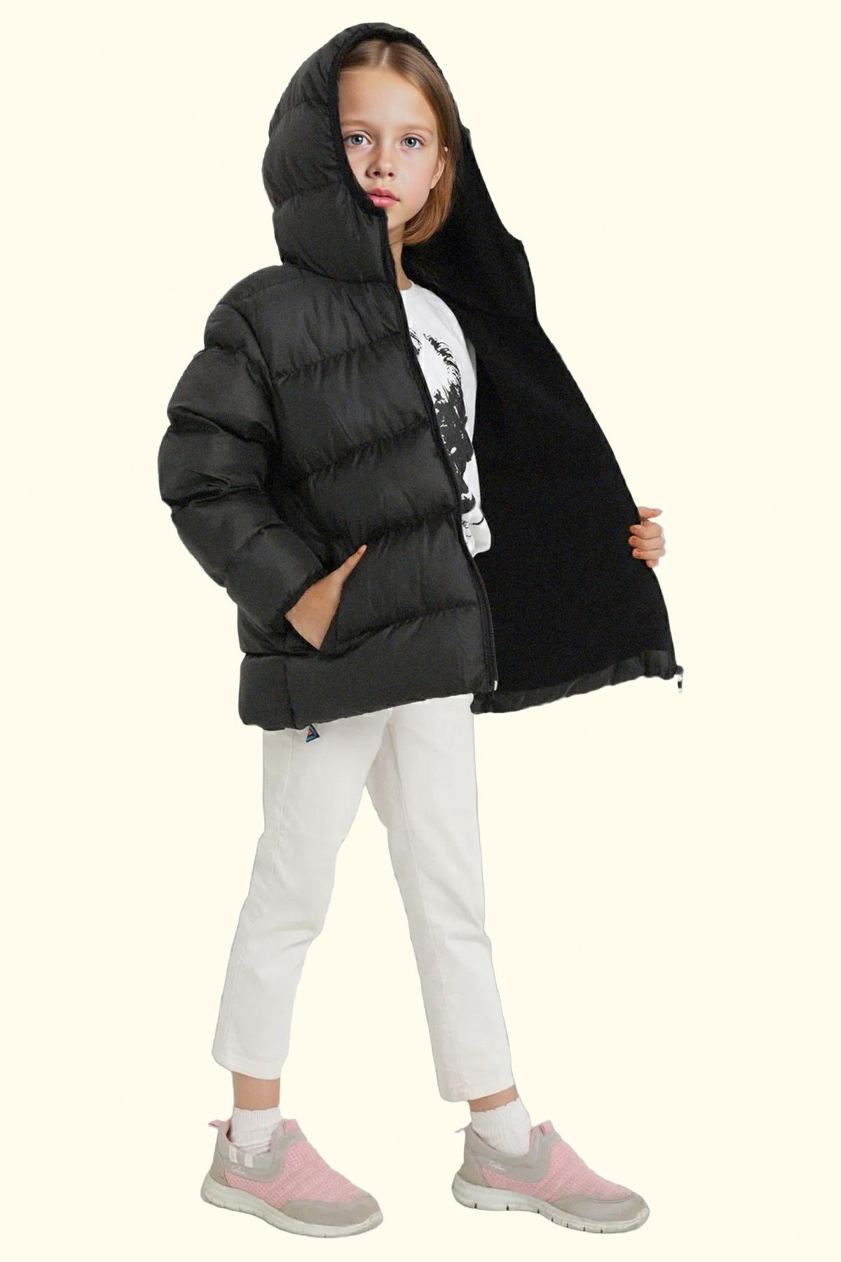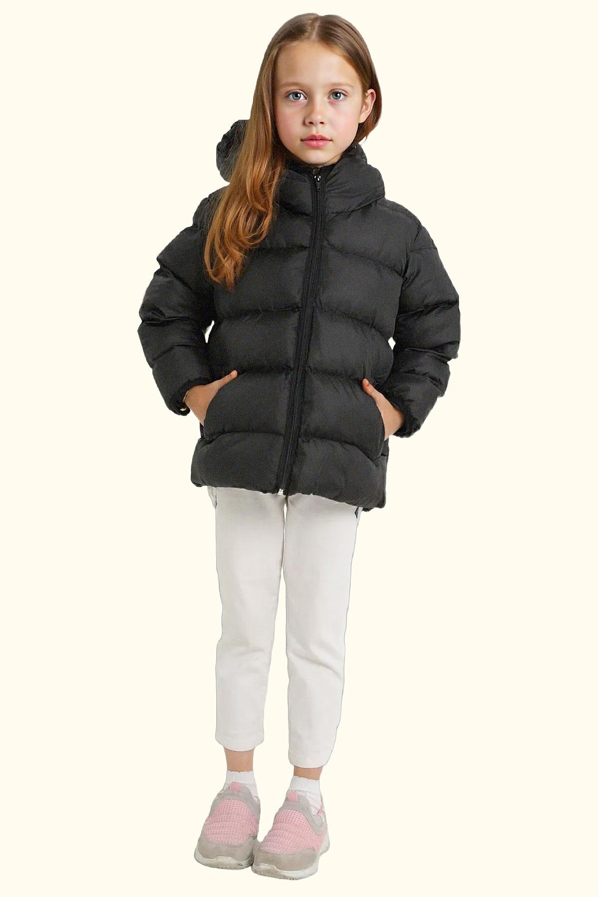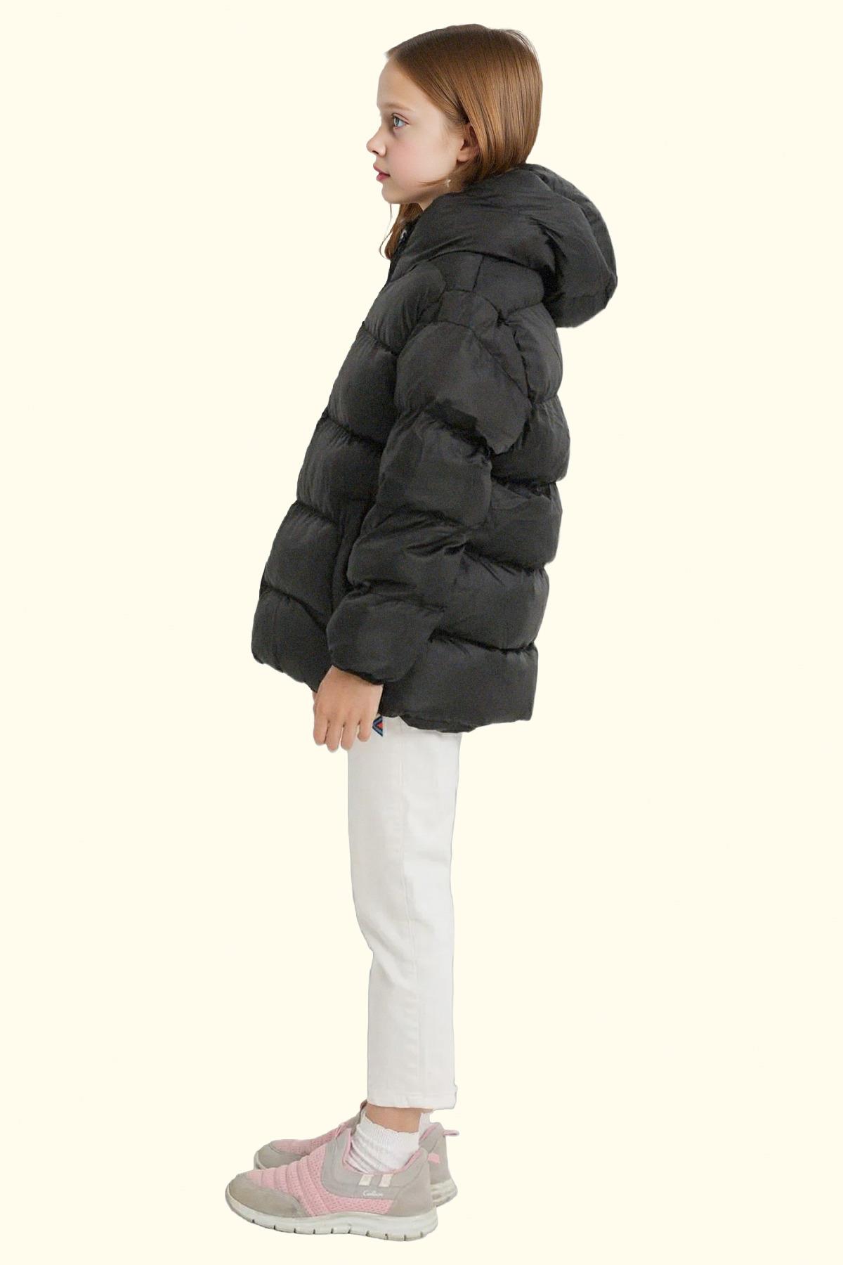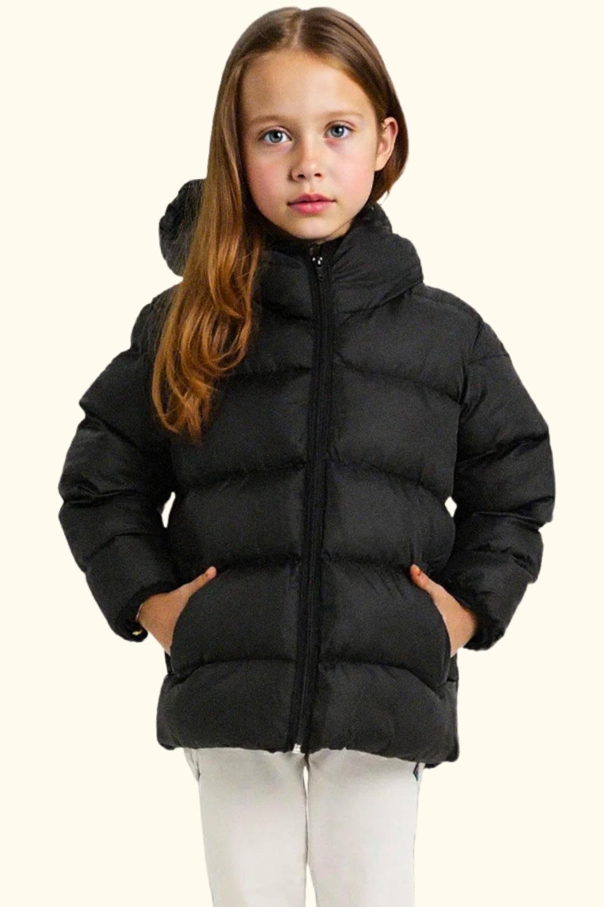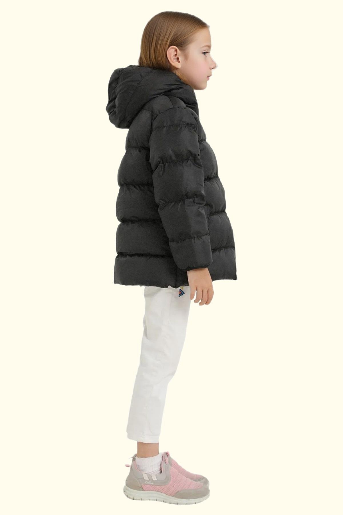 Kız Çocuk Polarlı Kürklü Kapüşonlu Su Geçirmez Rüzgara Dayanıklı Şişme Kışlık Mont (FS-4 Siyah)