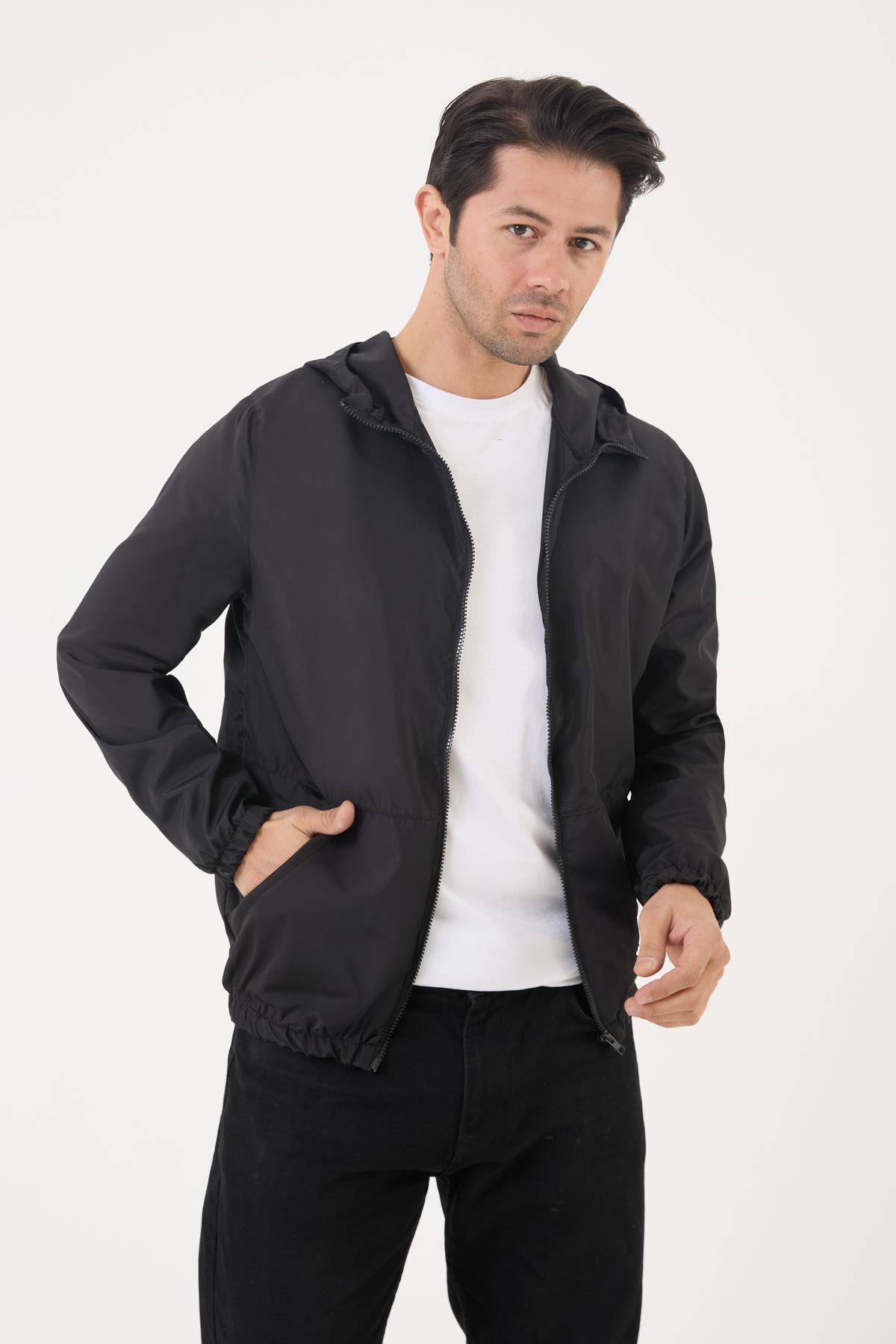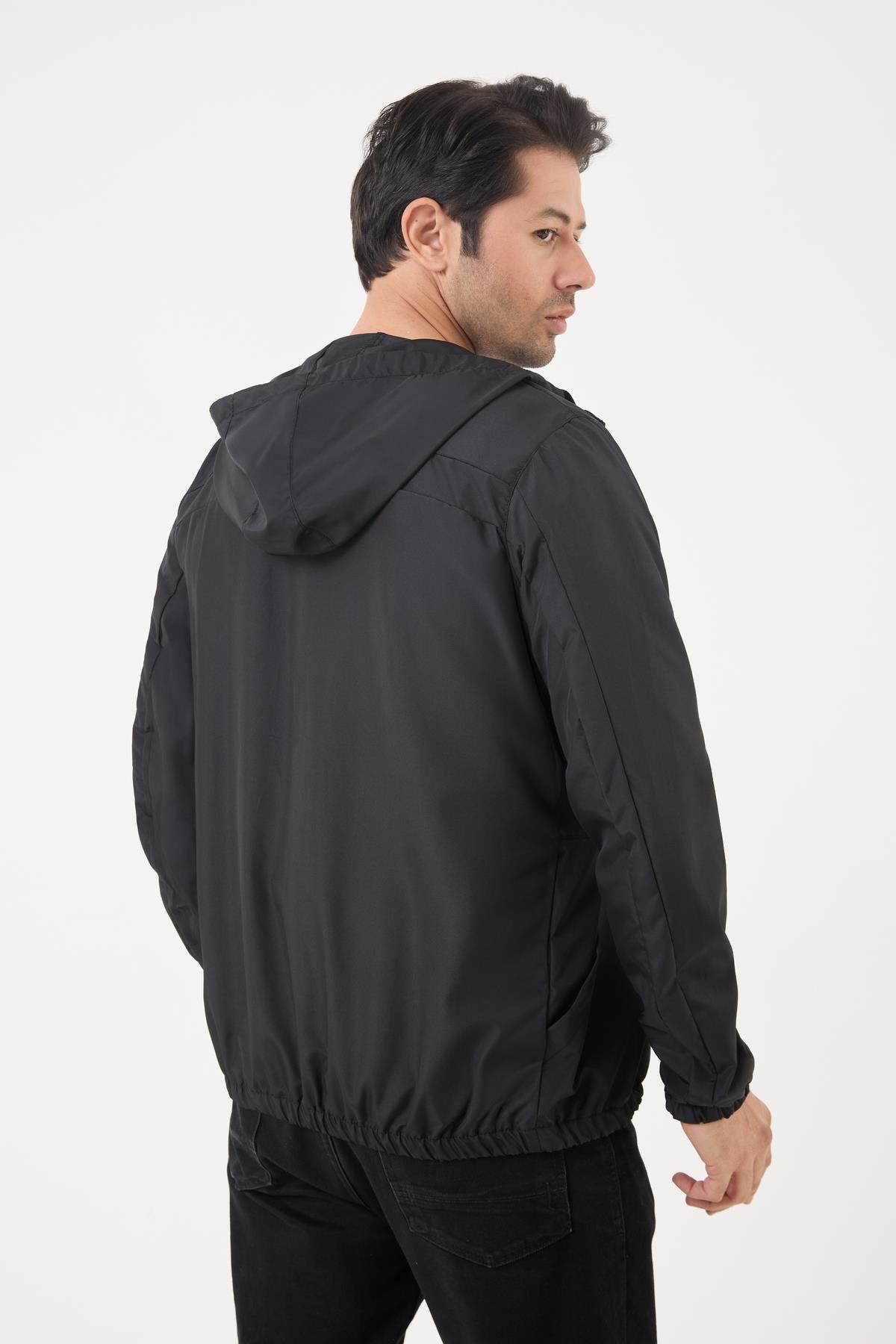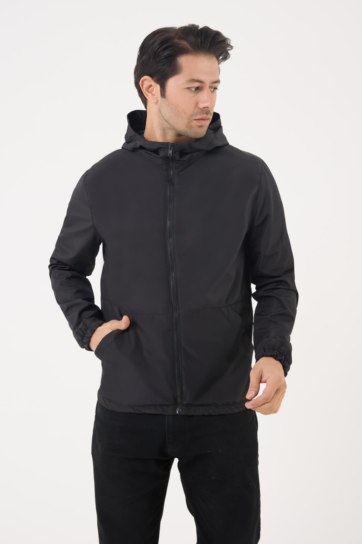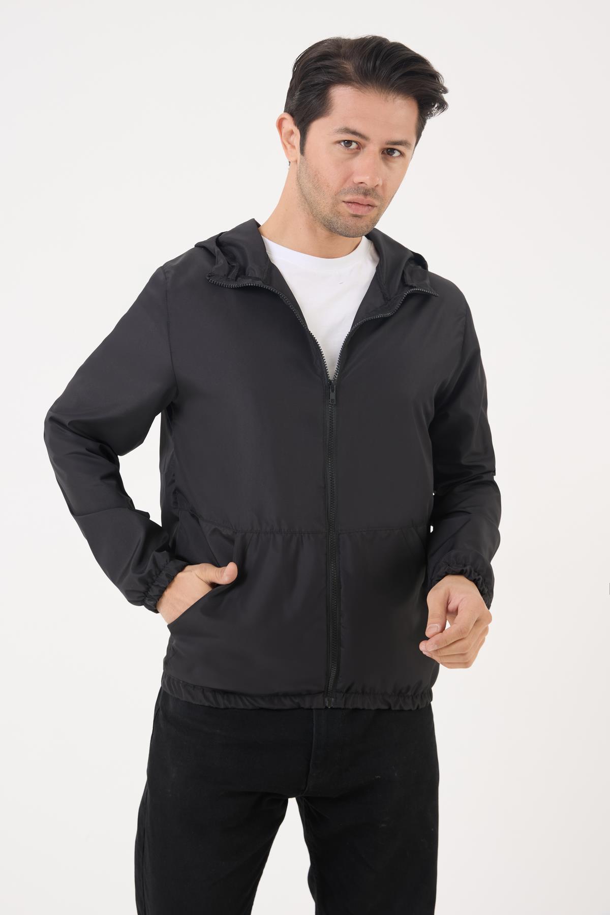 Spor Erkek Kapüşonlu Su ve Rüzgar Geçirmez Cepli İçi Astarlı Oversize Yağmurluk (S-Y-35 Siyah)