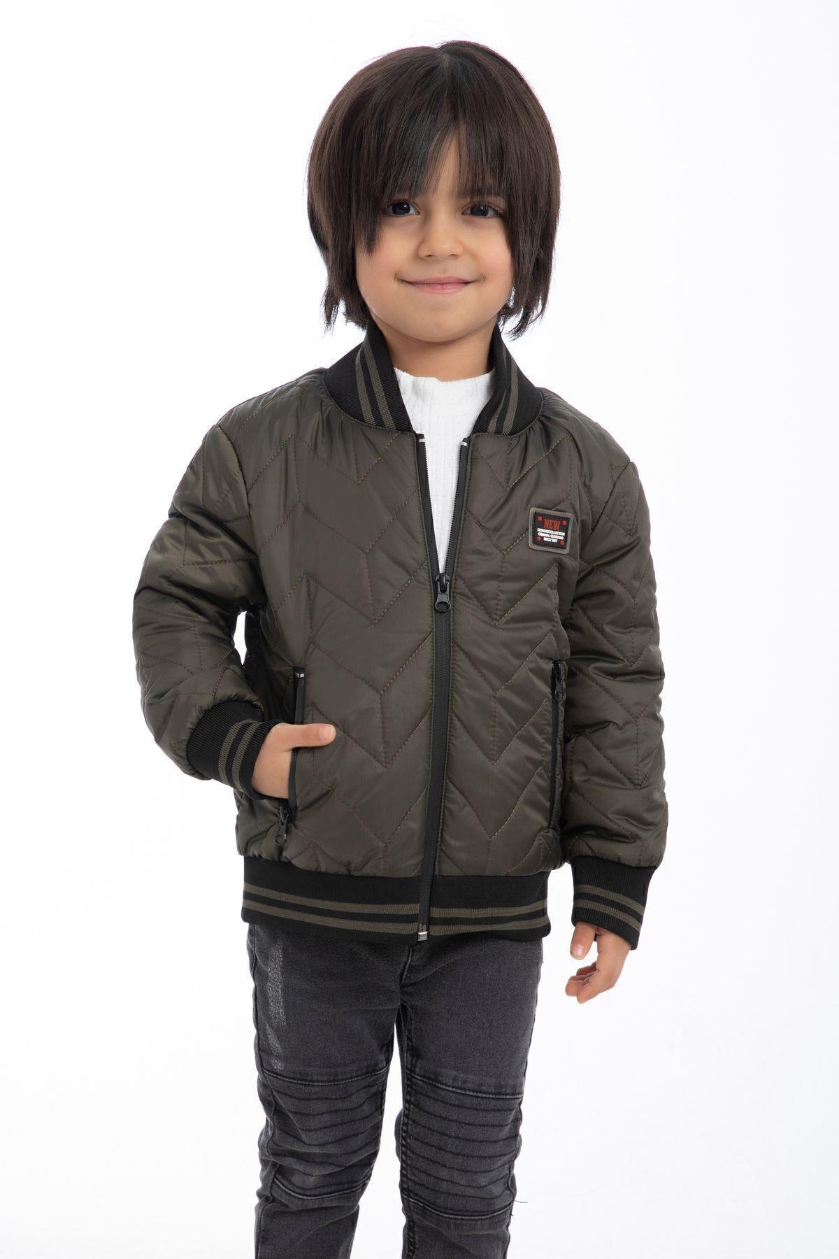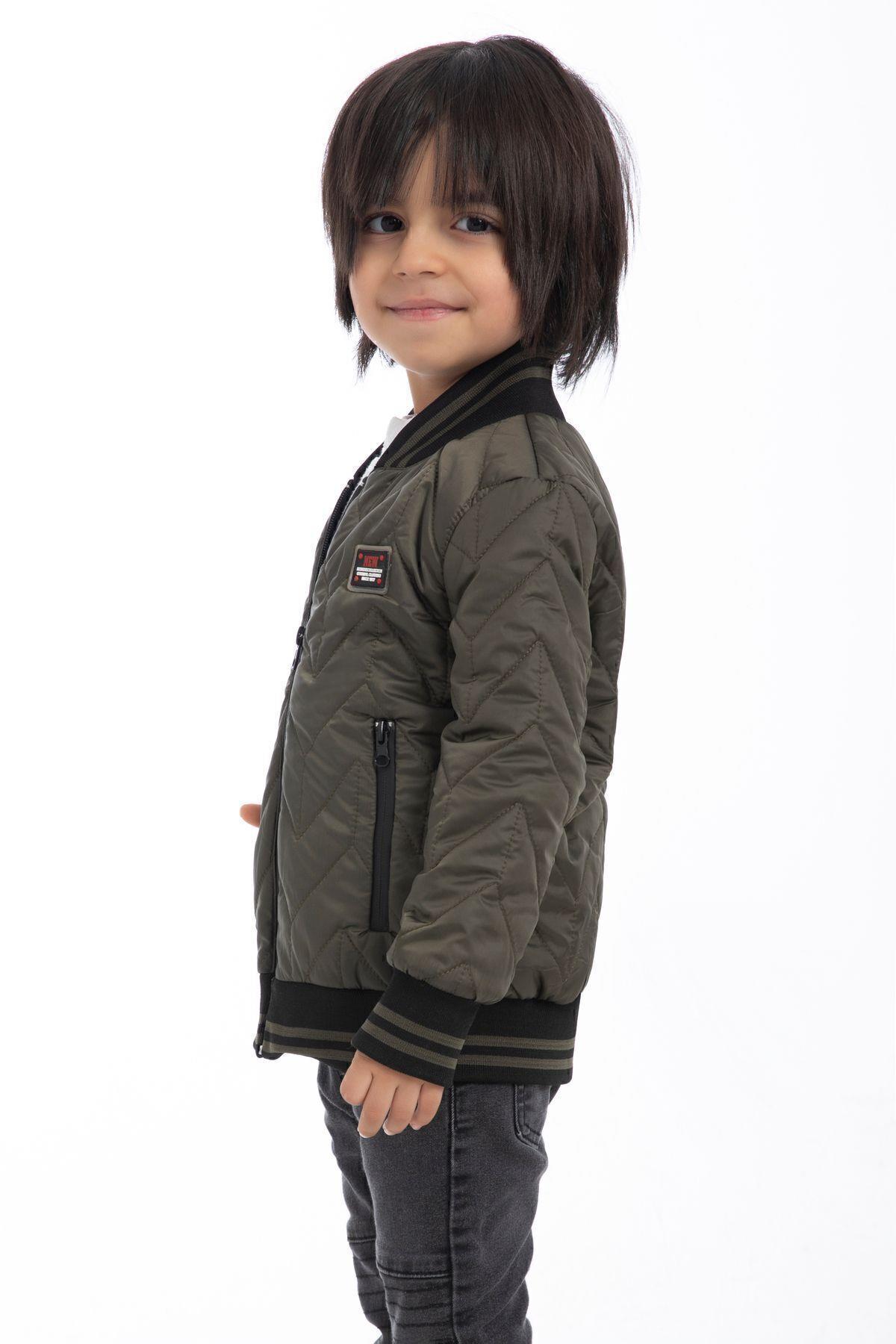Spor Erkek Çocuk Kolej Yaka Astarlı Su ve Rüzgar Geçirmez Fermuarlı Cep Mont Ceket (S-KLJ-1 Haki)