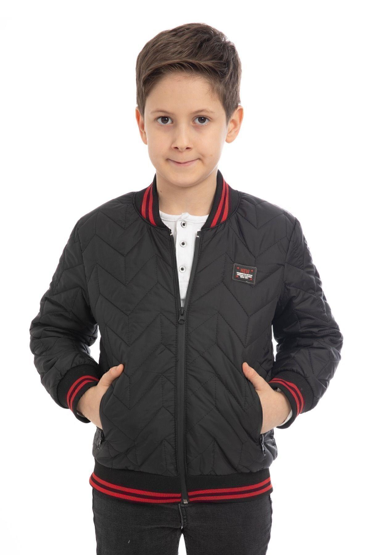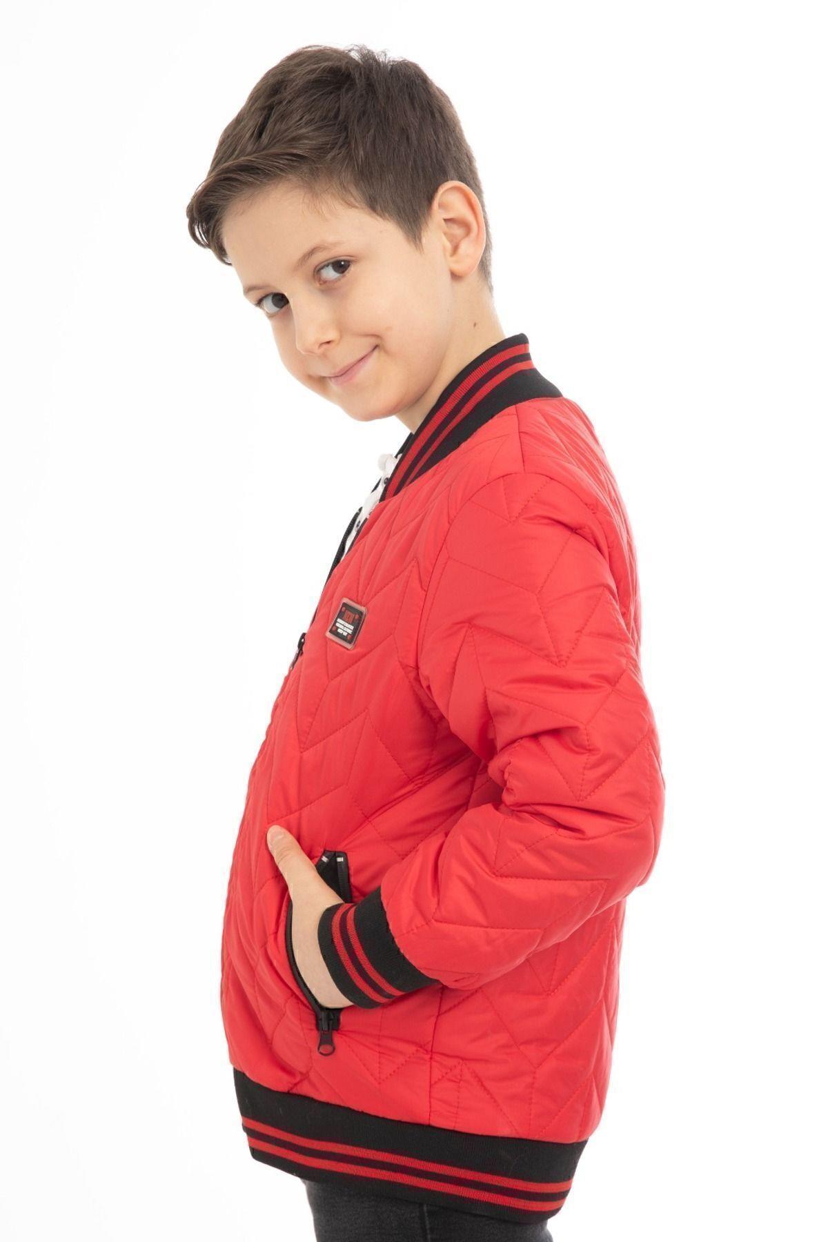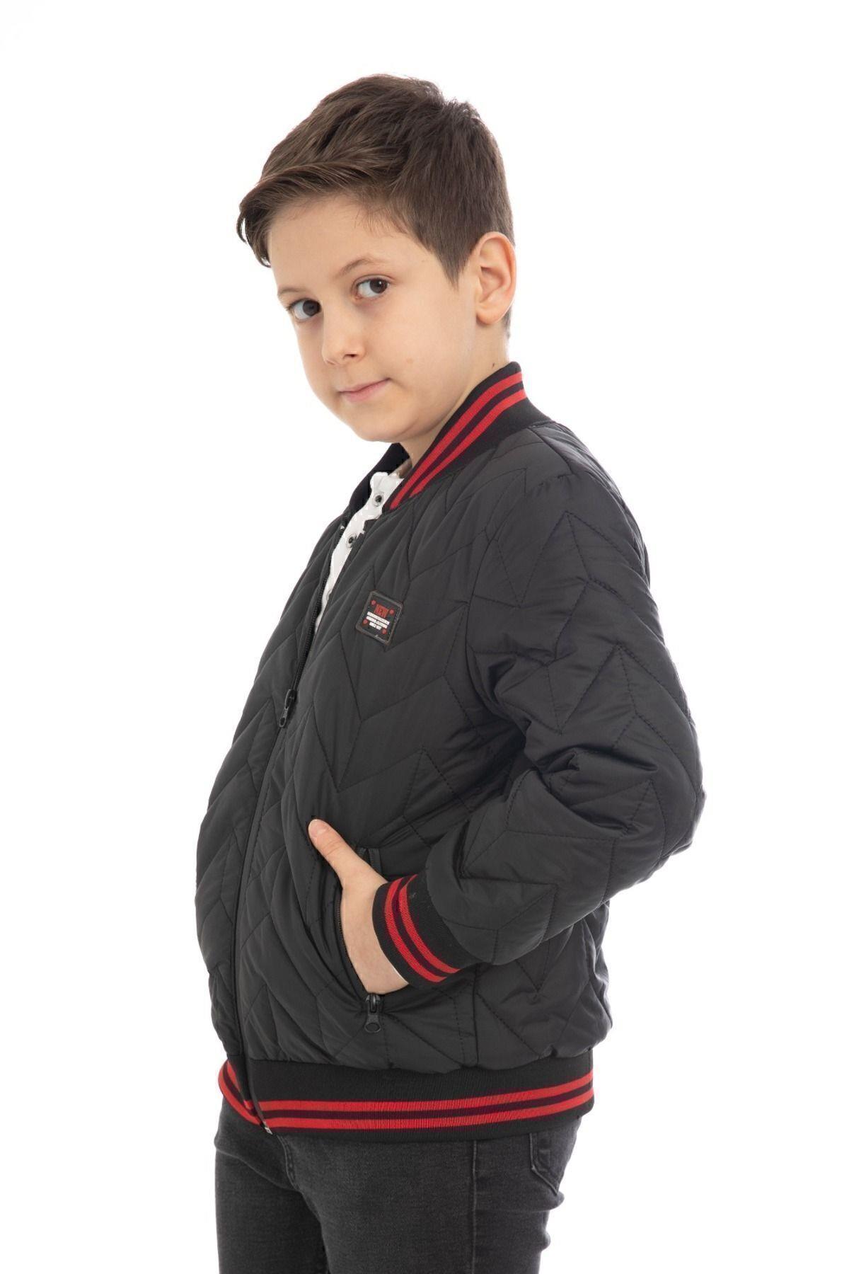 Spor Erkek Çocuk Kolej Yaka Astarlı Su ve Rüzgar Geçirmez Fermuarlı Cep Mont Ceket (S-KLJ-7-12)