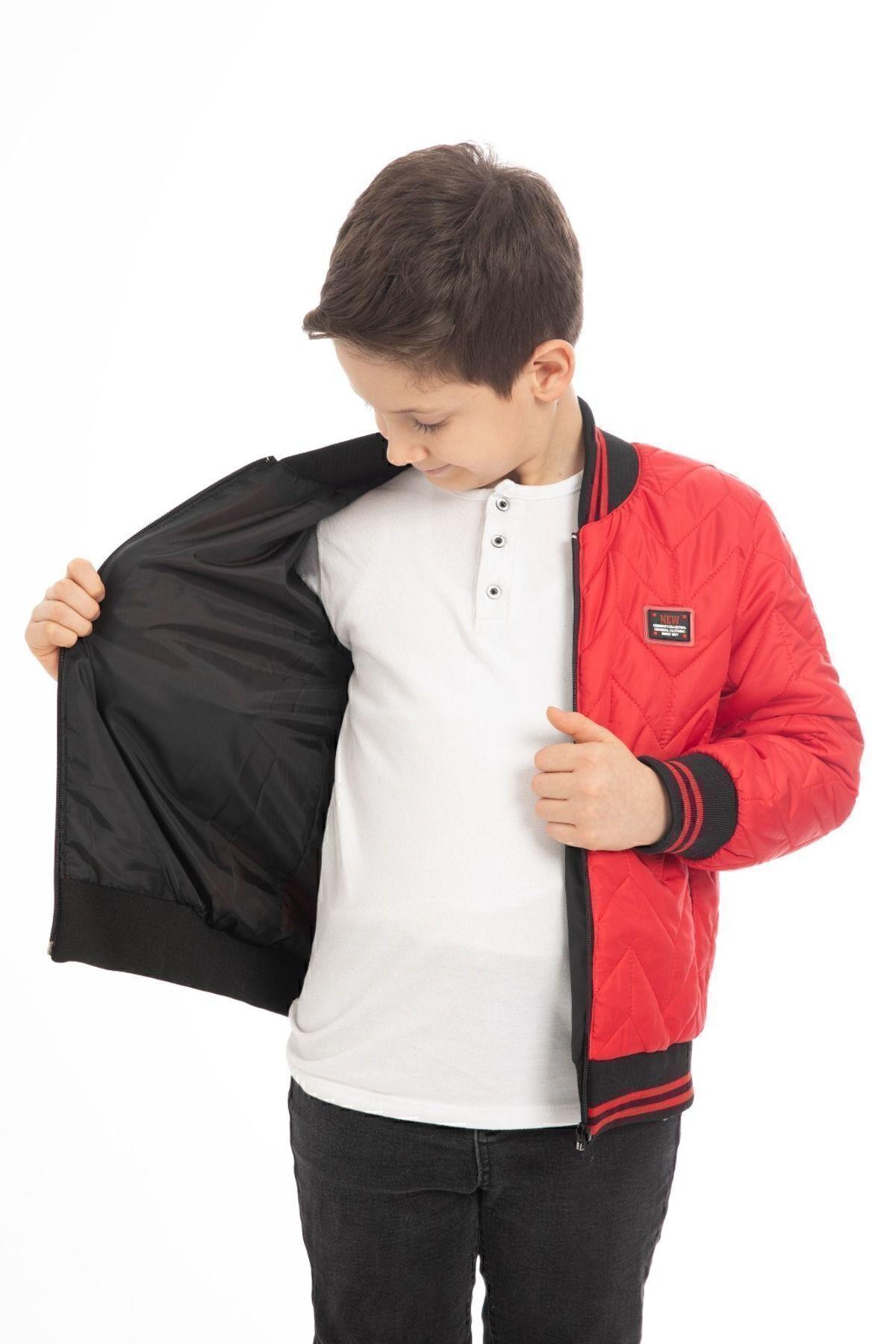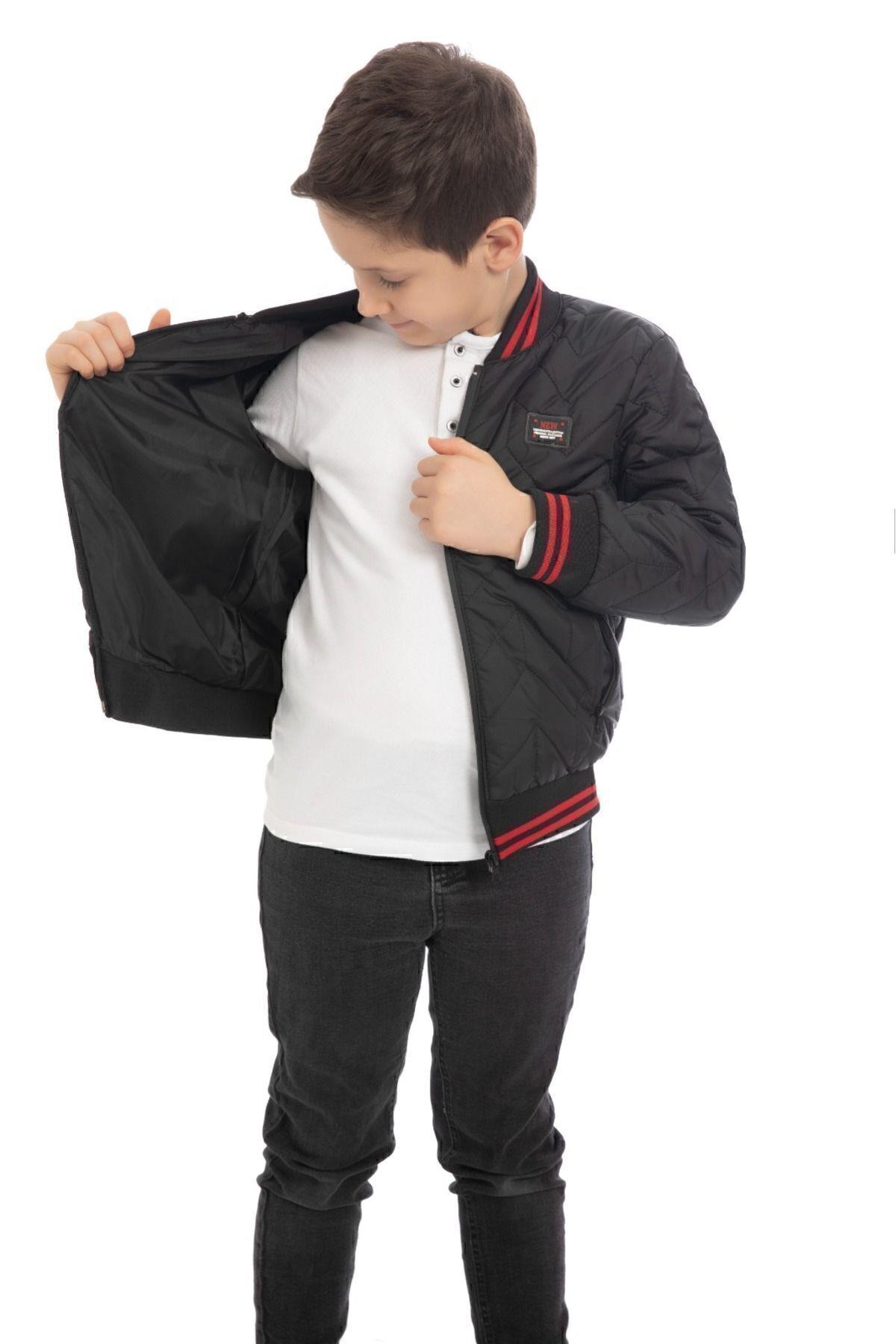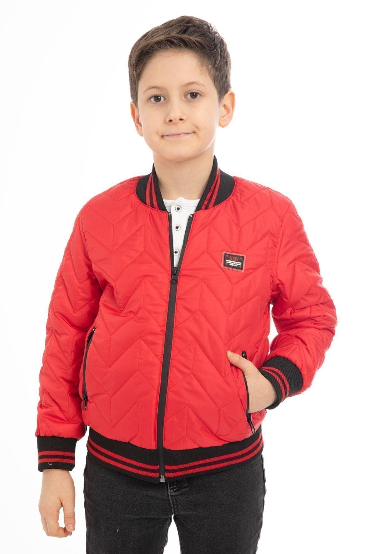 Spor Erkek Çocuk Kolej Yaka Astarlı Su ve Rüzgar Geçirmez Fermuarlı Cep Mont Ceket (S-KLJ-7-12)