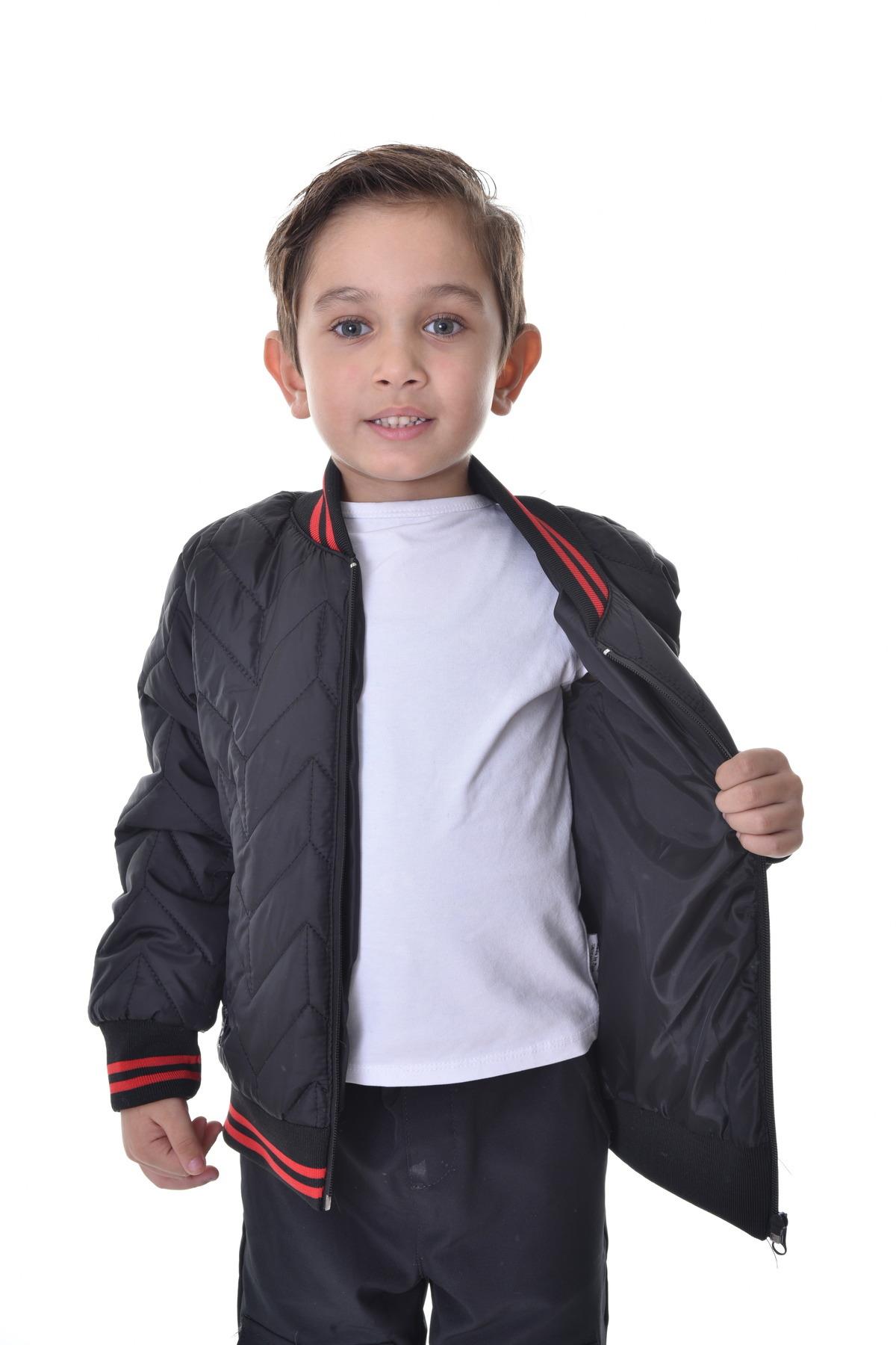 Spor Erkek Çocuk Kolej Yaka Astarlı Su ve Rüzgar Geçirmez Fermuarlı Cep Mont Ceket (S-KLJ-1 Siyah)