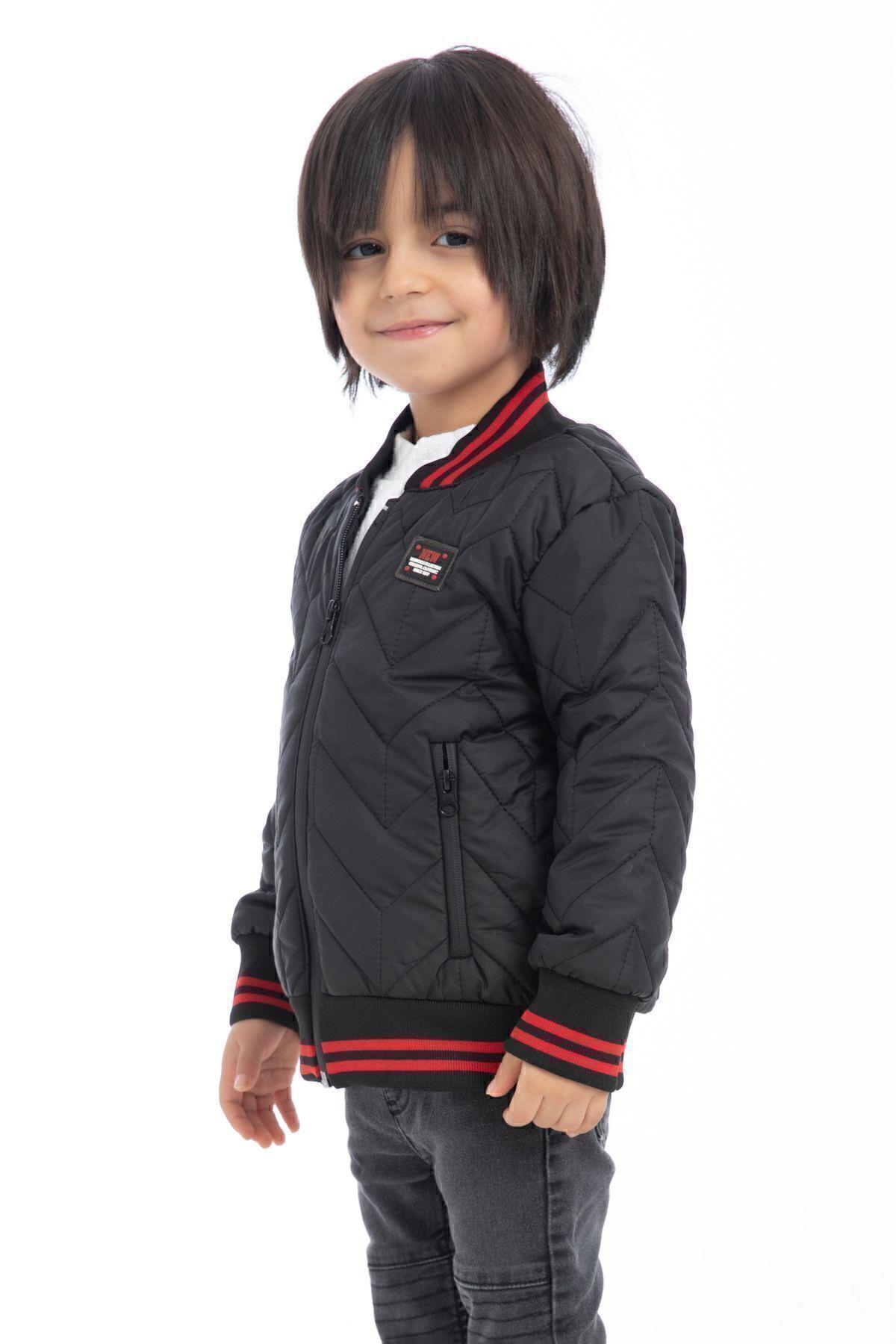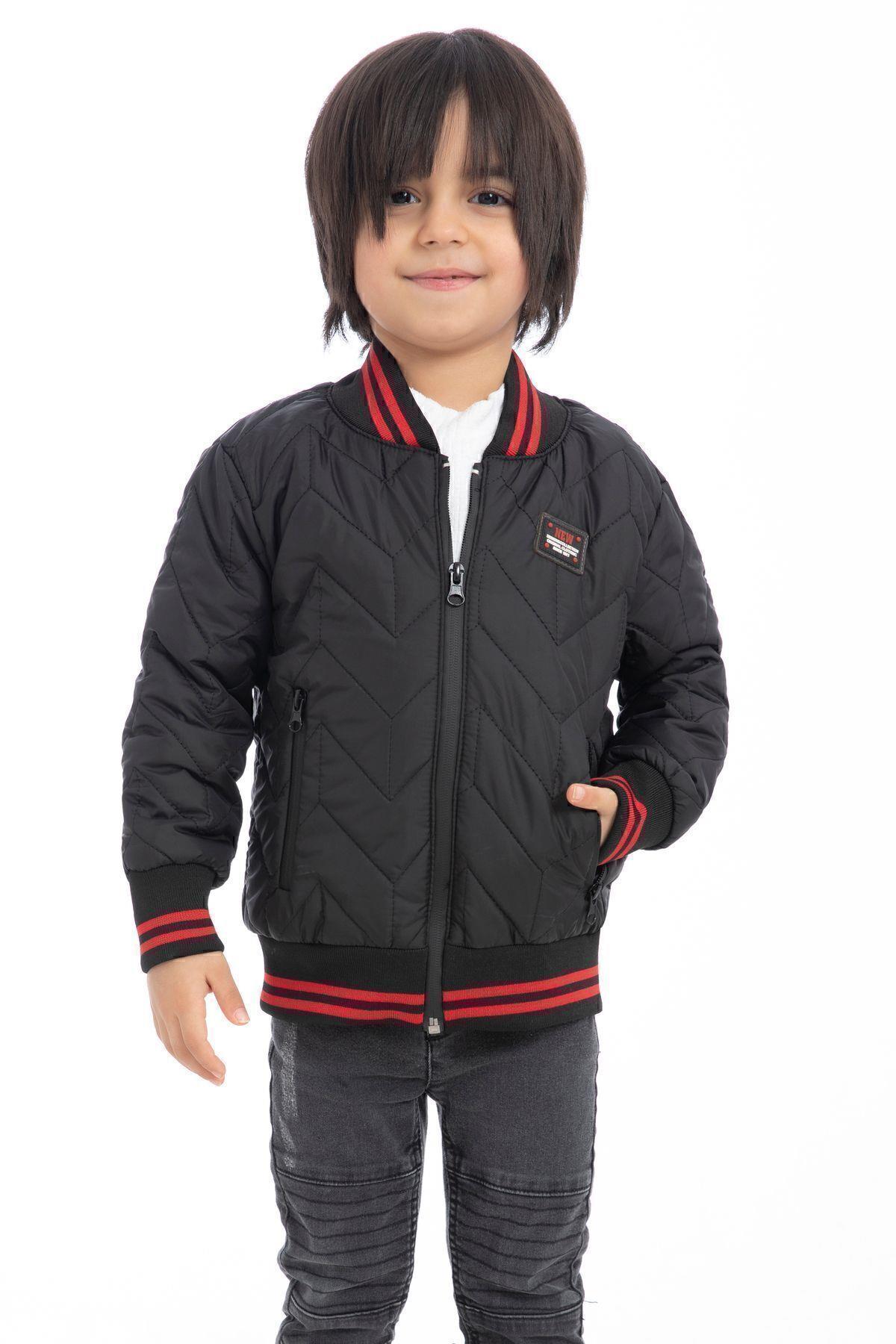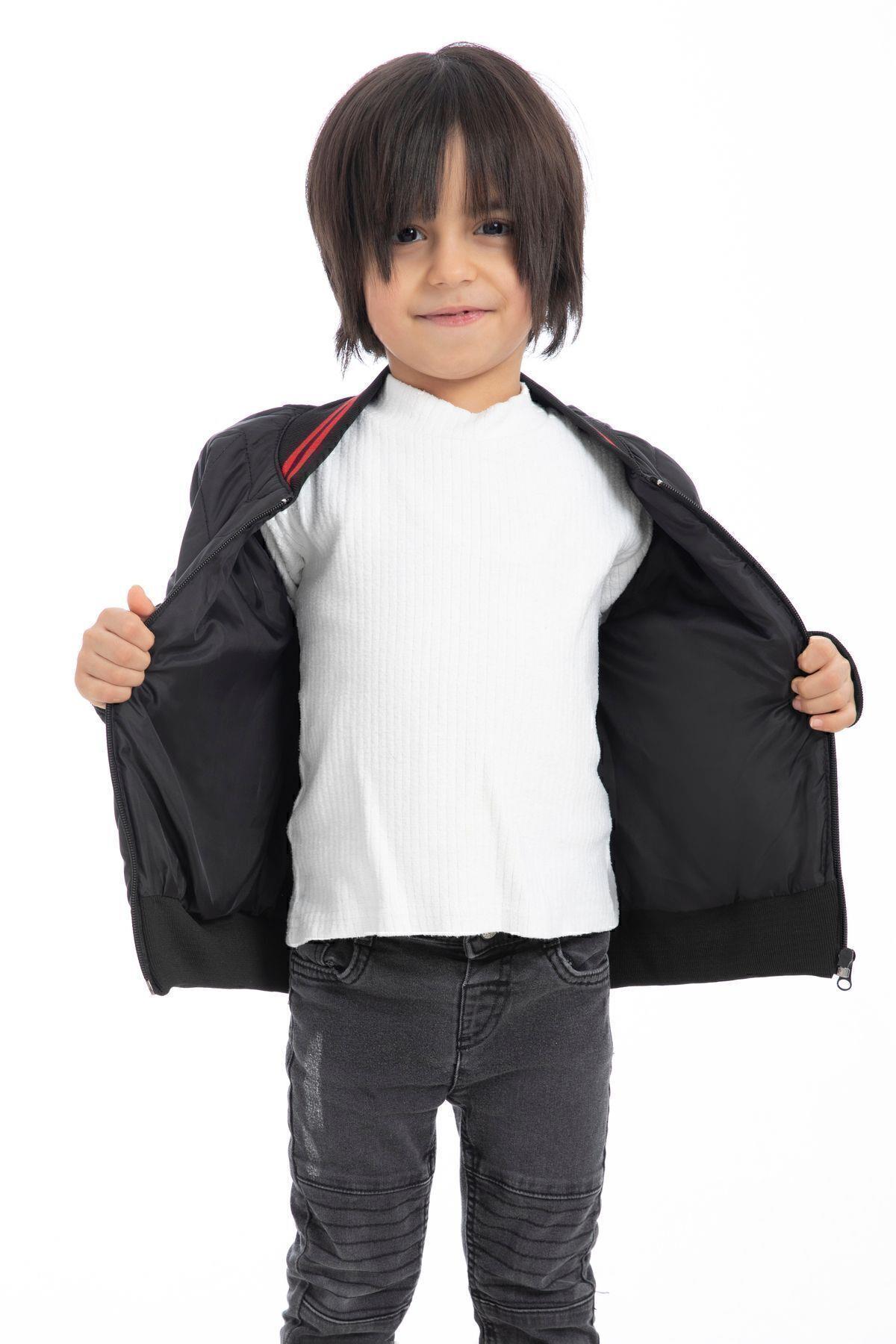 Spor Erkek Çocuk Kolej Yaka Astarlı Su Ve Rüzgar Geçirmez Fermuarlı Cep Mont Ceket (S-KLJ-1 Siyah)