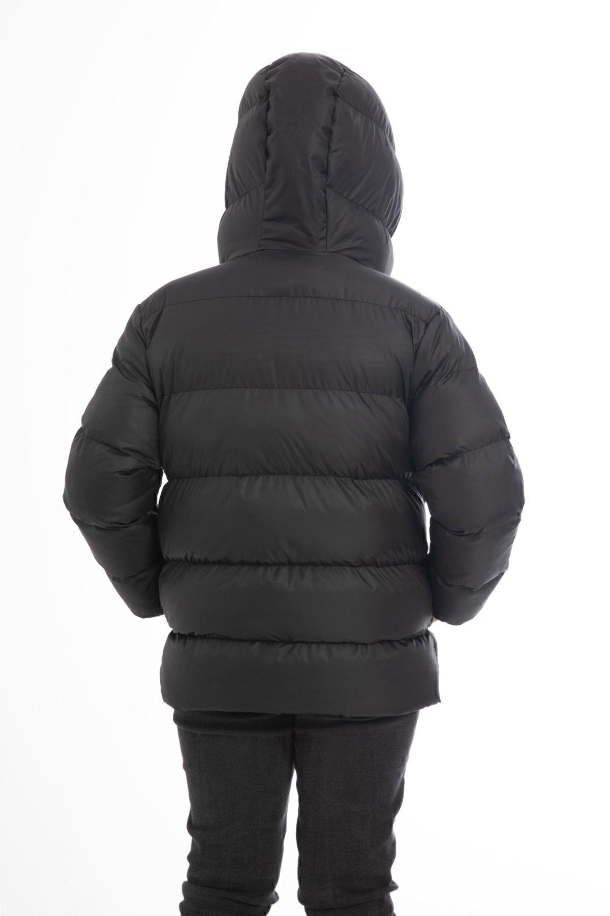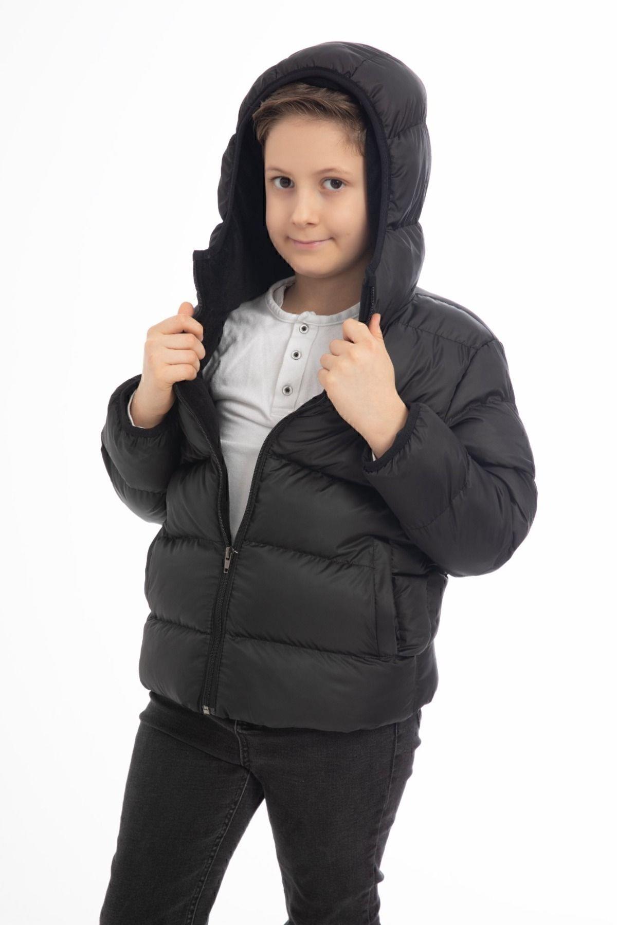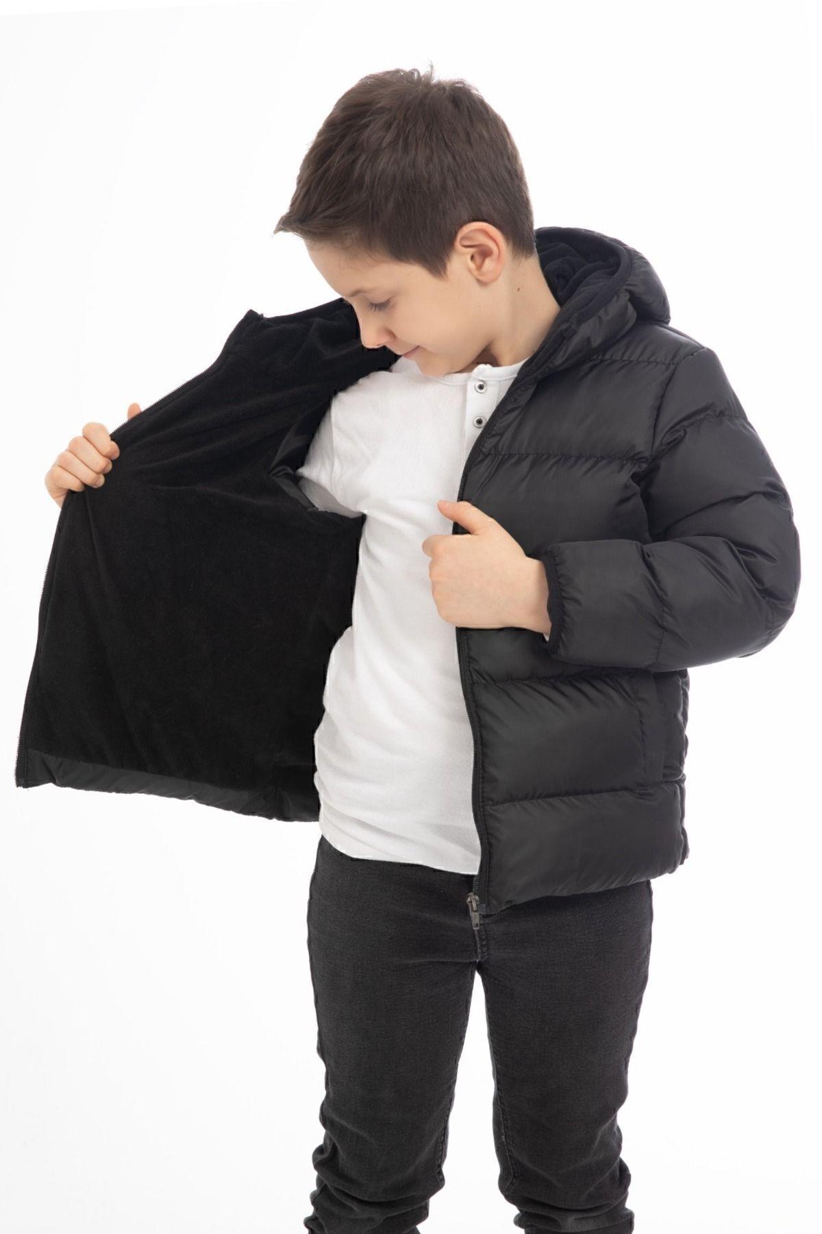 Spor Erkek Çocuk Polarlı Kapüşonlu Su Geçirmez Rüzgara Dayanıklı Cepli Mont (S-S-4 Siyah)
