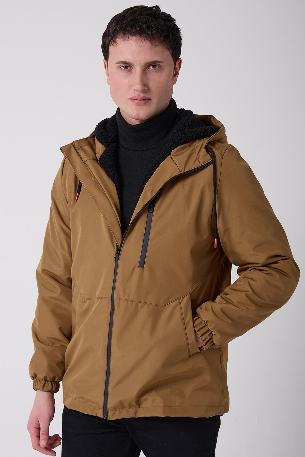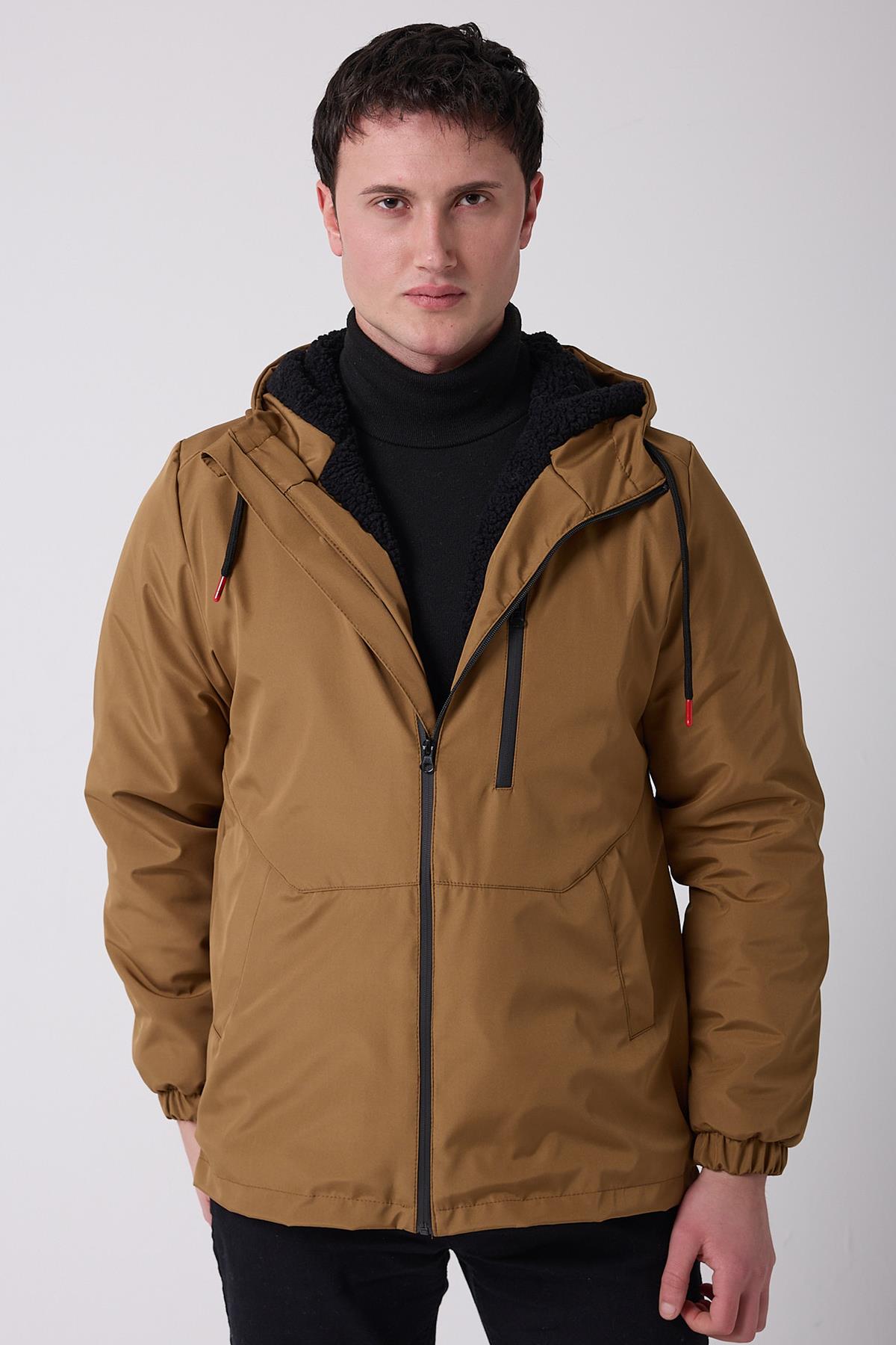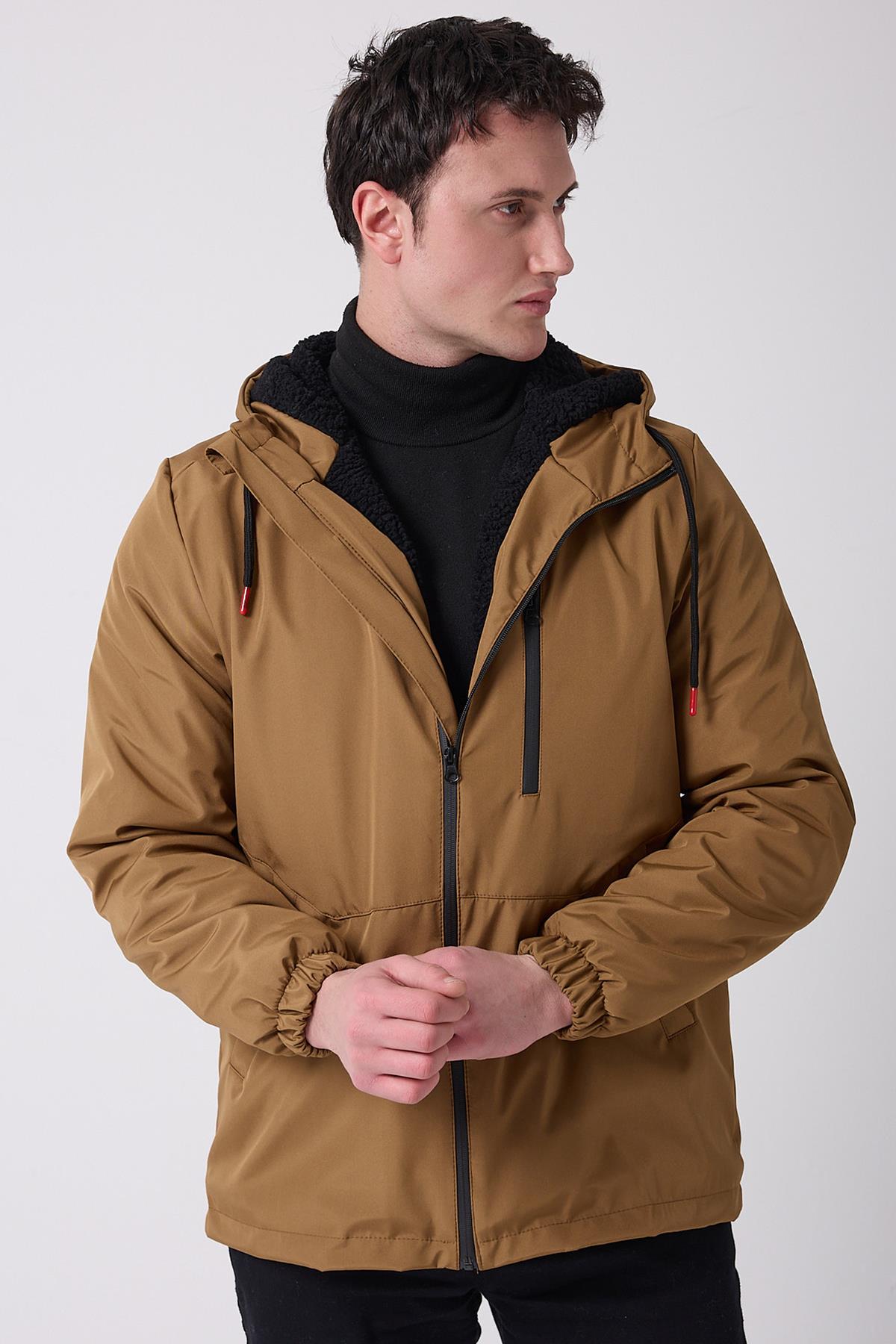 Spor Erkek Kürklü Su Ve Rüzgar Geçirmez Kapüşonlu Mont & Kaban & Parka (S-FMM-100 Taba)