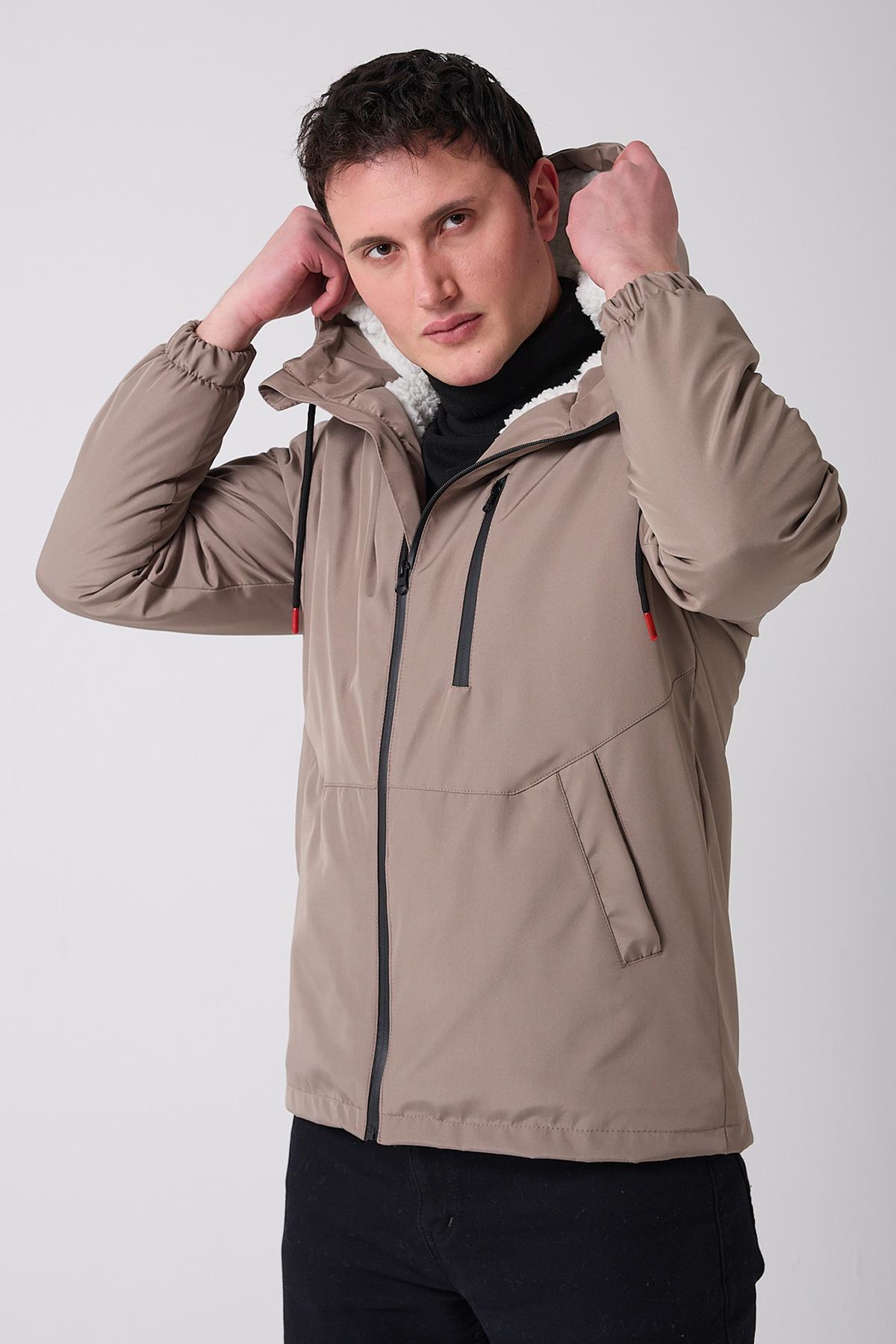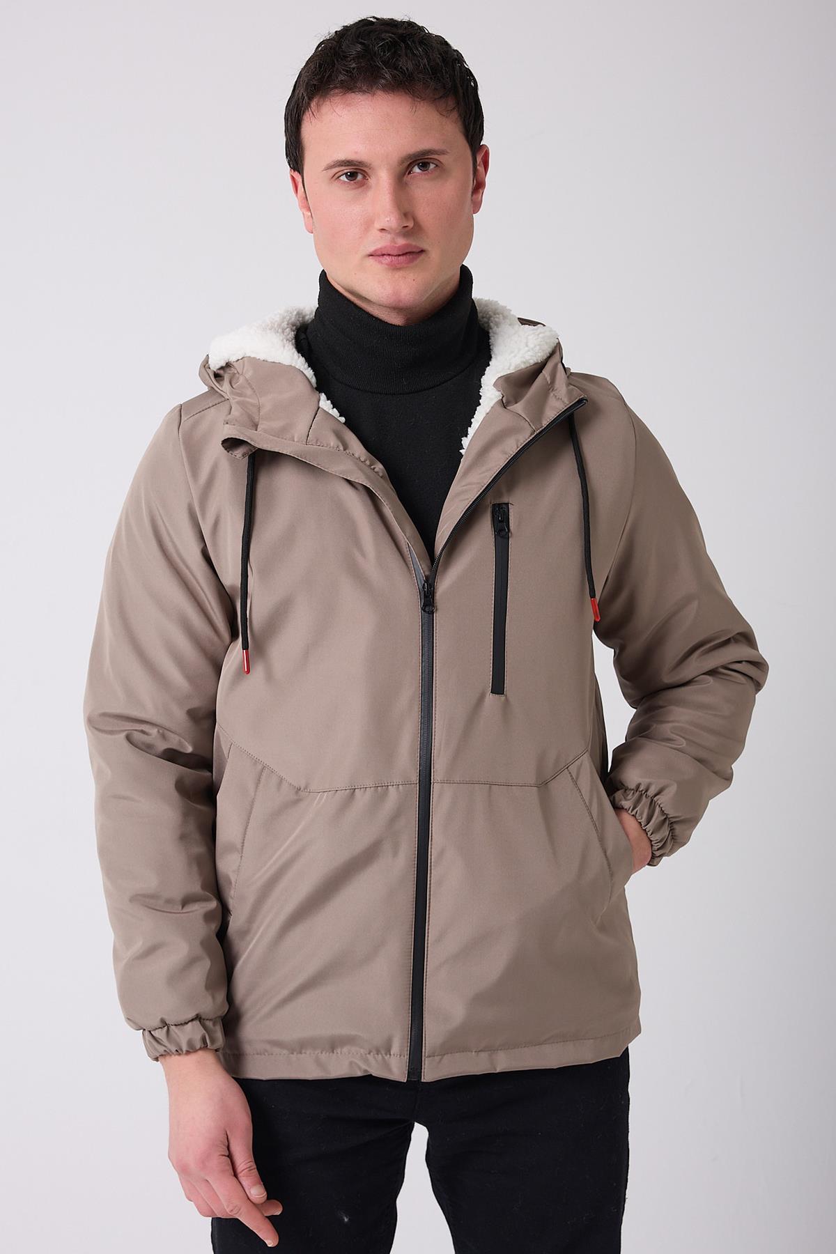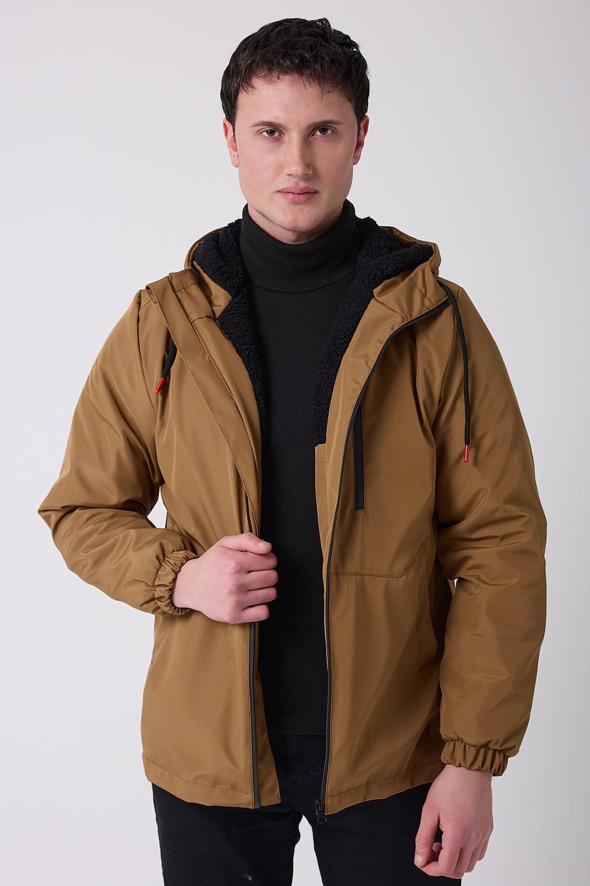Spor Erkek Kürklü Su Ve Rüzgar Geçirmez Kapüşonlu Mont & Kaban & Parka (S-FMM-100 Taba)