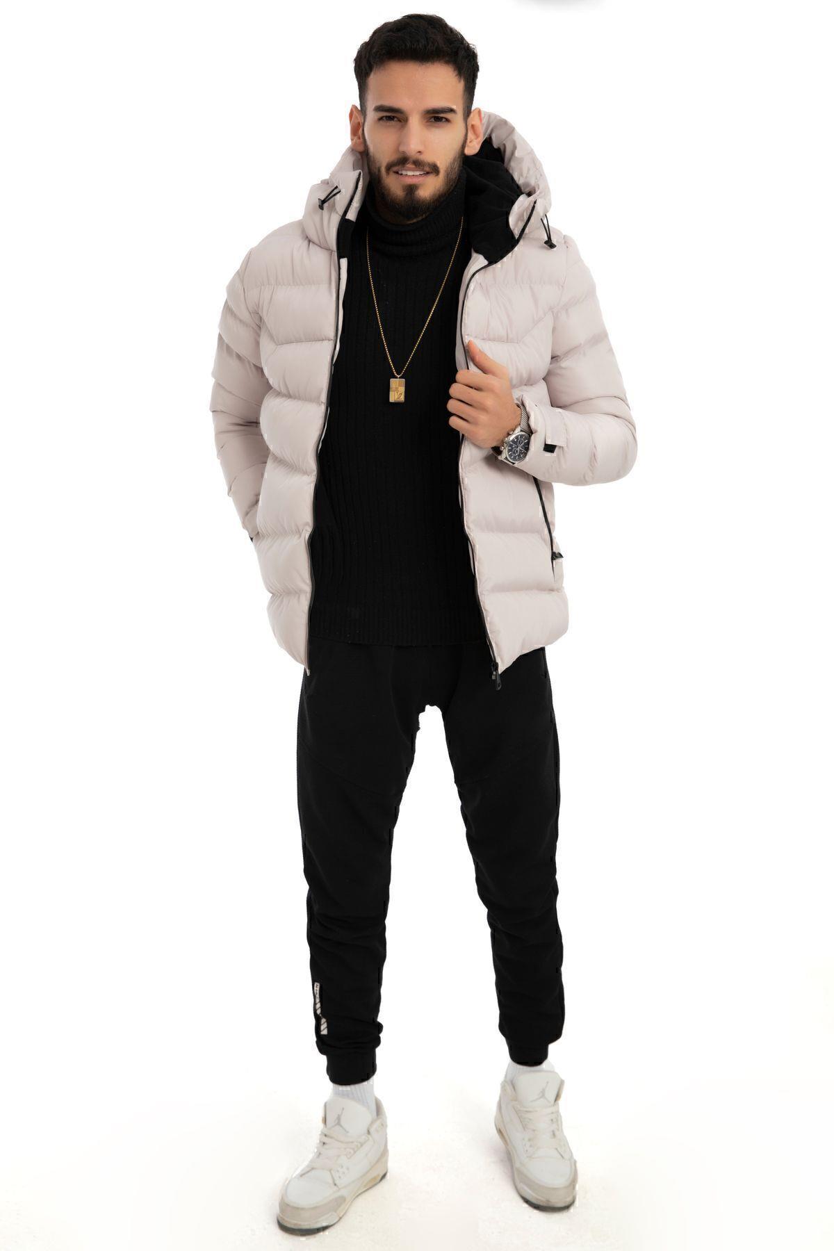 Spor Erkek Polarlı Kapüşonlu Su Geçirmez Rüzgara Dayanıklı Mont (S-FM-500 Taş)